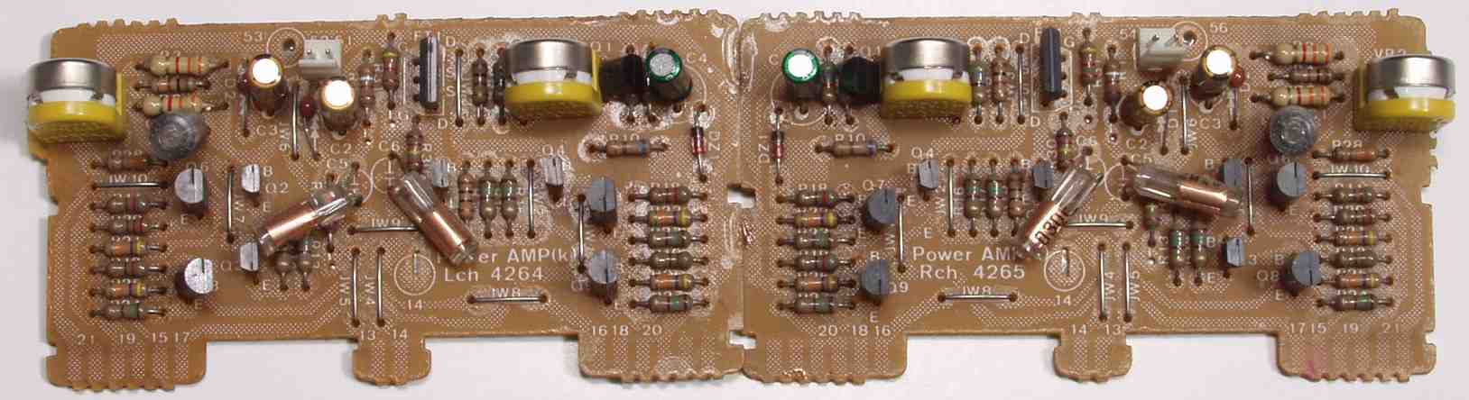 | C−1B. 修理後 AMP基盤 半固定VR4個、電解コンデンサー8個交換 |