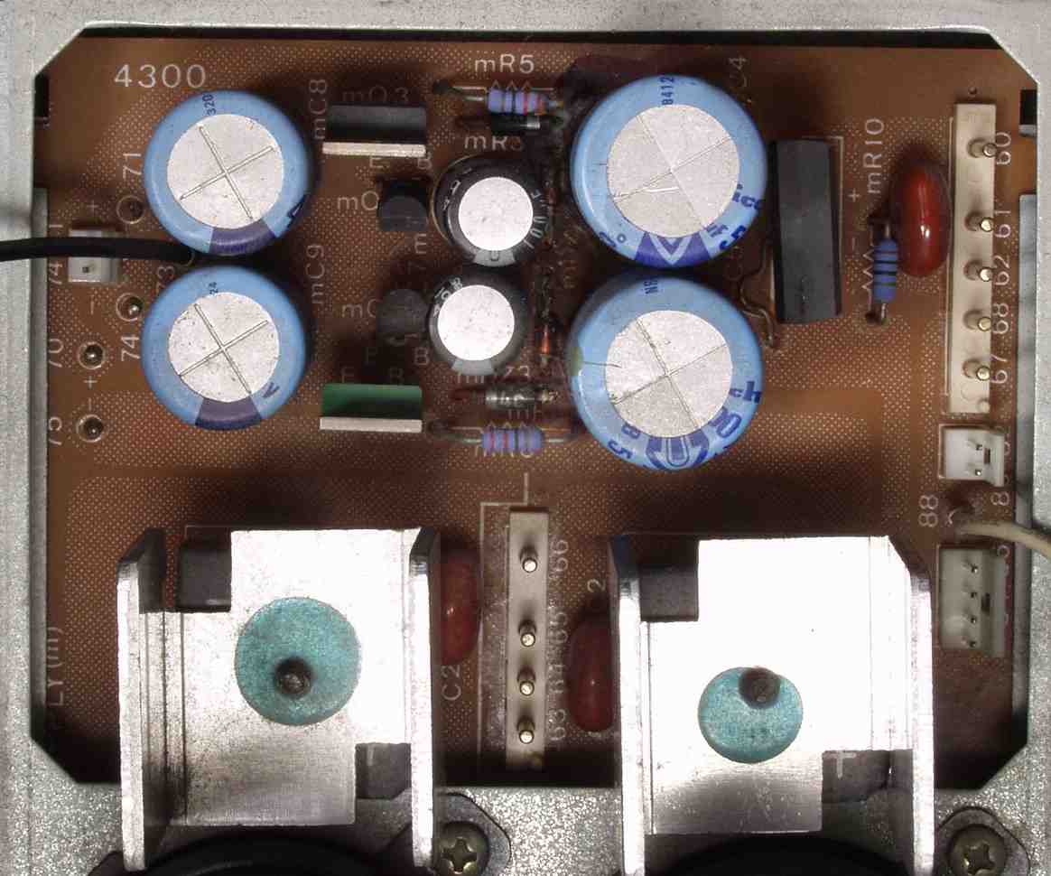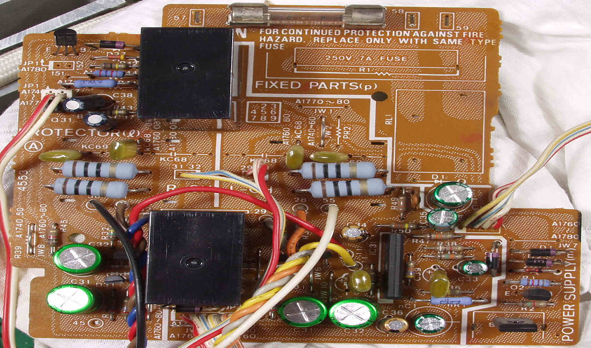 | C−4B. 修理後 電源基板 電解コンデンサー6個、定電圧ダイオード2個交換 |