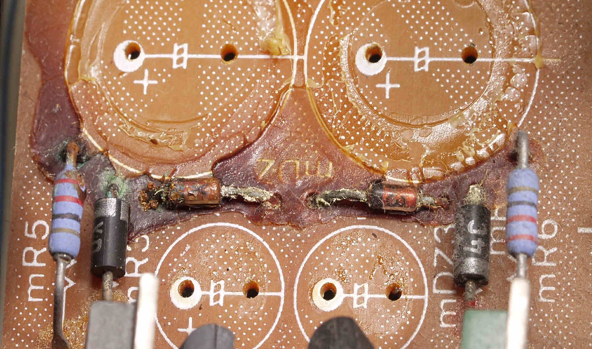 | C−4A−1. 修理中 電源基板 ダイオードは交換、フラックスで錆び止め |