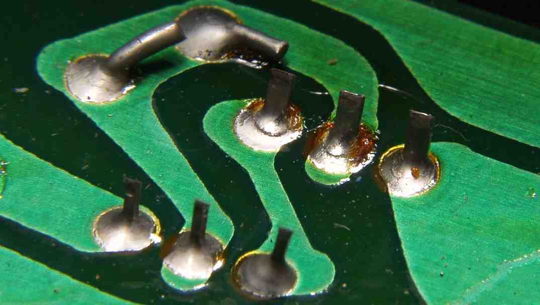 | C−6D. 修理(半田補正)後 EQ基板裏 不要なフラックスを取り清掃後 |