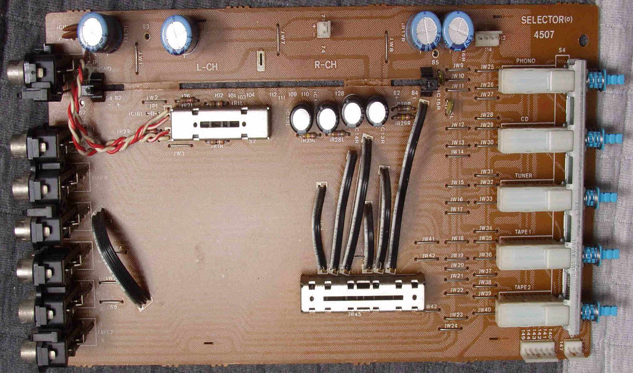 | C−2B. 修理後 ドライブ基盤 初段FET(電界効果トランジスター)2個、半固定VR4個、電解コンデンサー6個交換 |