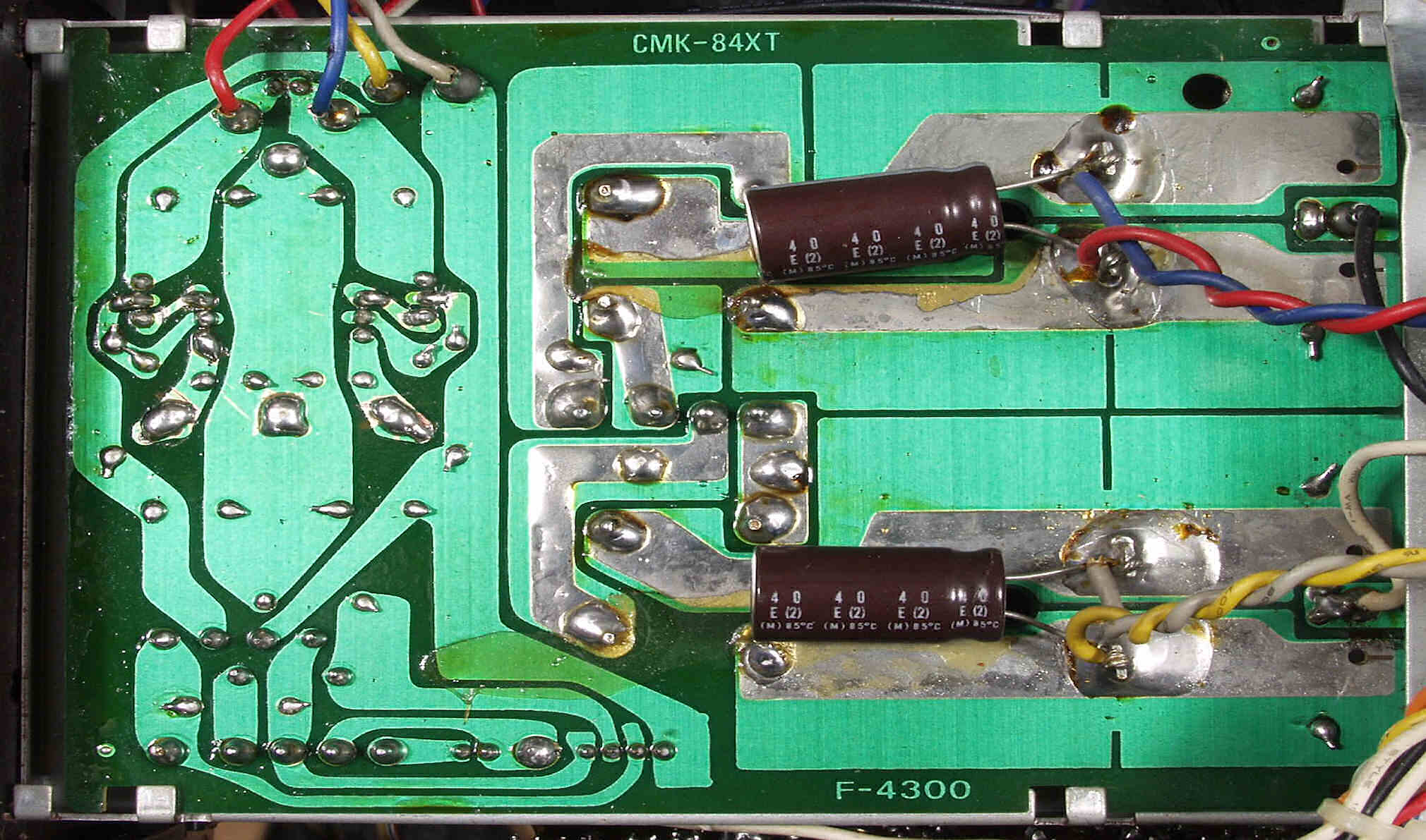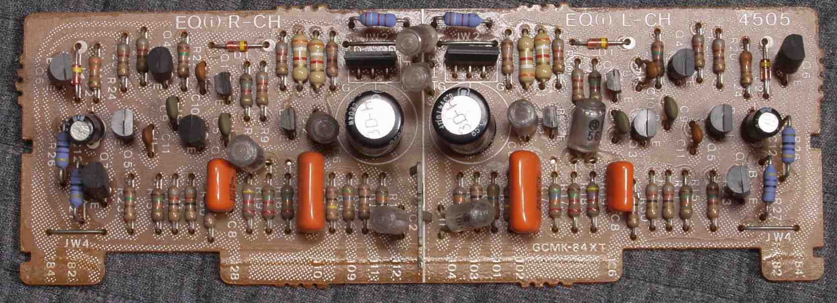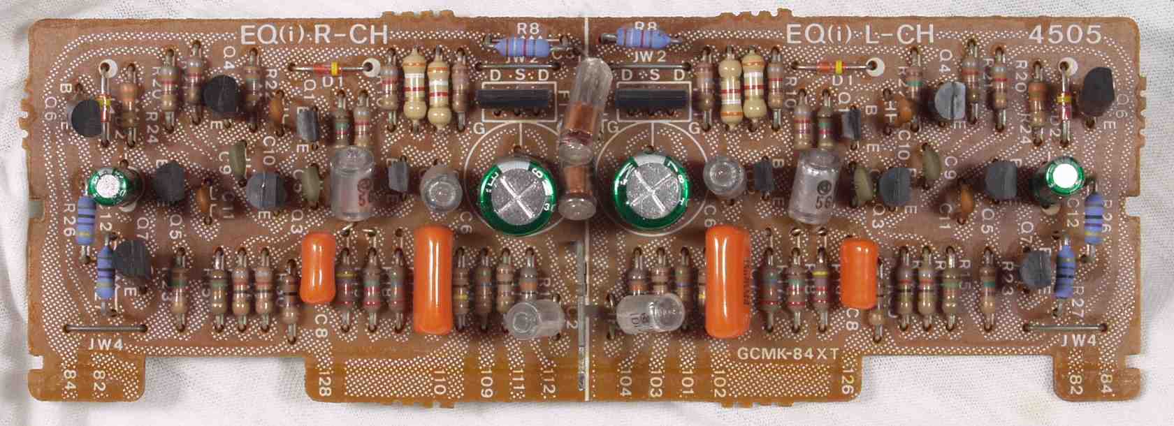 | C−6B. 修理後 EQ基板 電解コンデンサー4個、FET(電界効果トランジスター)2個交換 |