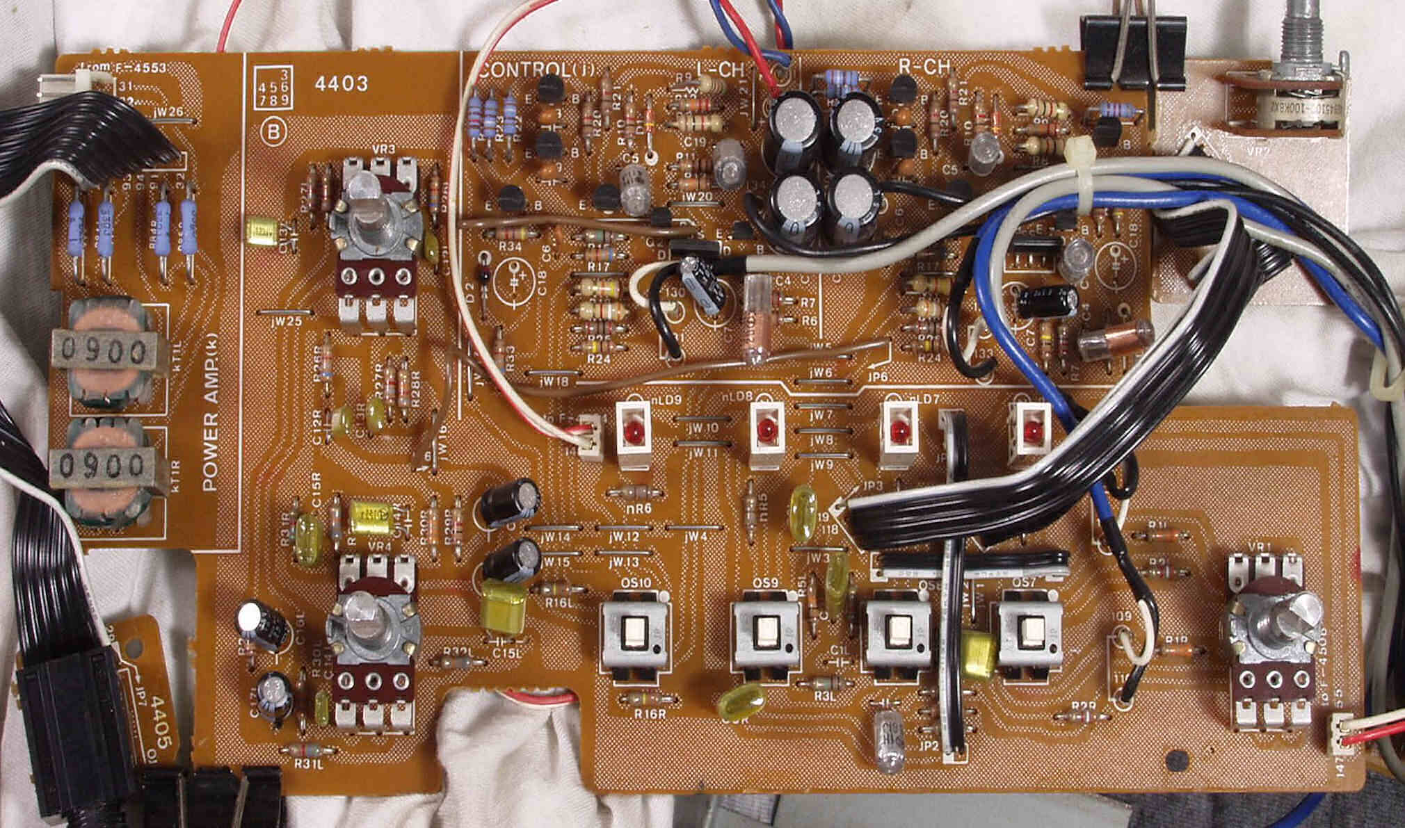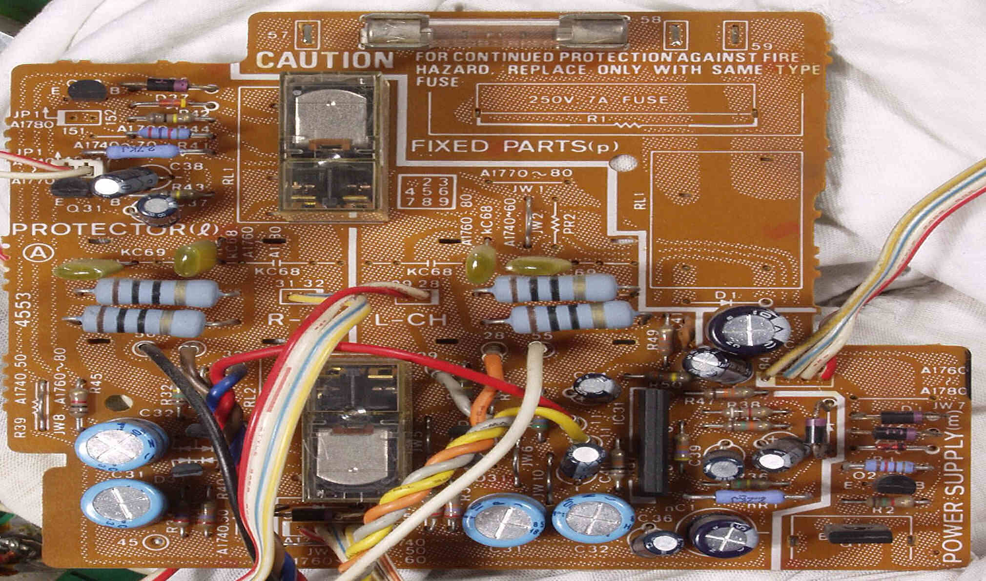 | C−7B. 修理後 コントロール基板 FET(電界効果トランジスター)2個、電解コンデンサー10個、SW4個交換 |