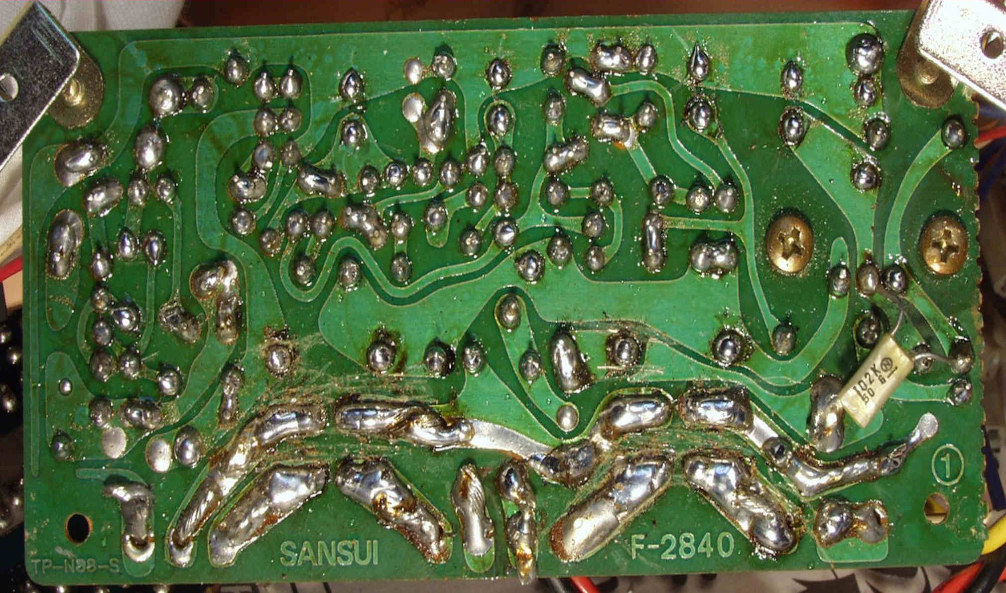 C−6D. 修理(半田補正)後 EQ基板裏  全ての半田をやり直す