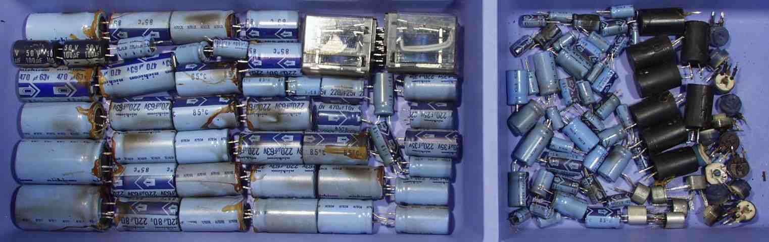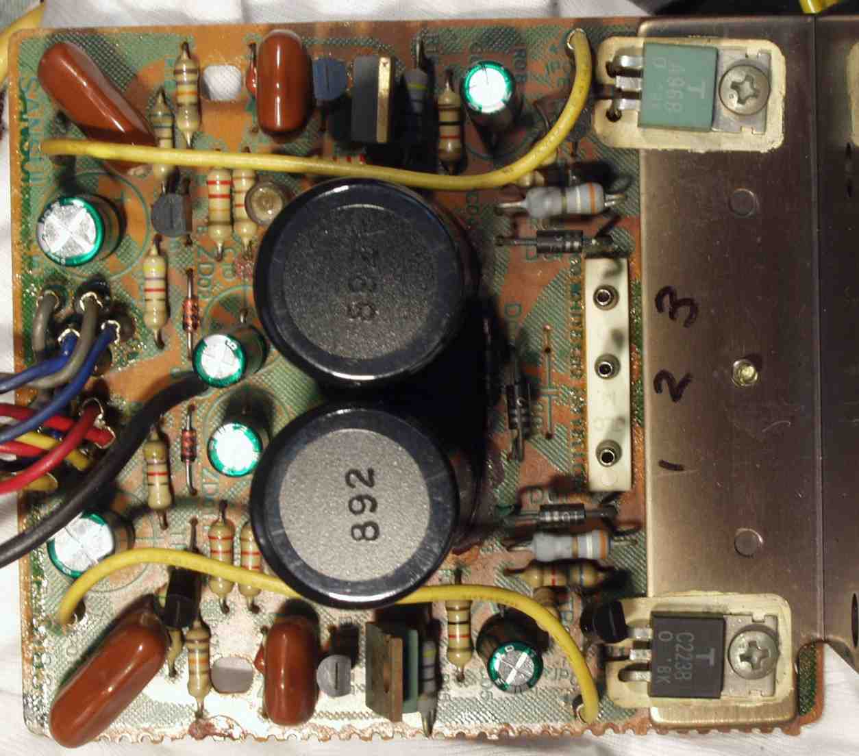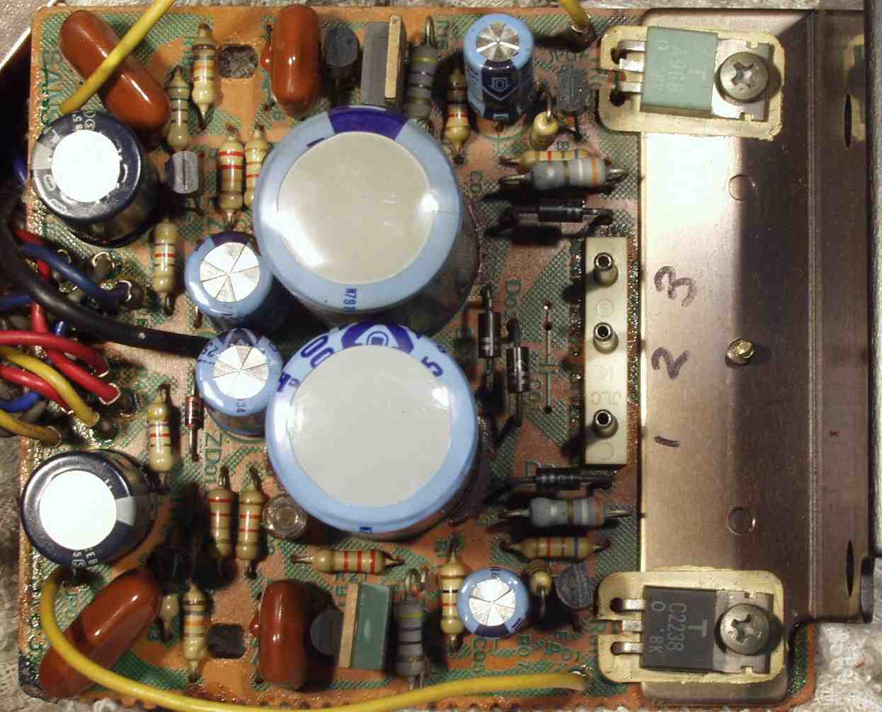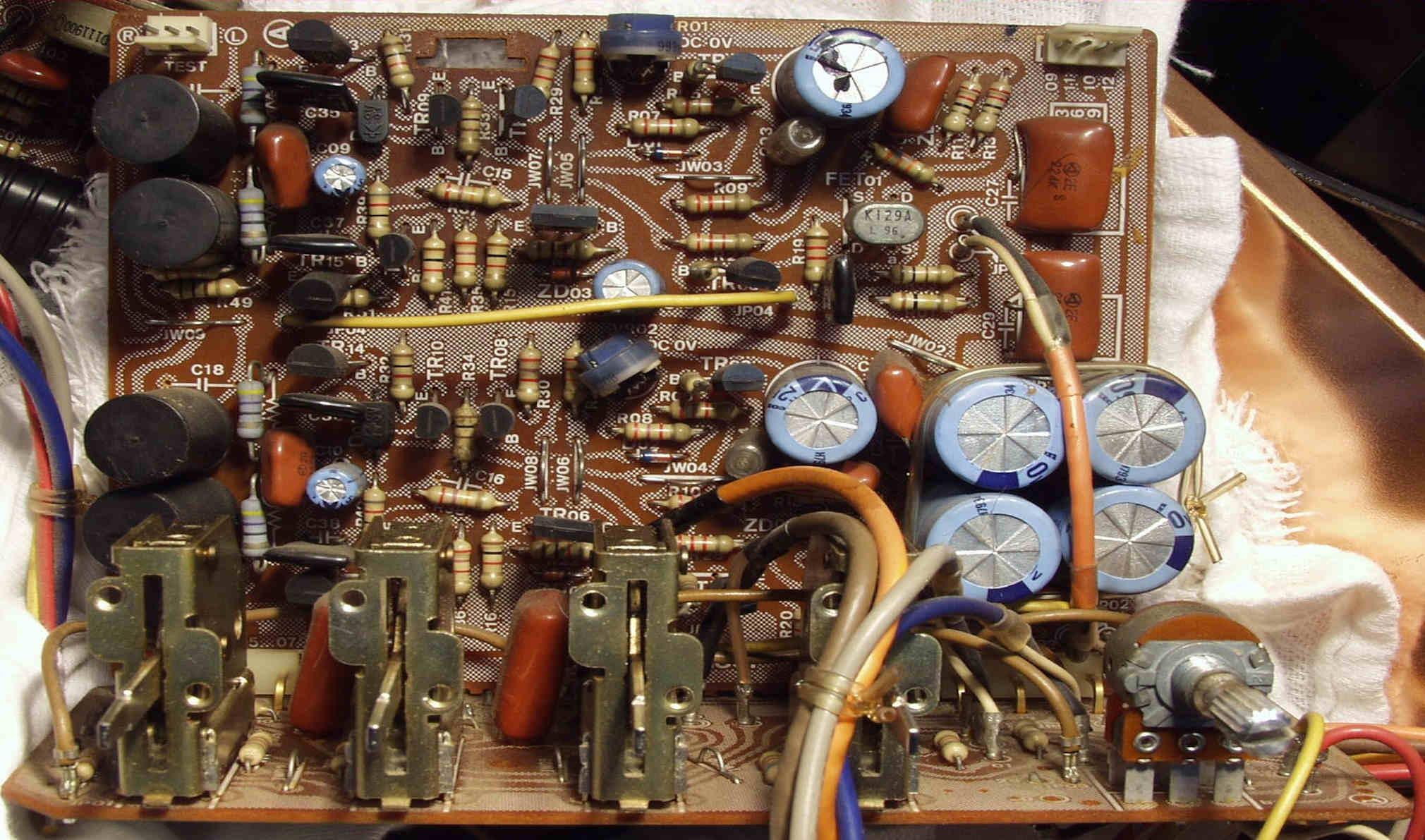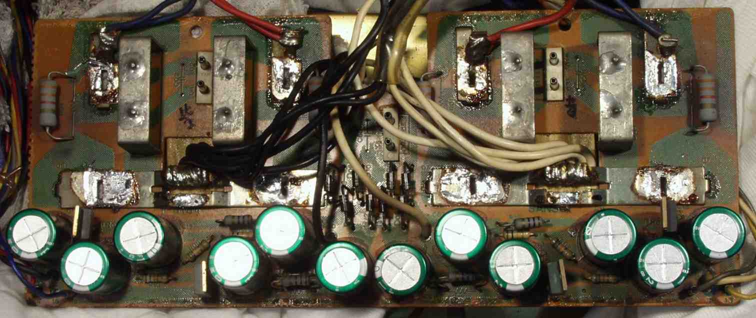 A−1. 修理前 上から 707より、多くの電解コンデンサーが使われている、容量も大きい