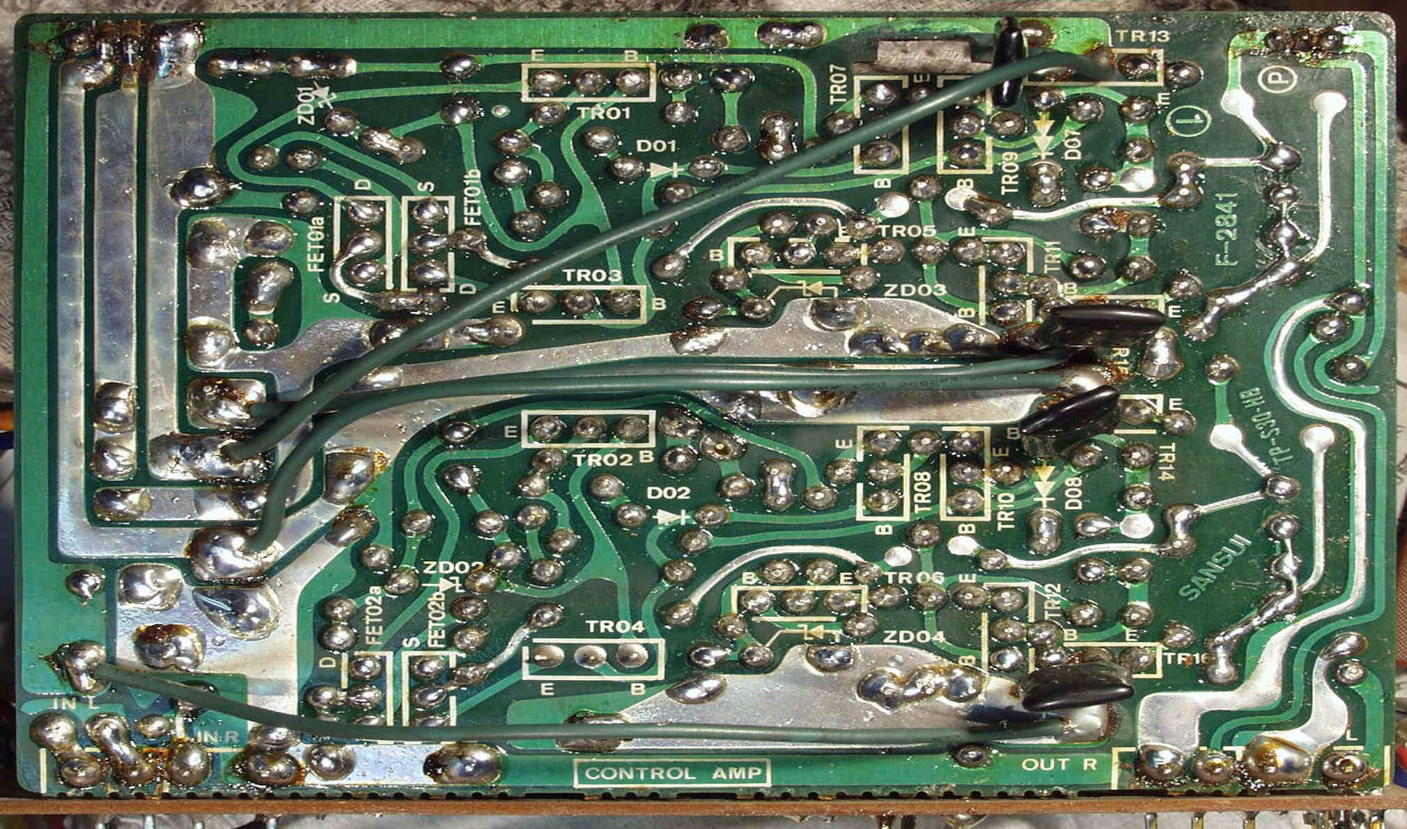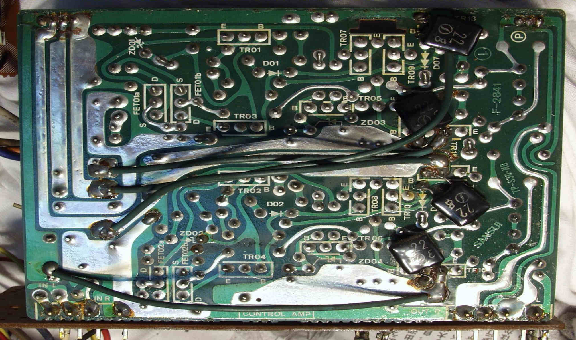 C−1C. 修理前 メイン・ドライブAMP基板裏
