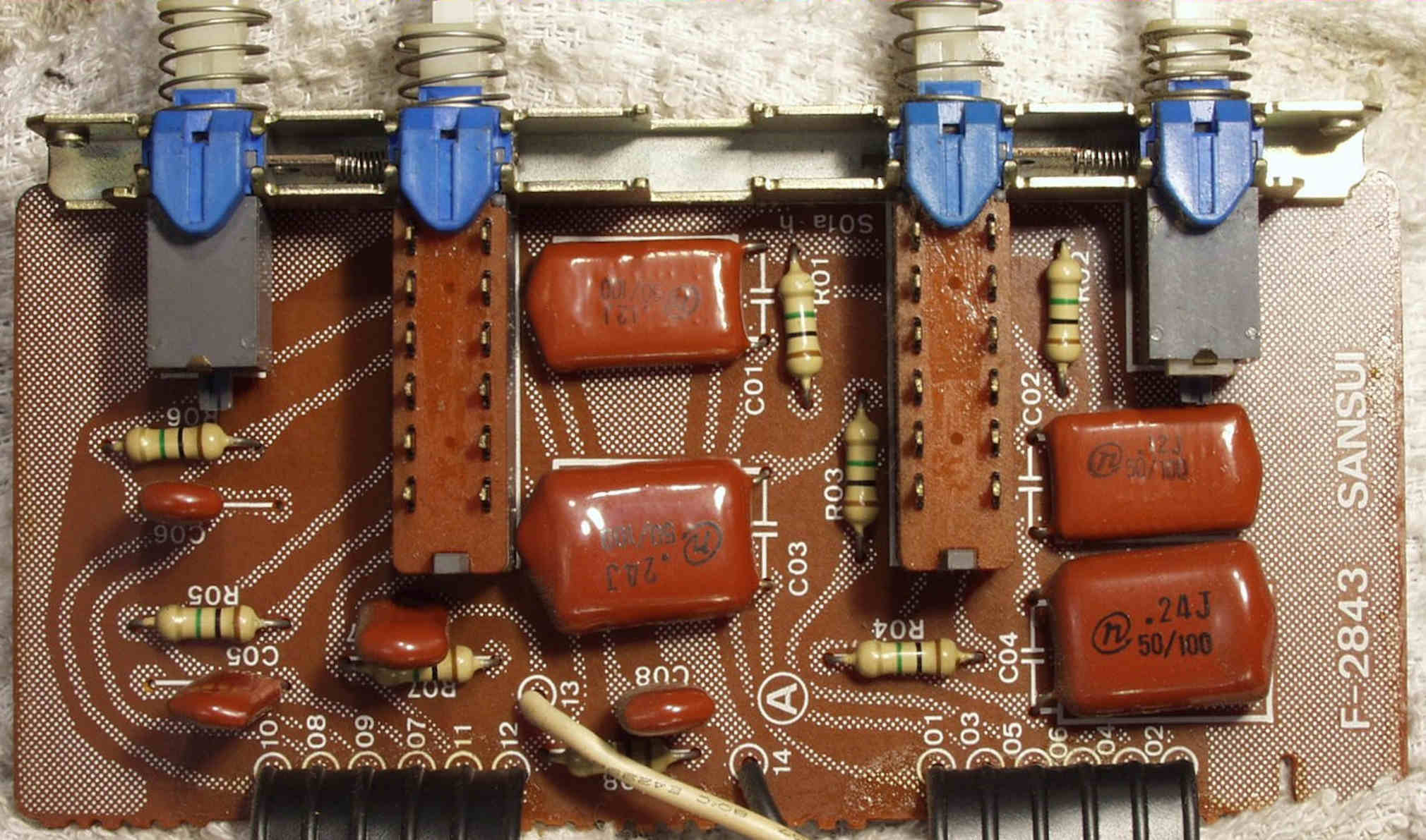 C−6E. 修理中 EQ基板の入力切り替えSW、右半分は清掃した所