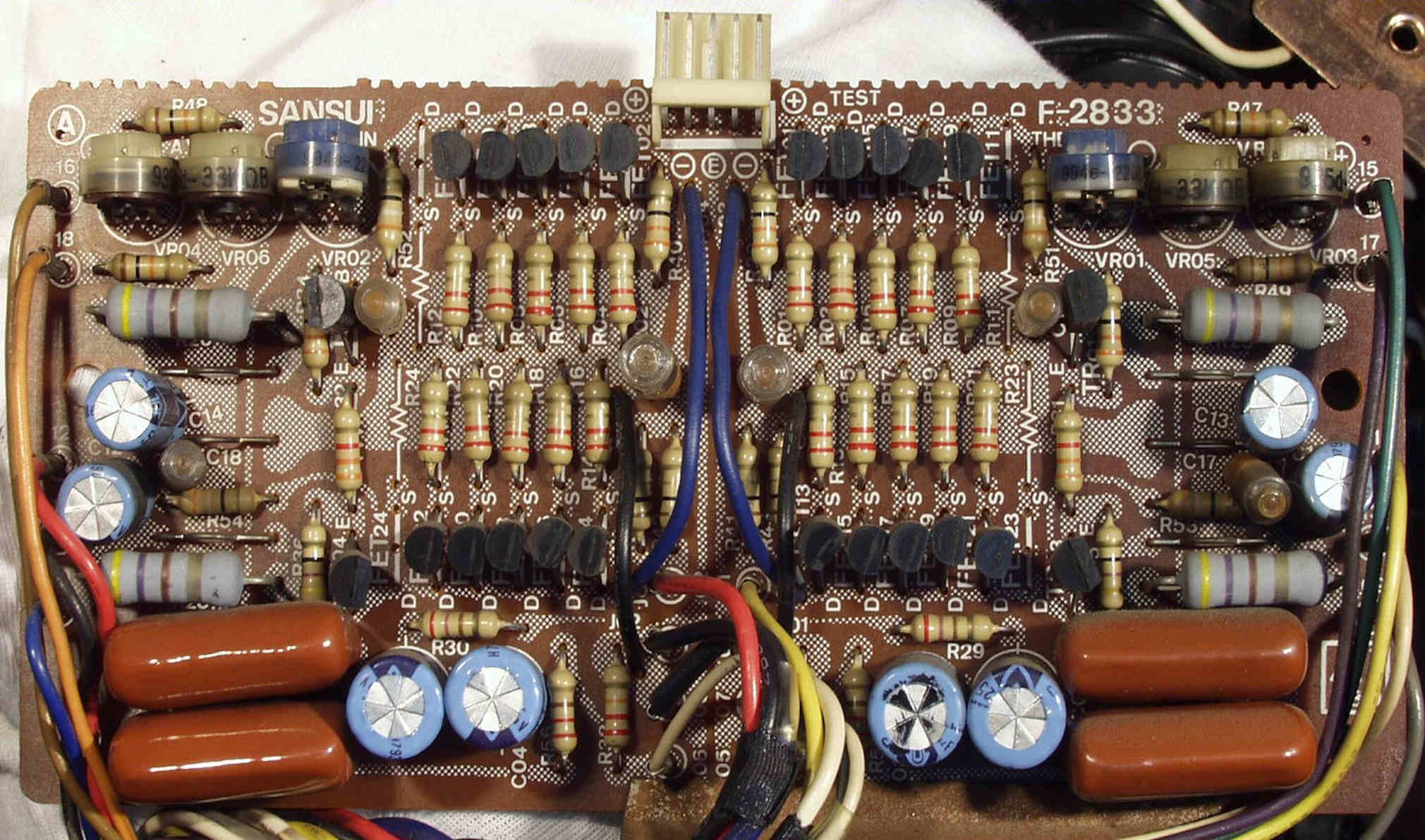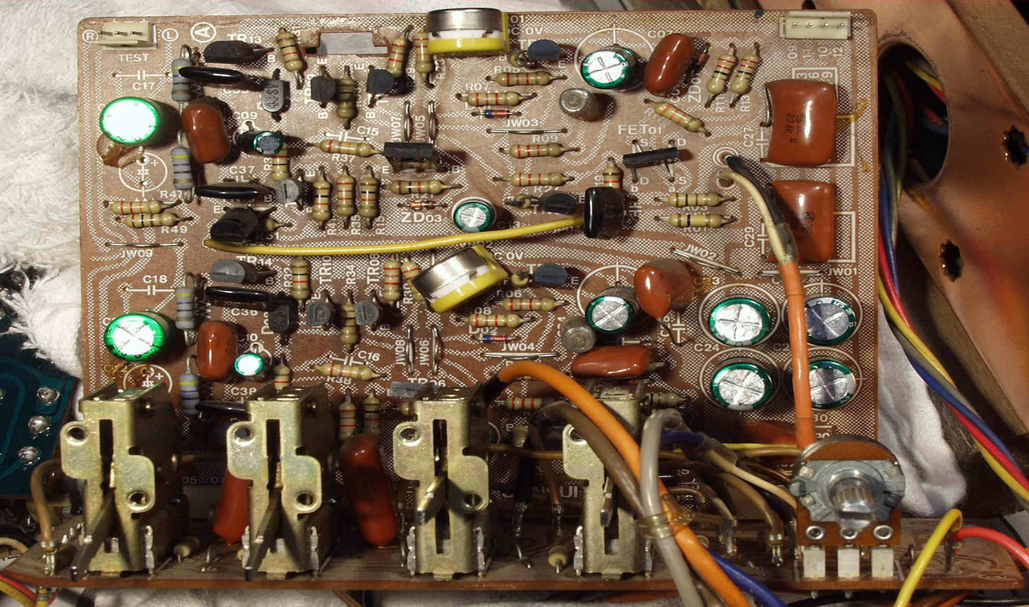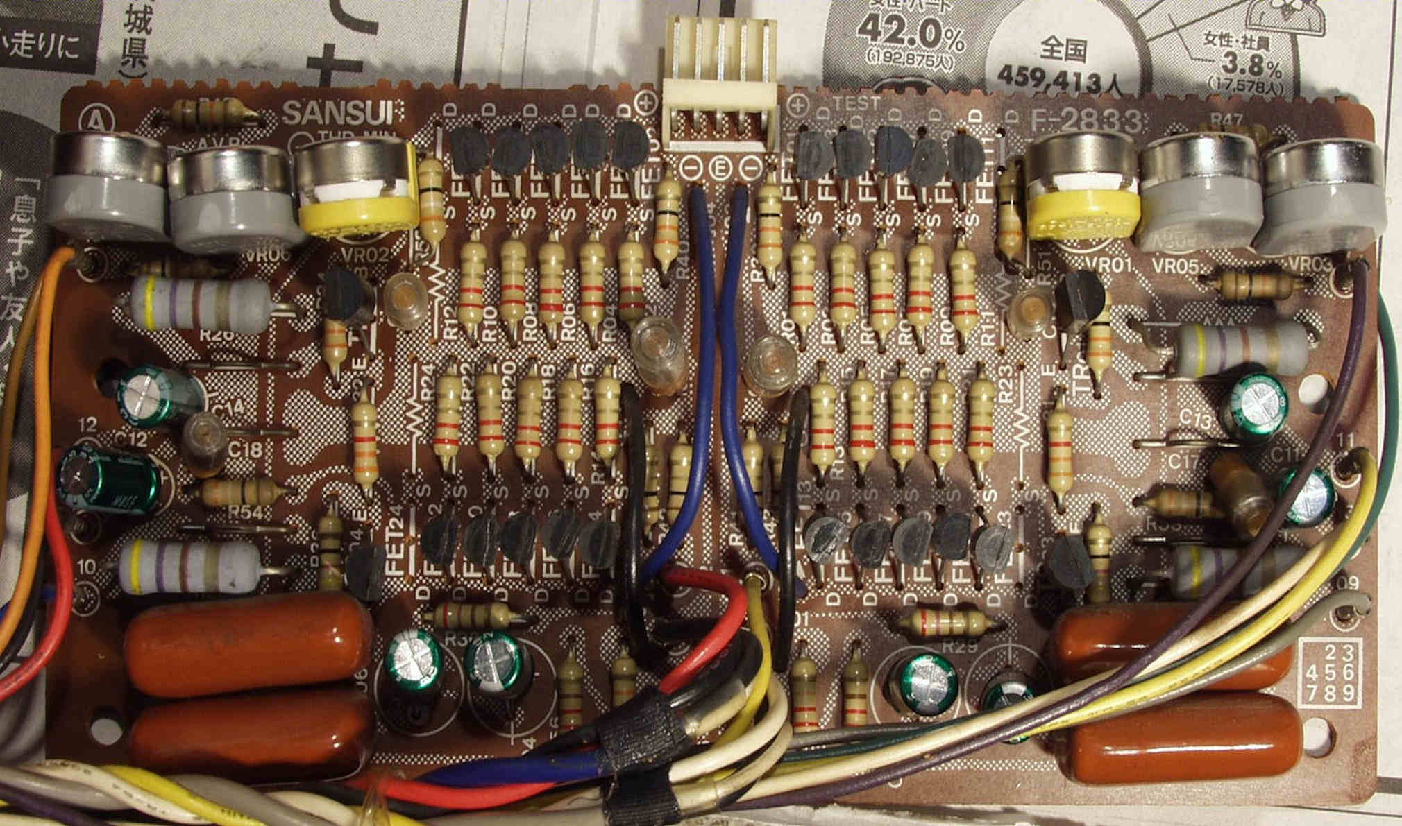 C−6B. 修理後 EQ基板 初段FET(電界効果トランジスター)2個、半固定VR2個、電解コンデンサー20個交換