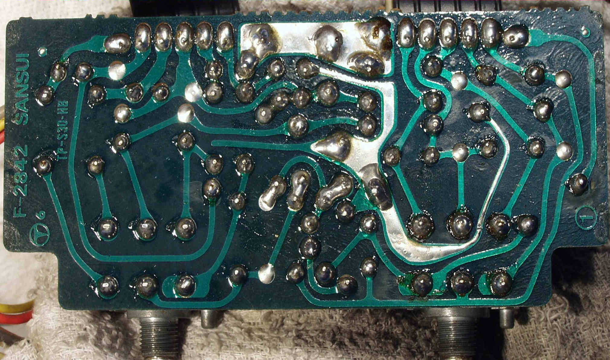 C−2H. 修理(半田補正)後  TapePlaySW基板 TapeCopySW基板裏 全ての半田をやり直す