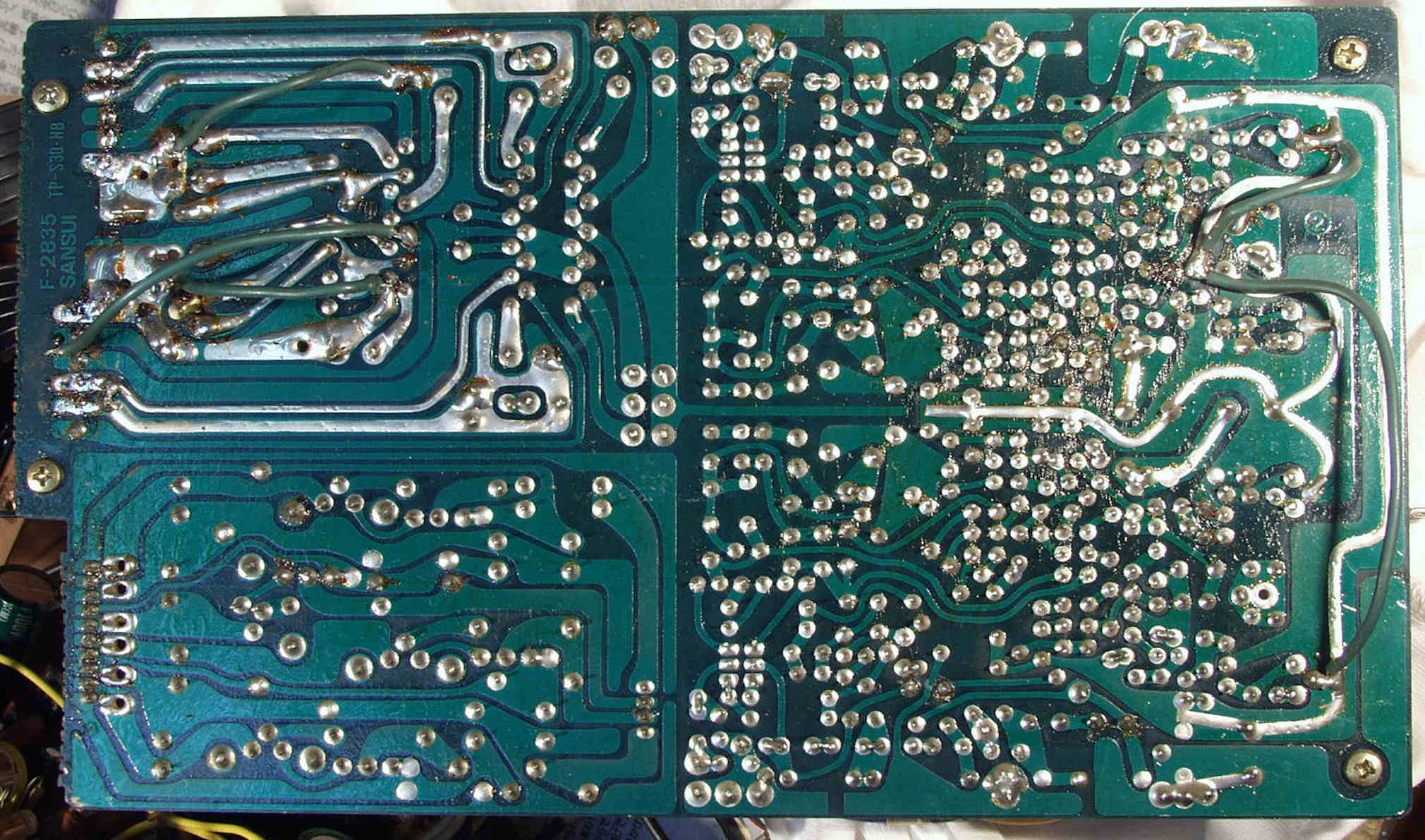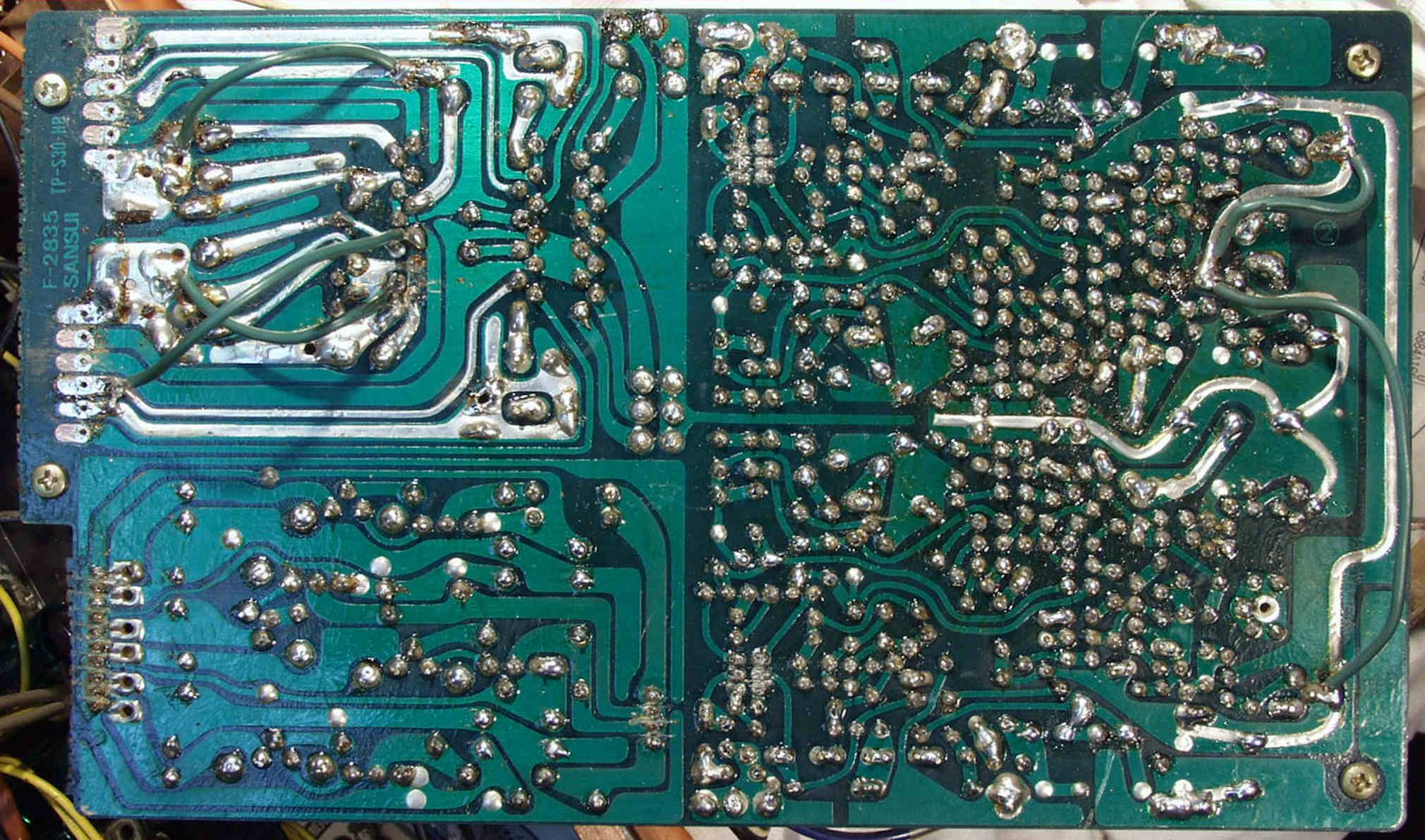 C−1D. 修理(半田補正)後 メイン・ドライブAMP基板裏 全ての半田をやり直す