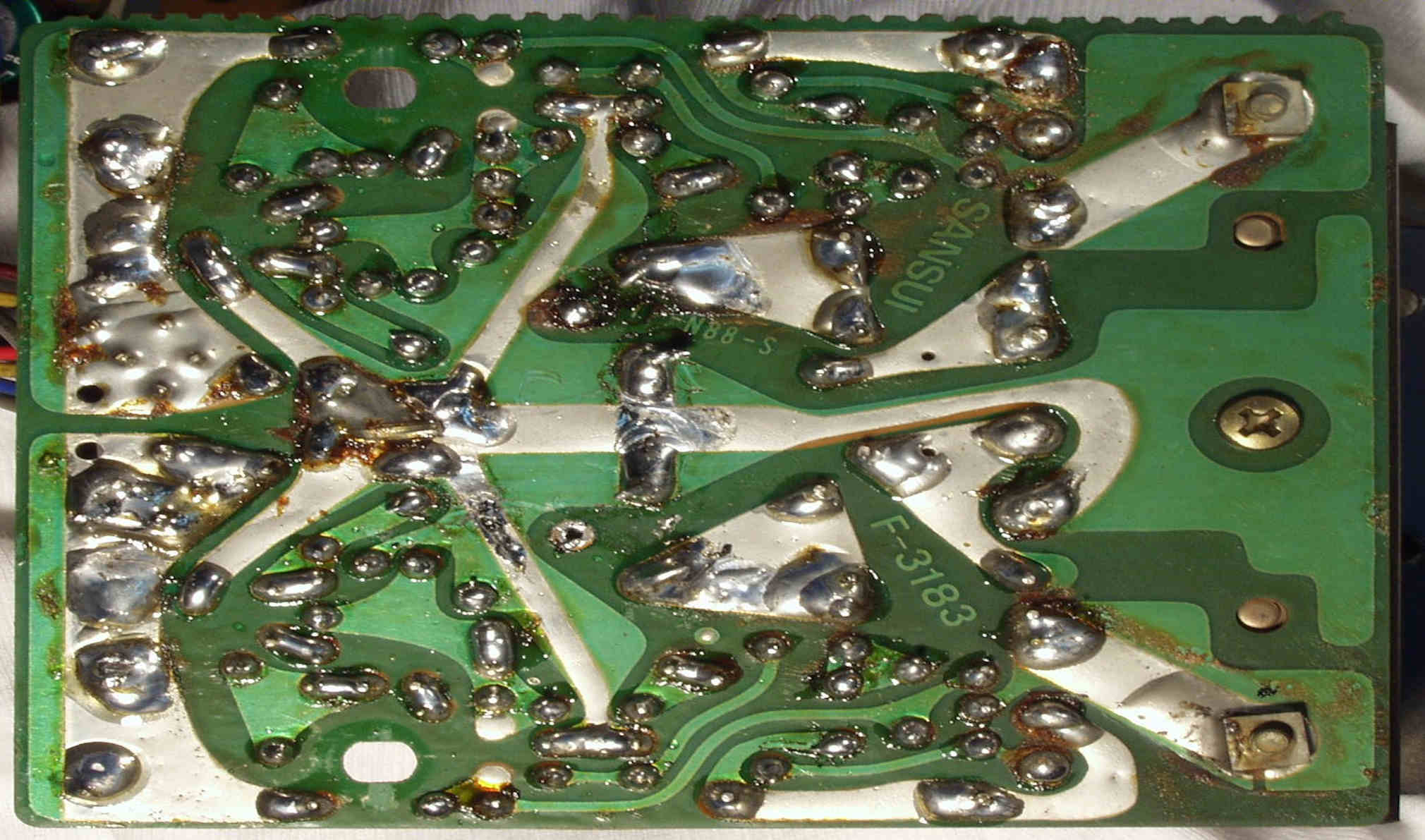 C−3G. 修理(半田補正)後 電源整流基板2裏  全ての半田をやり直す
