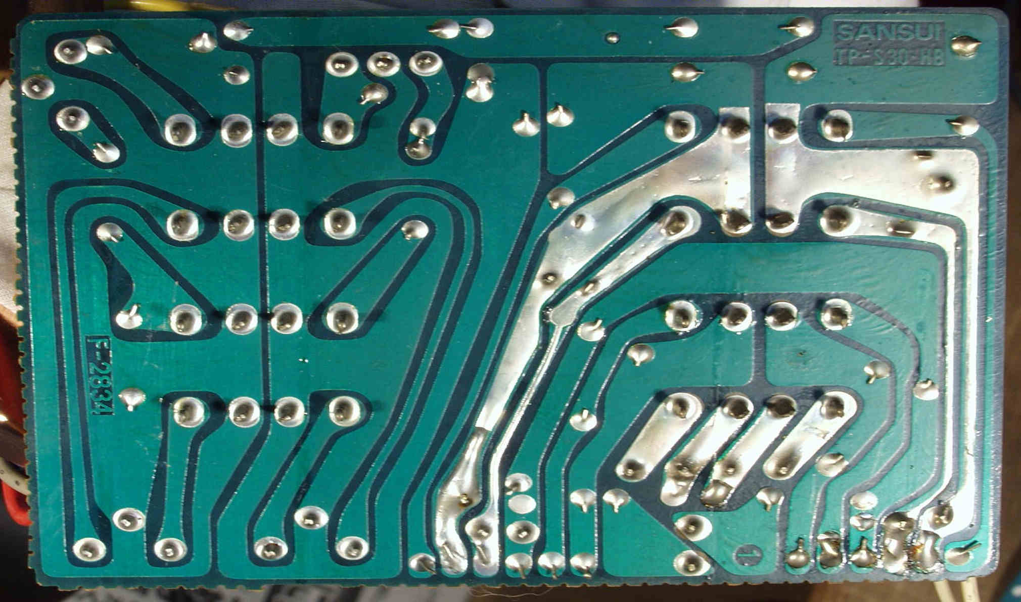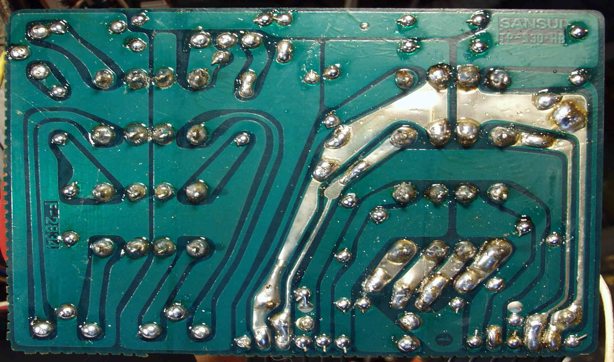 C−2D. 修理(半田補正)後 FLAT−AMP基板裏  全ての半田をやり直す