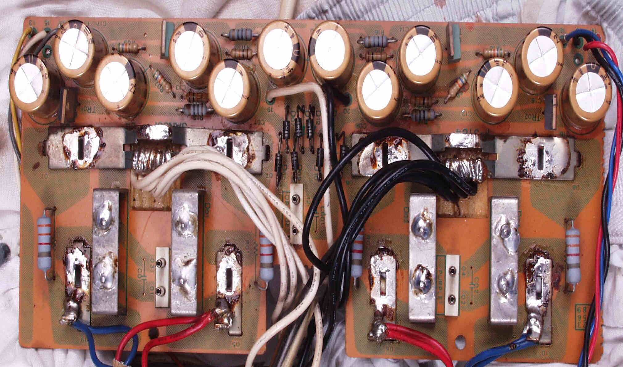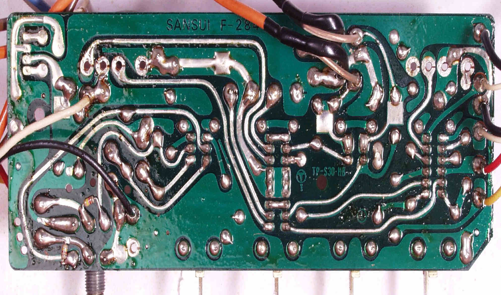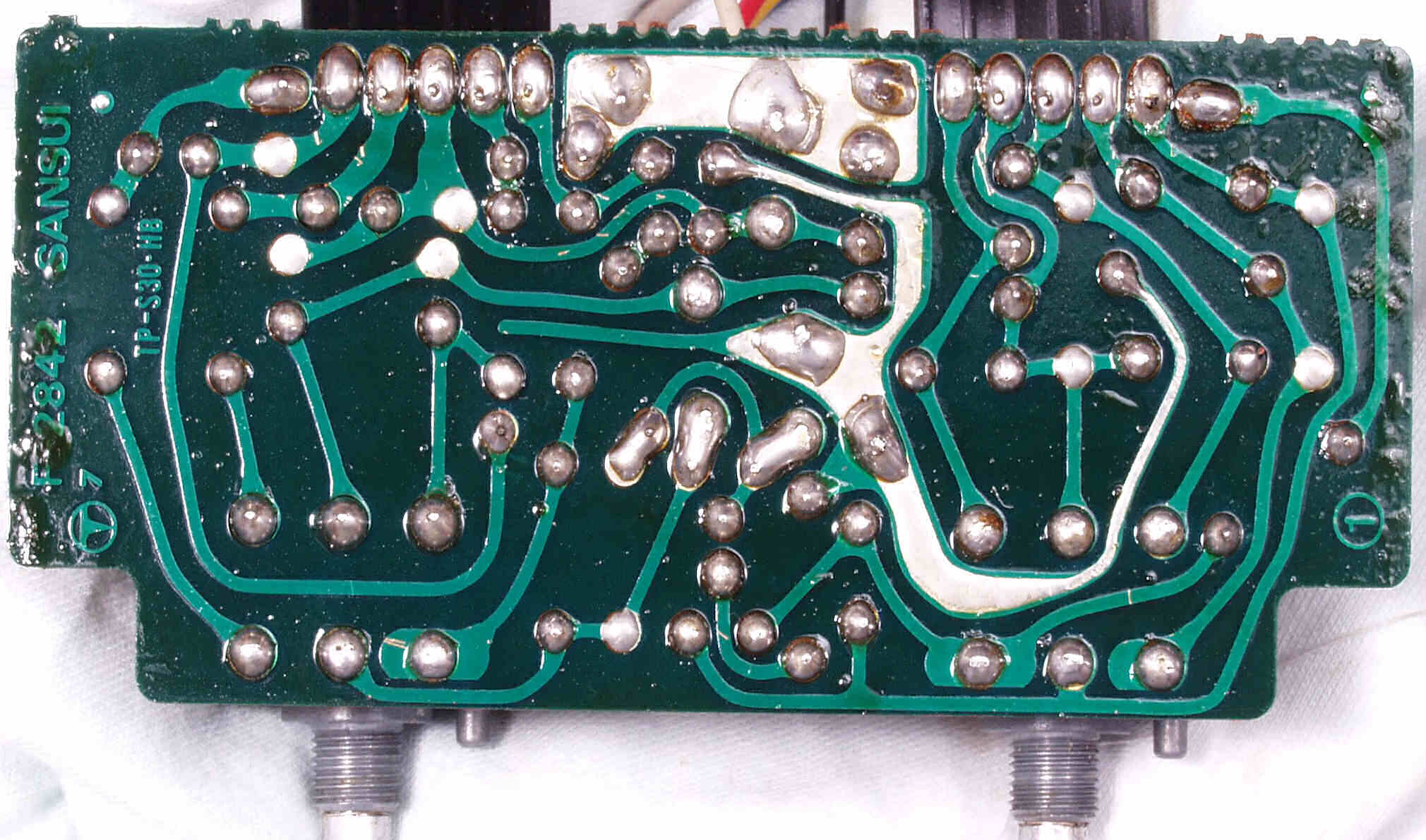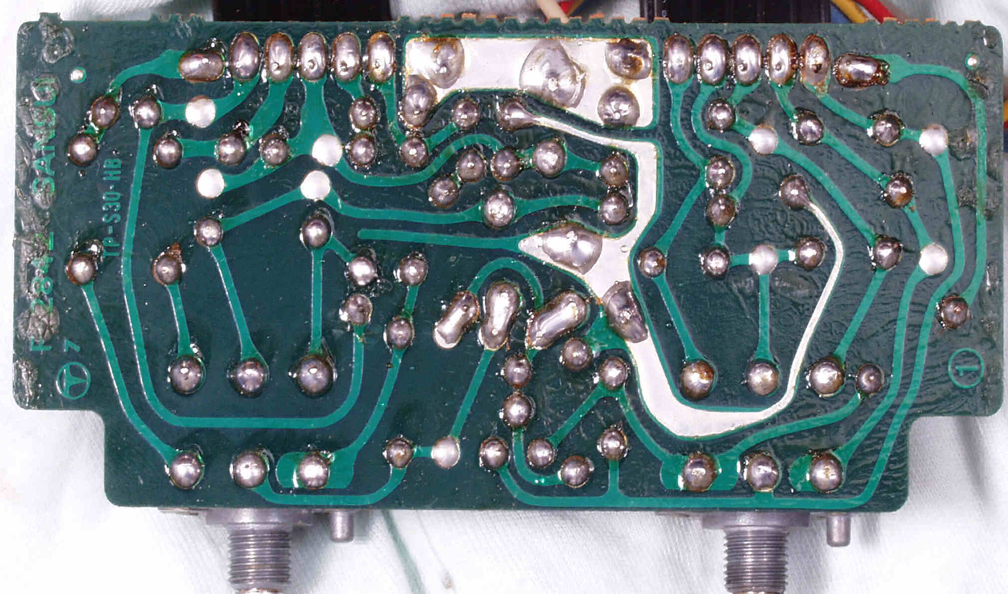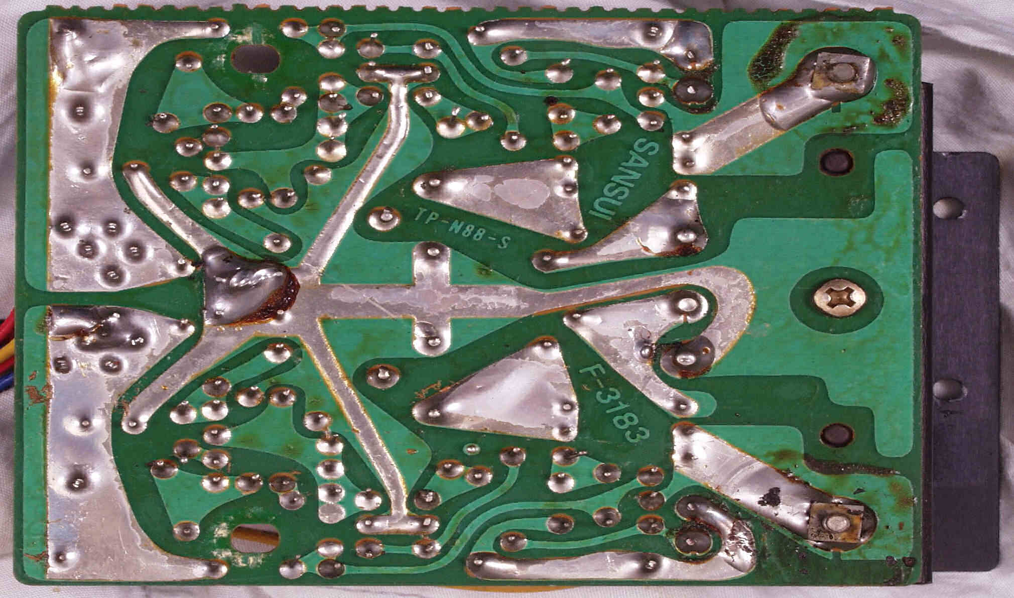 | C−3A−1. 修理前 電源整流基板 半田球が着いたまま、良く落ちなかったものです | ||||||||||||||||||||||||||||||||||||||||||||||||||||||||||||||||||||||||||||