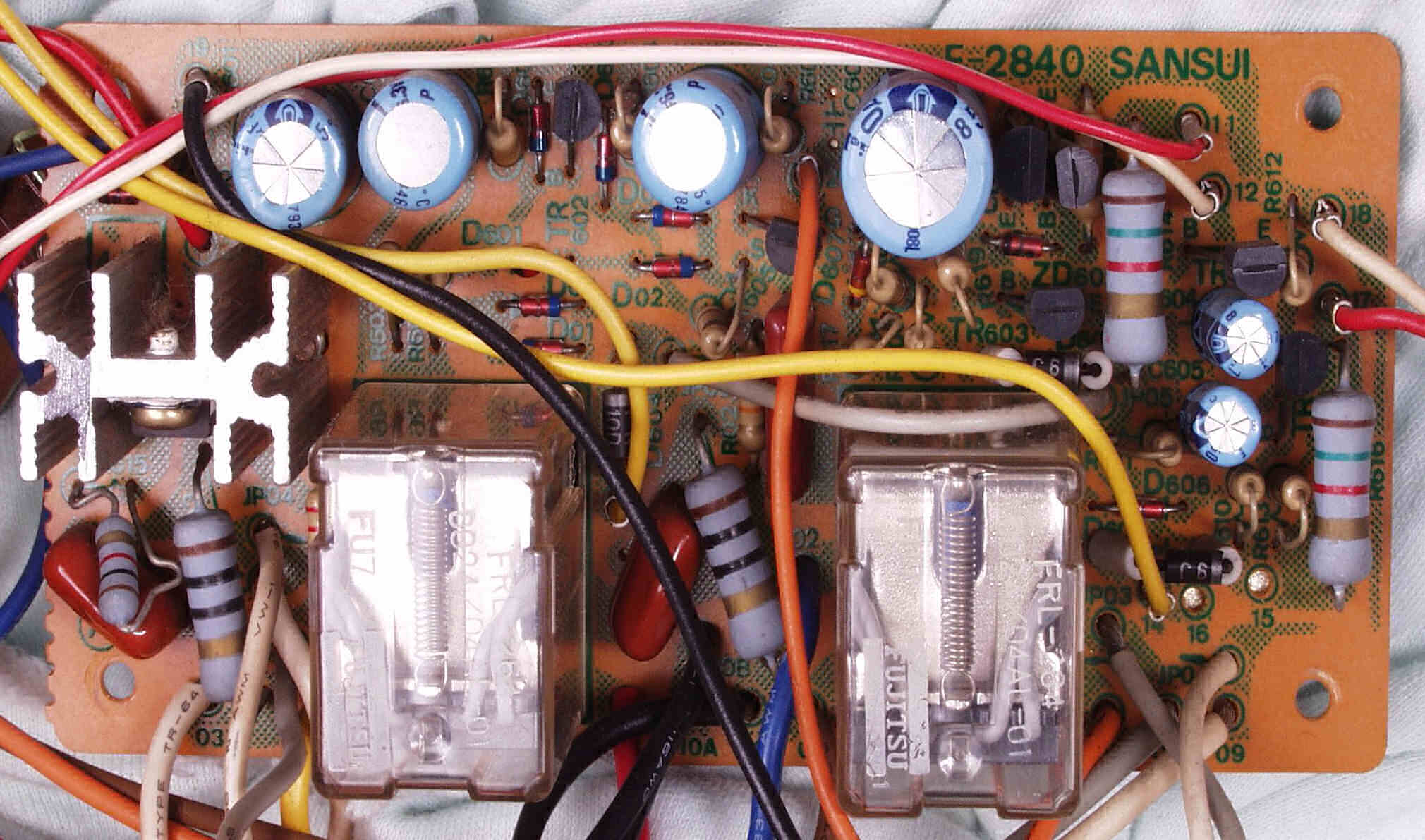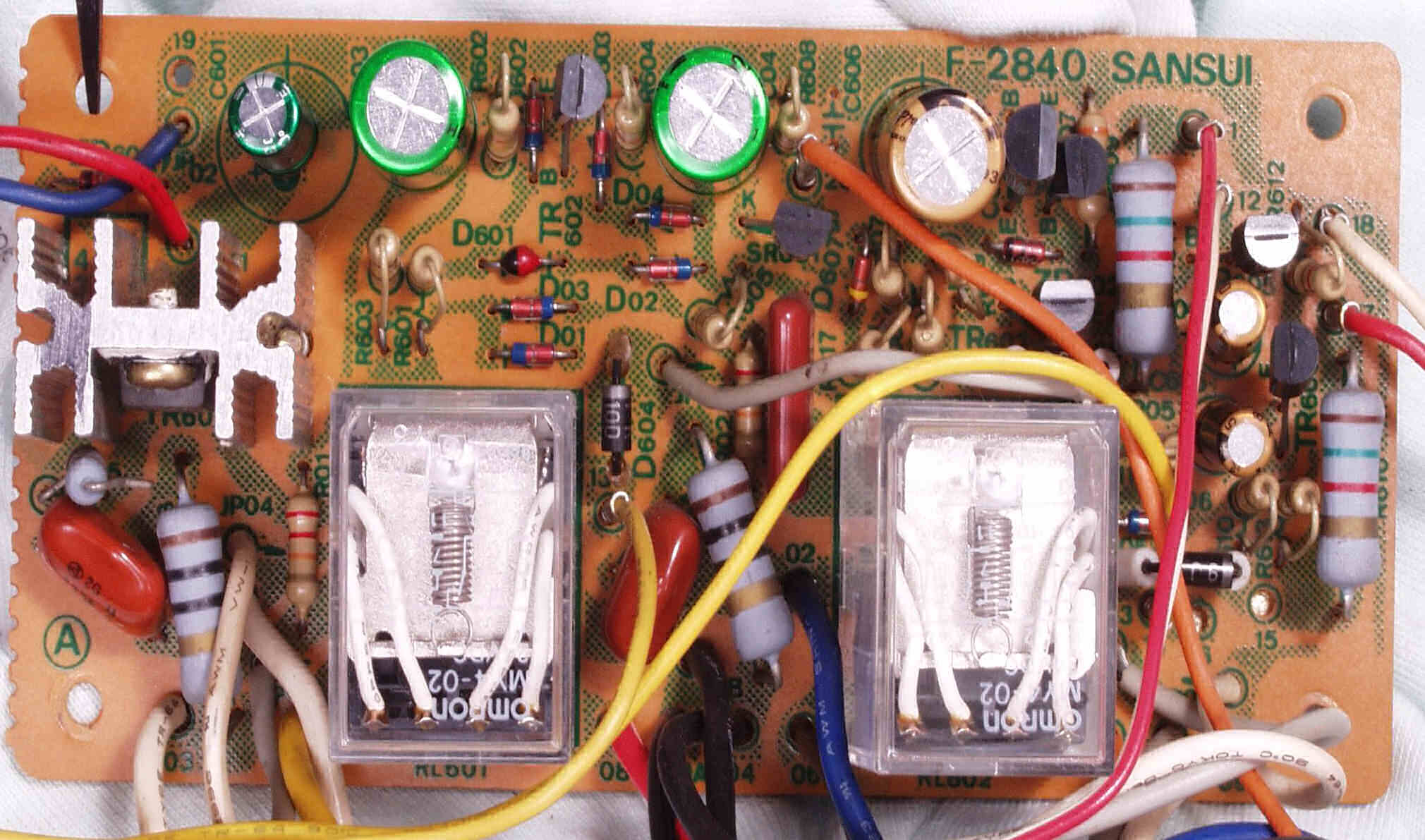 | C−8B. 修理後 SP接続リレー・プロテクト基板 SP接続リレー2個、電解コンデンサー6個交換 | ||||||||||||||||||||||||||||||||||||||||||||||||||||||||||||||||||||||||||||