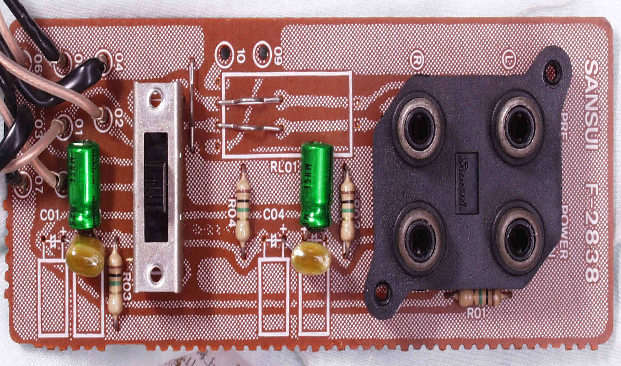 | C−5B. 修理後 プリメインRCA端子 高価なBPに変更したので「2個→1個」、フイルムコンデンサー2個追加 | ||||||||||||||||||||||||||||||||||||||||||||||||||||||||||||||||||||||||||||