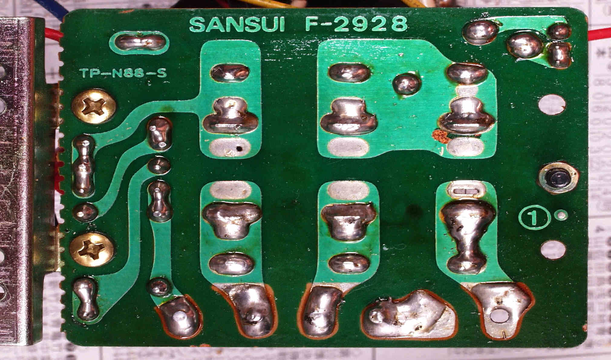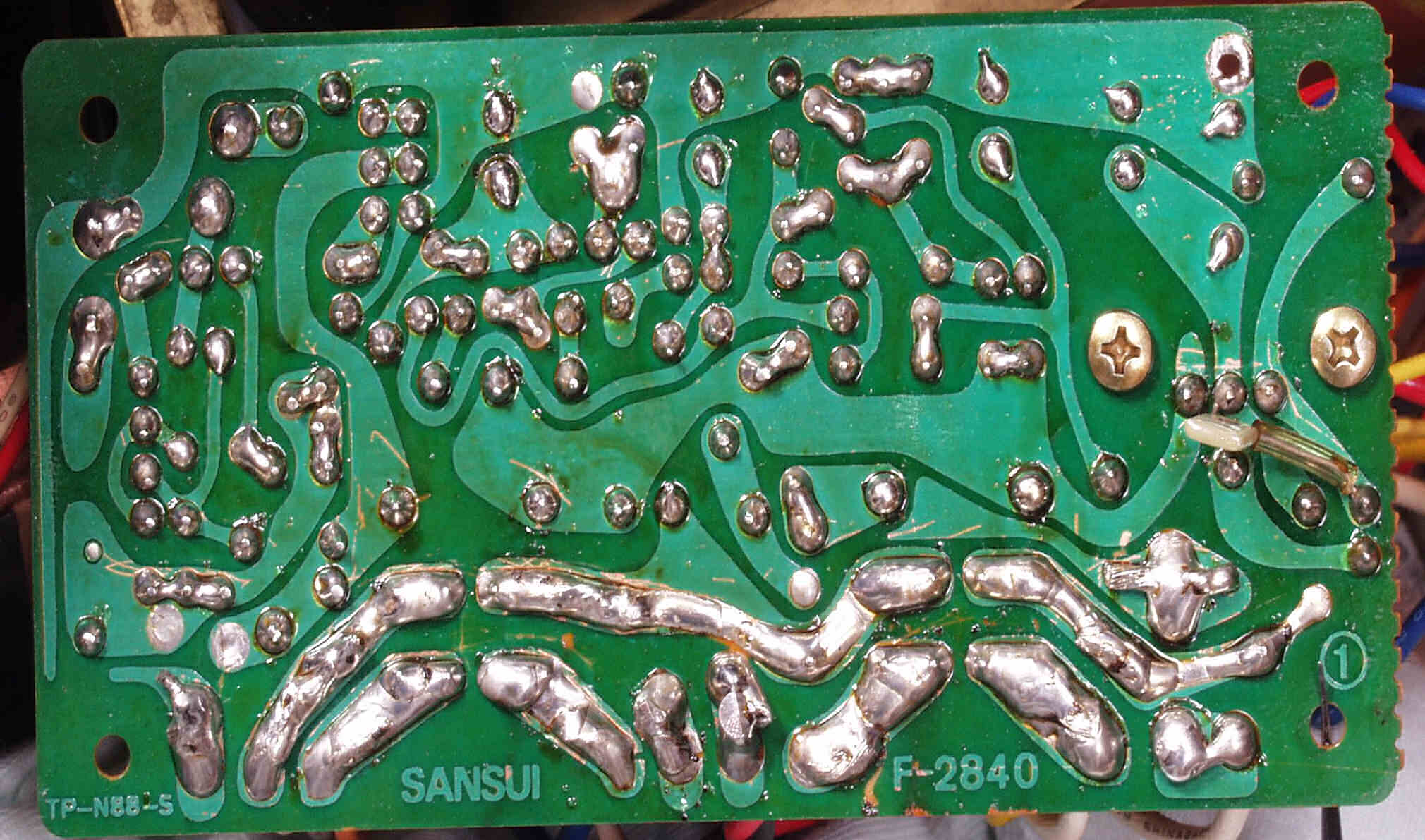 | C−8C−1. 修理前 SP接続リレー・プロテクト基板裏 汚い半田! | ||||||||||||||||||||||||||||||||||||||||||||||||||||||||||||||||||||||||||||