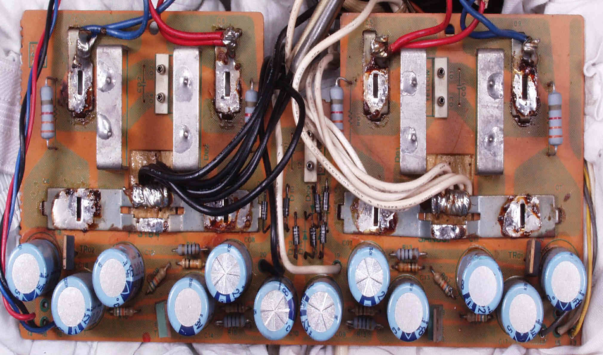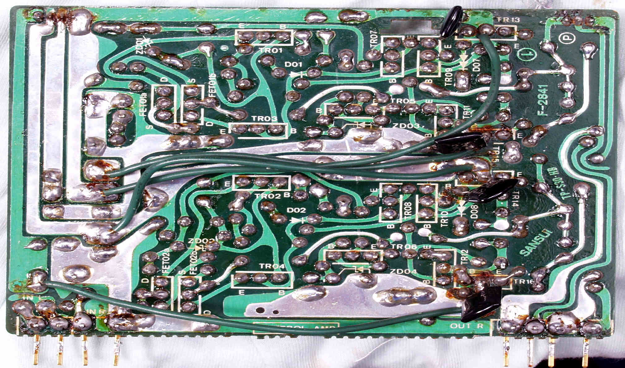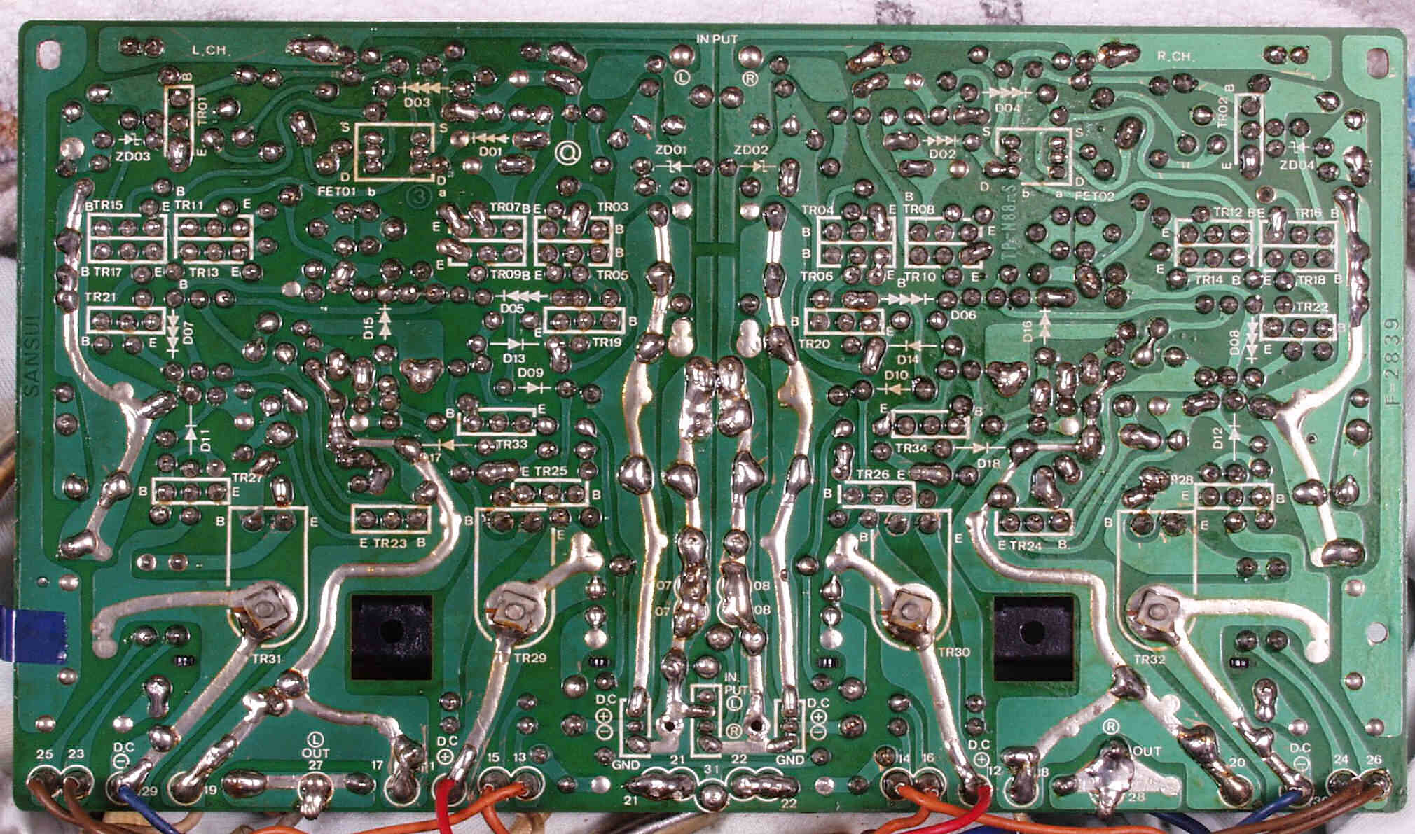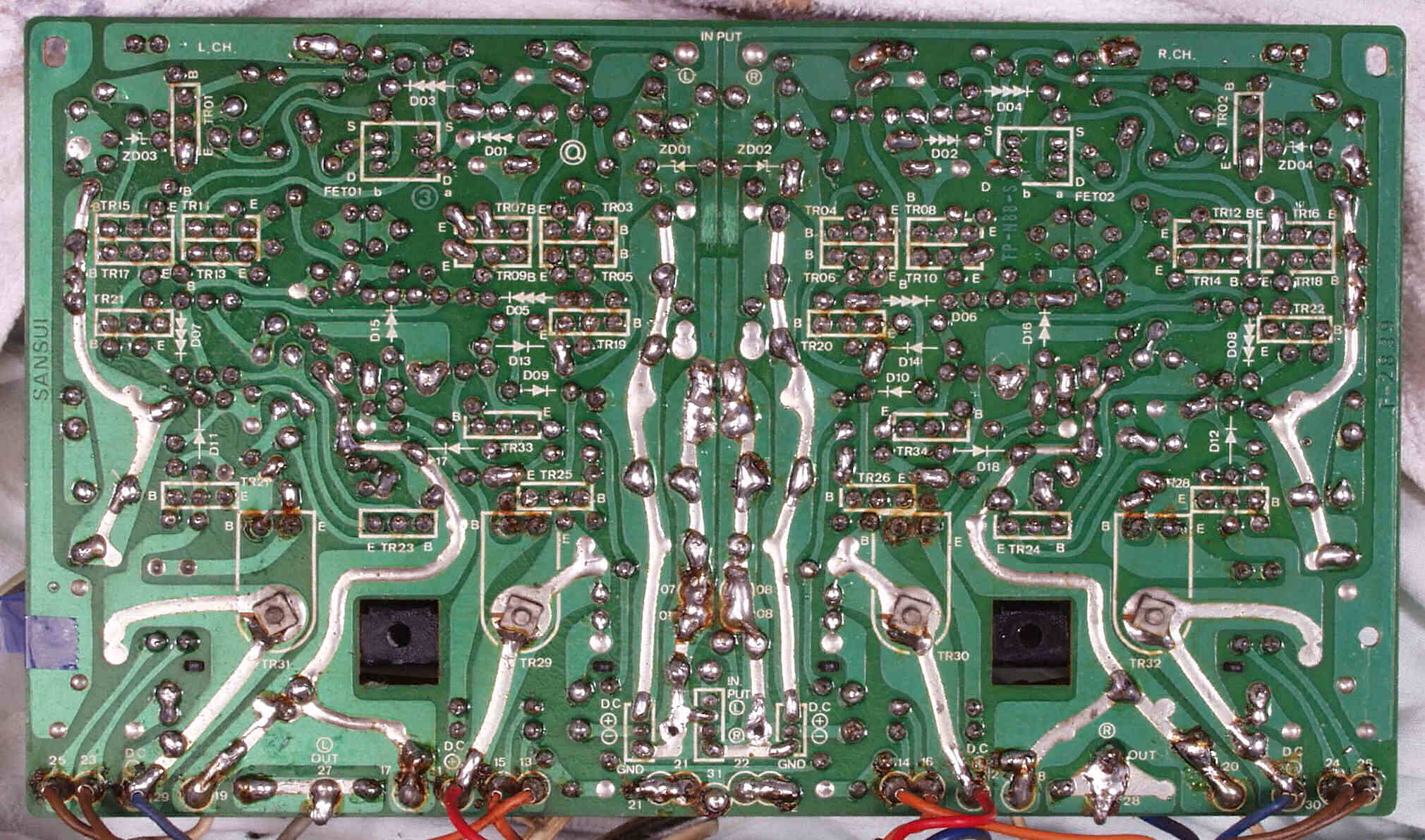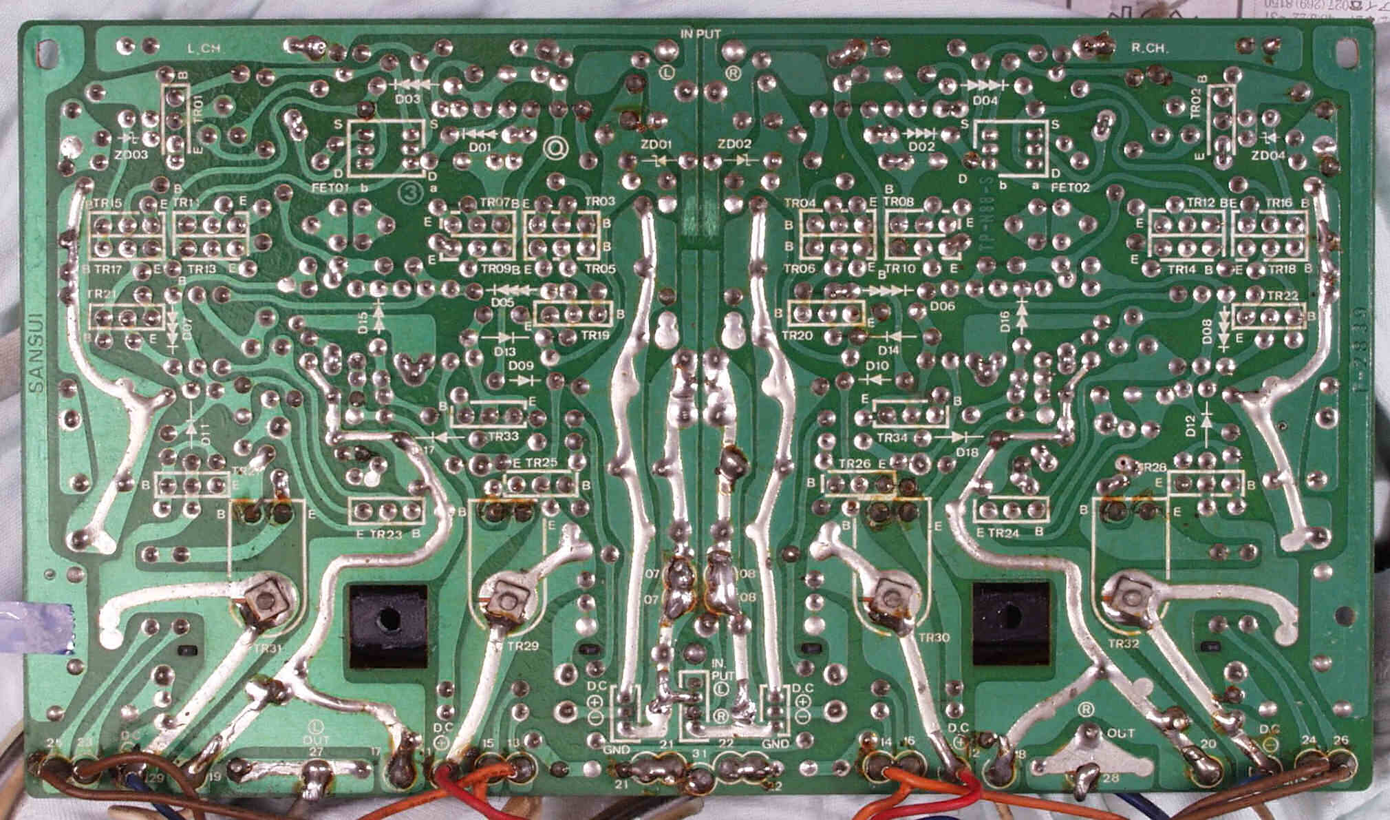 | C−1C. 修理前 メイン・ドライブAMP基板裏 | ||||||||||||||||||||||||||||||||||||||||||||||||||||||||||||||||||||||||||||