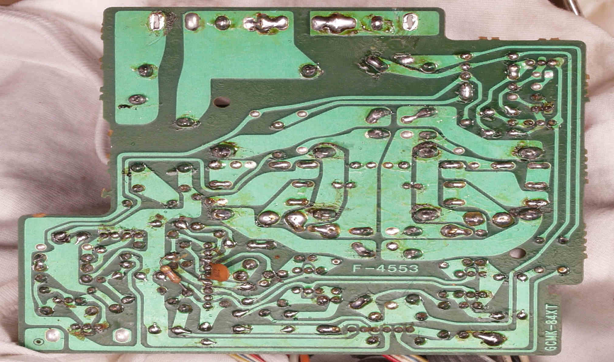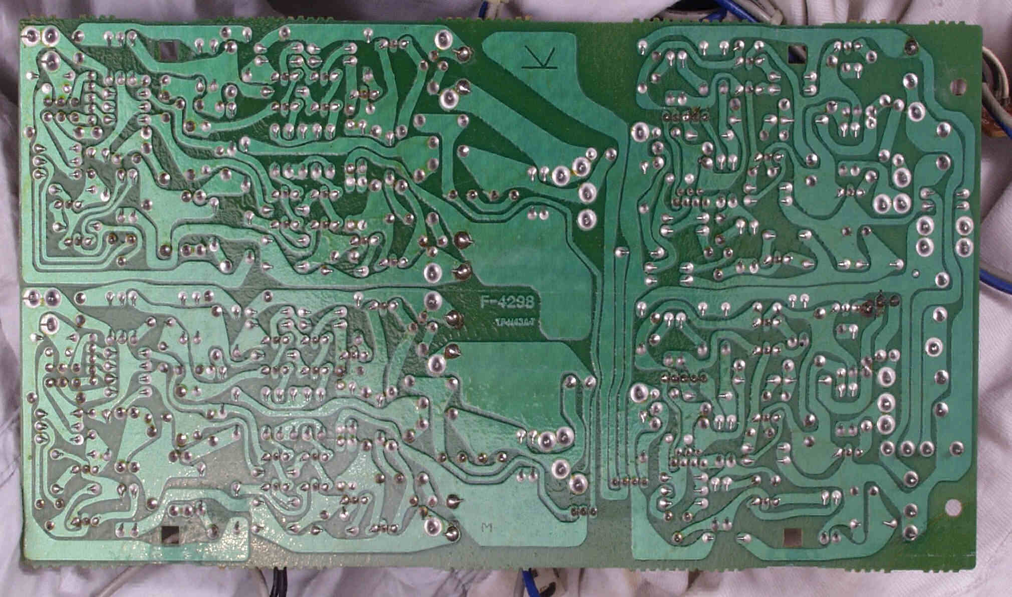 | C4D. 修理(半田補正)後 メイン・ドライブAMP基板裏 | ||||||||||||||||||||||||||||||||||||||||||||||||||||||
