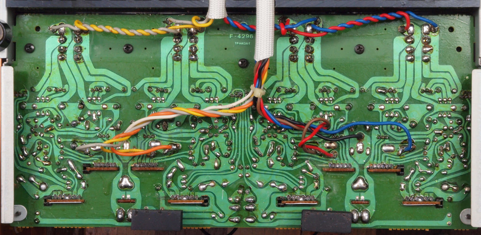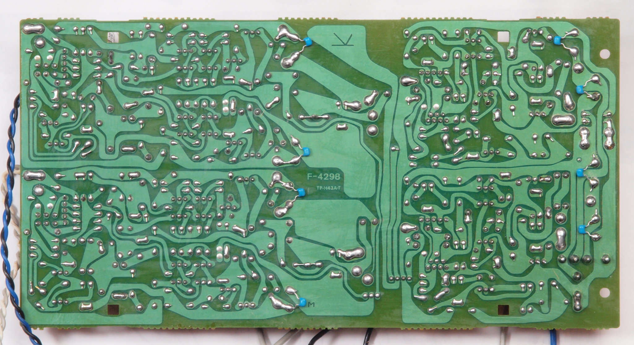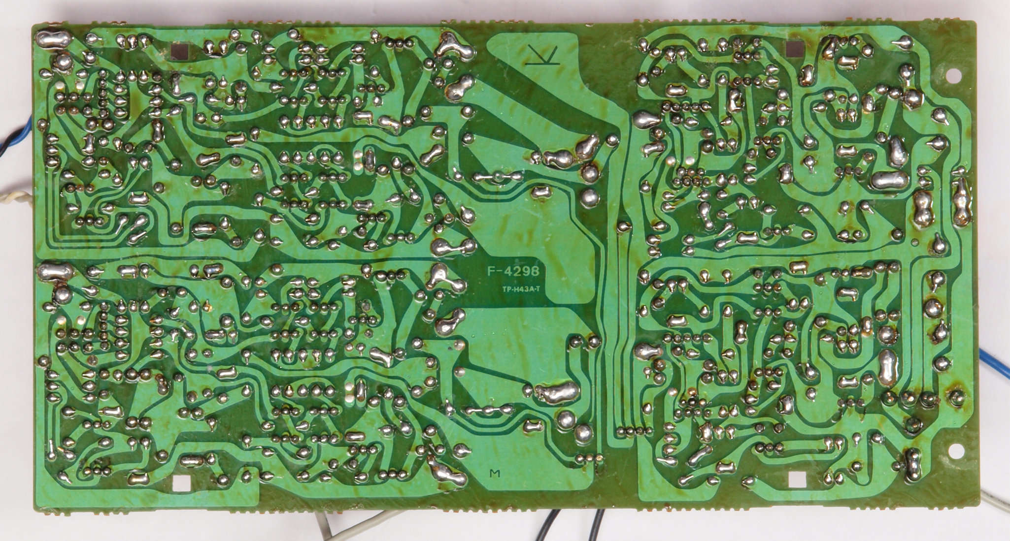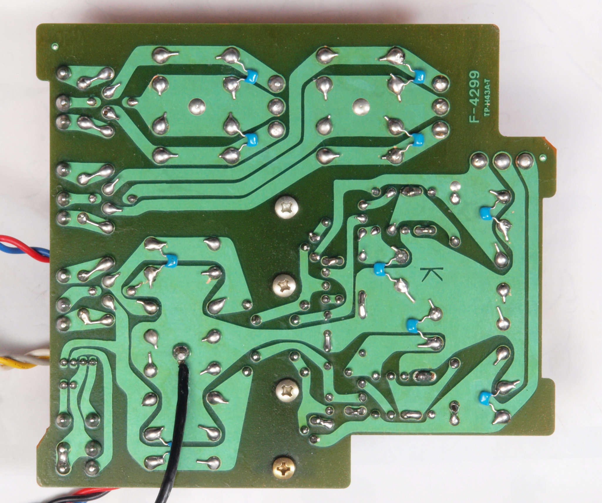 C442. 修理(半田補正)後 メイン・ドライブAMP基板裏。 半田を全部やり直す。