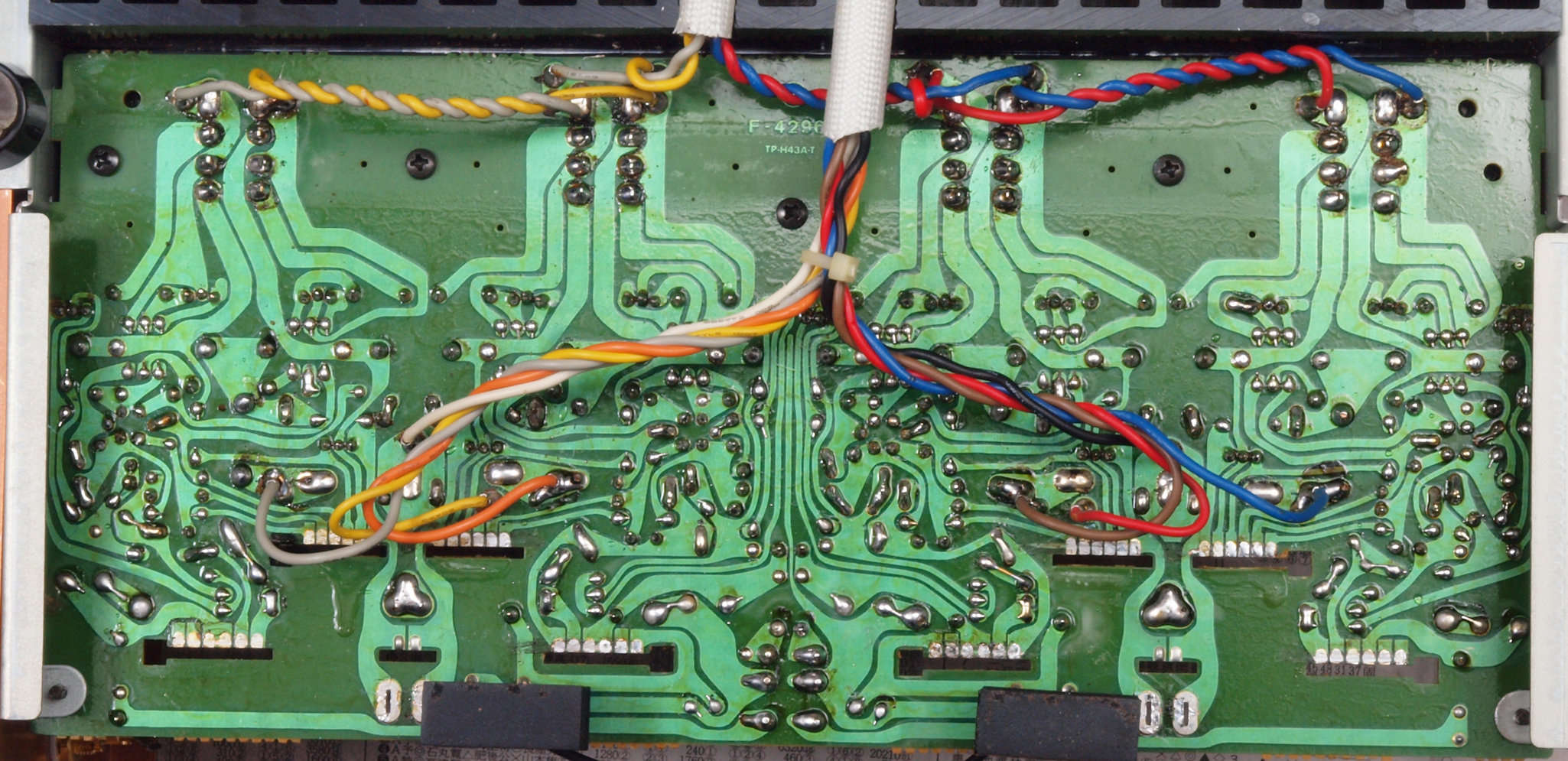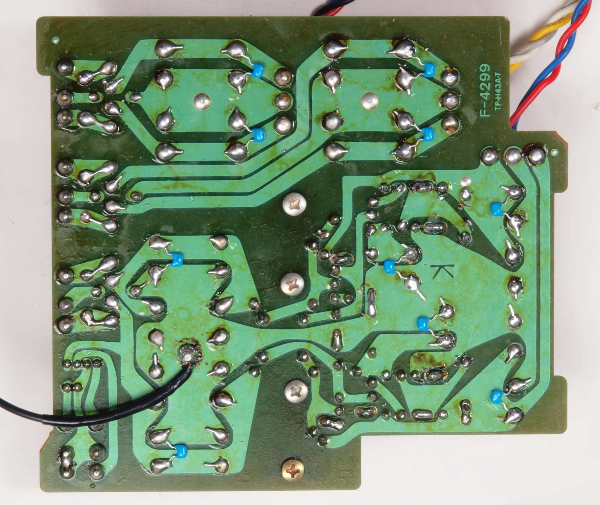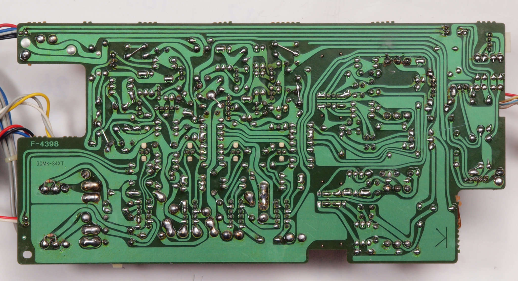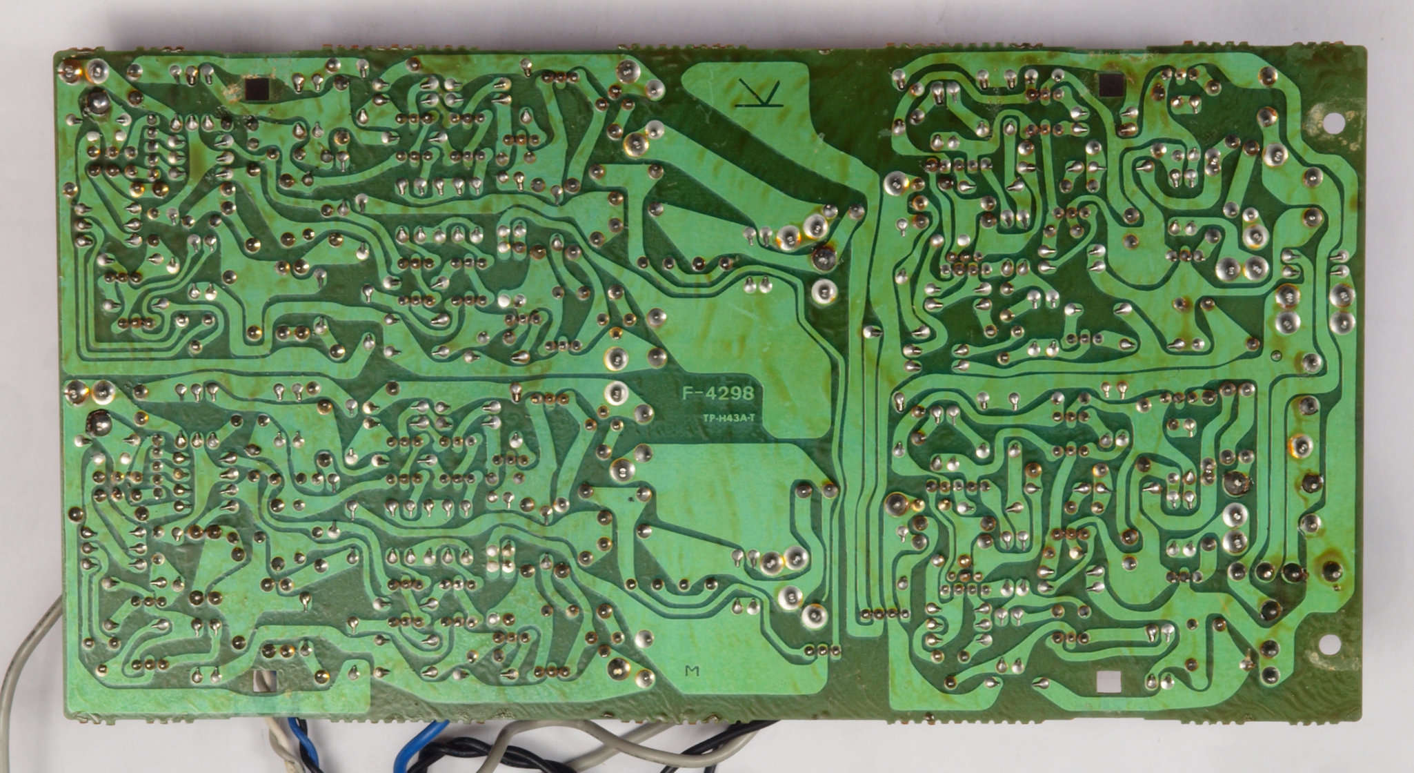C442. 修理(半田補正)後 メイン・ドライブAMP基板裏。 半田を全部やり直す。
