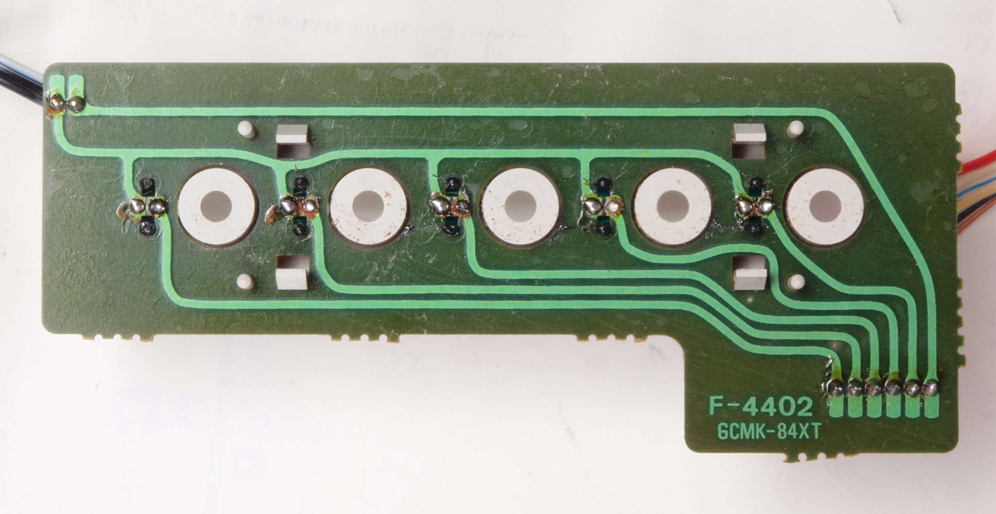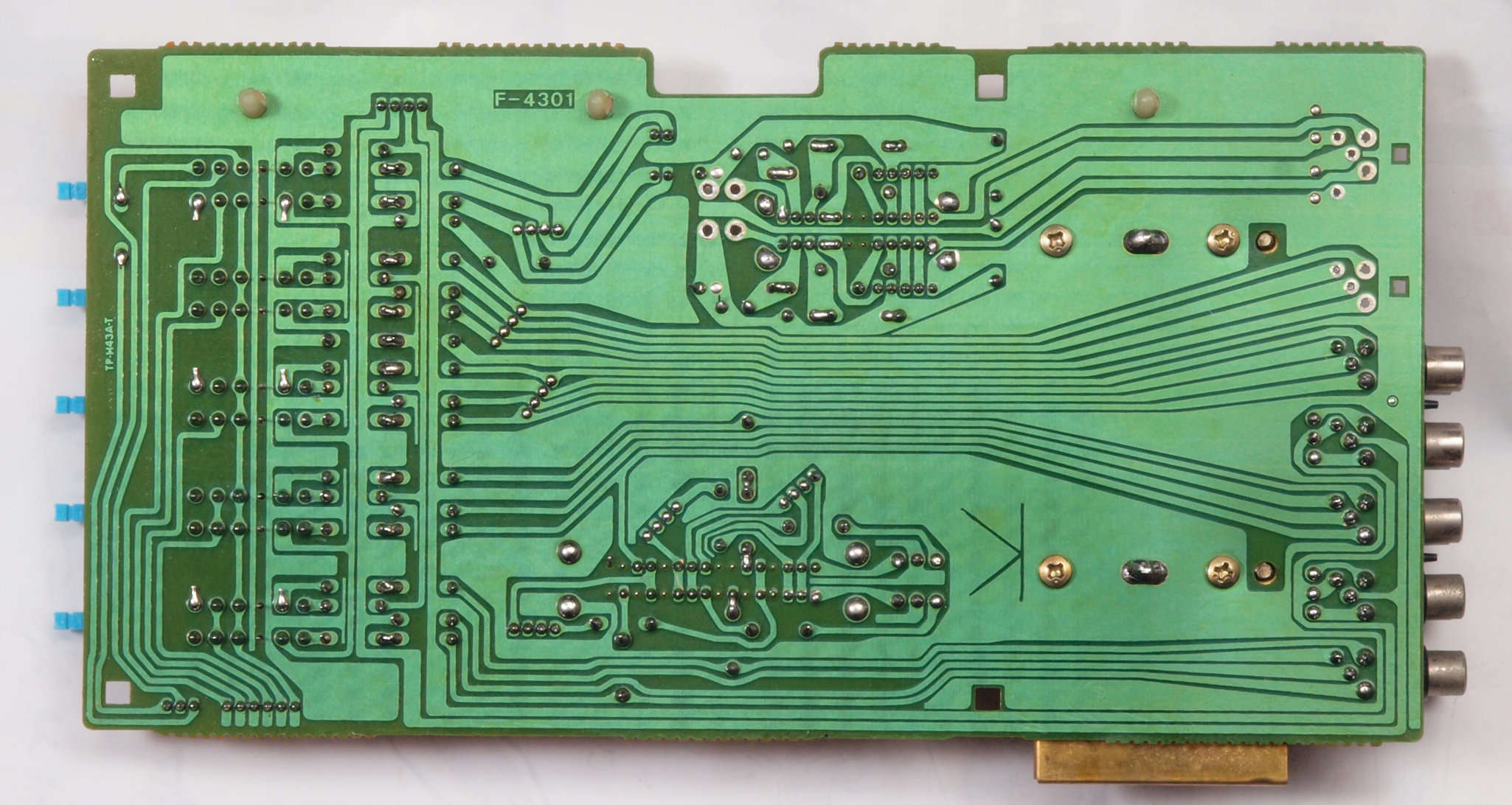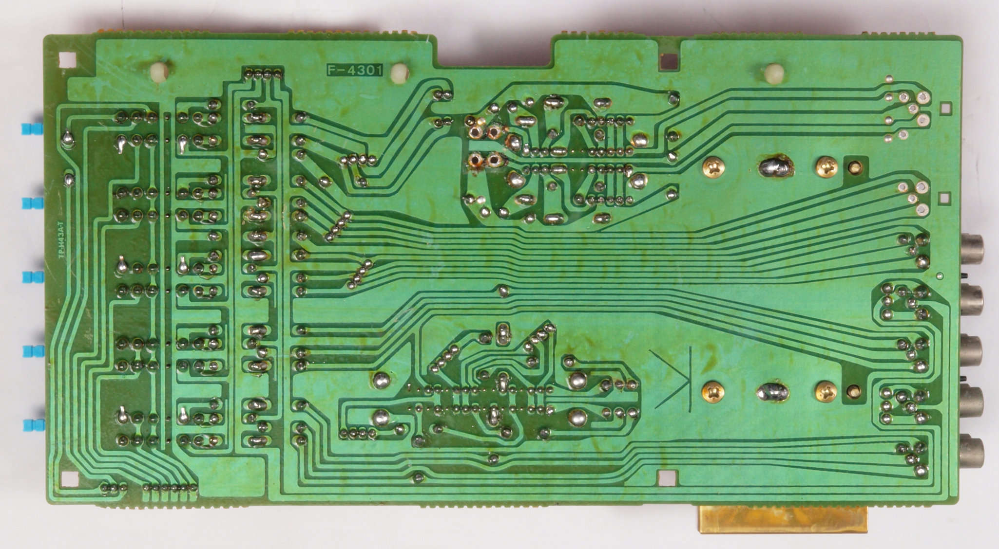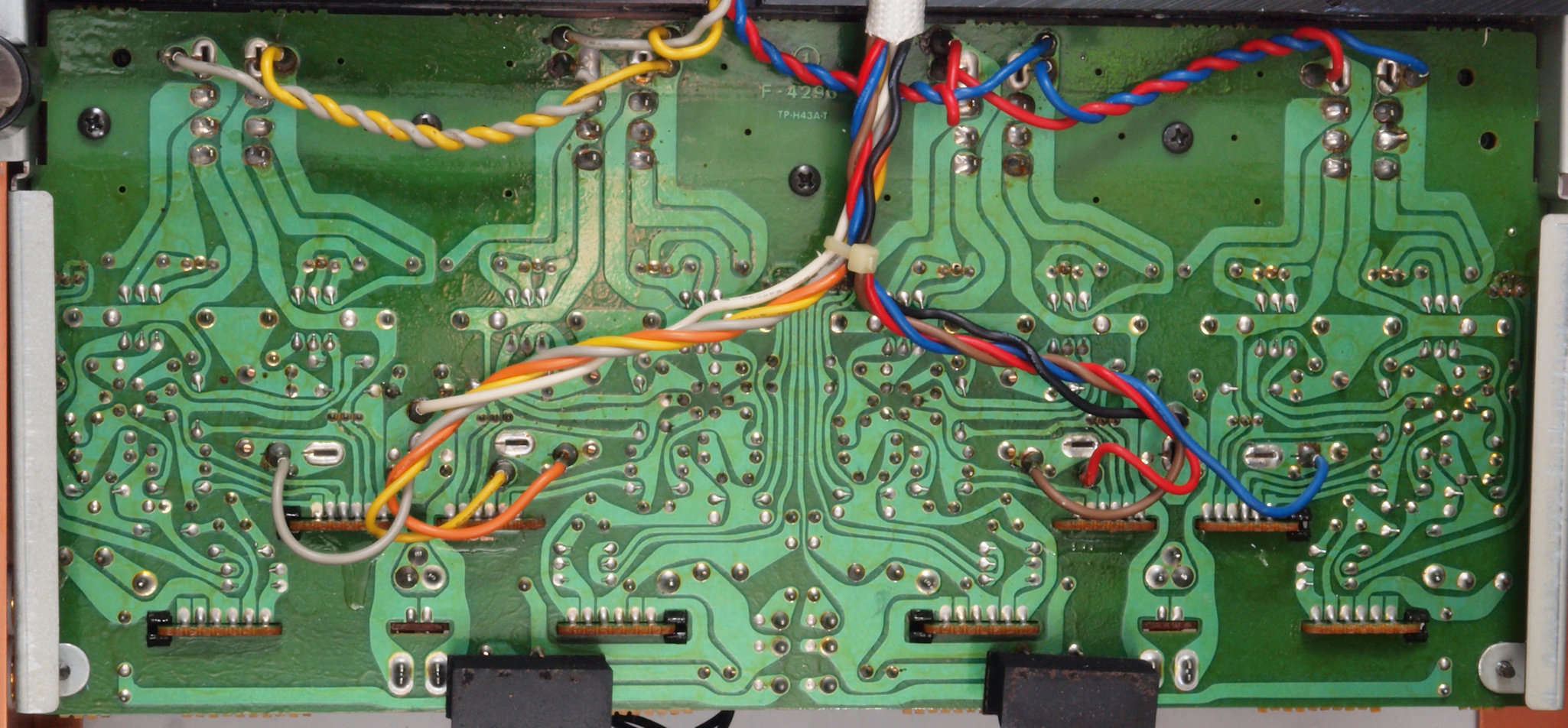 C442. 修理(半田補正)後 メイン・ドライブAMP基板裏。 半田を全部やり直す。