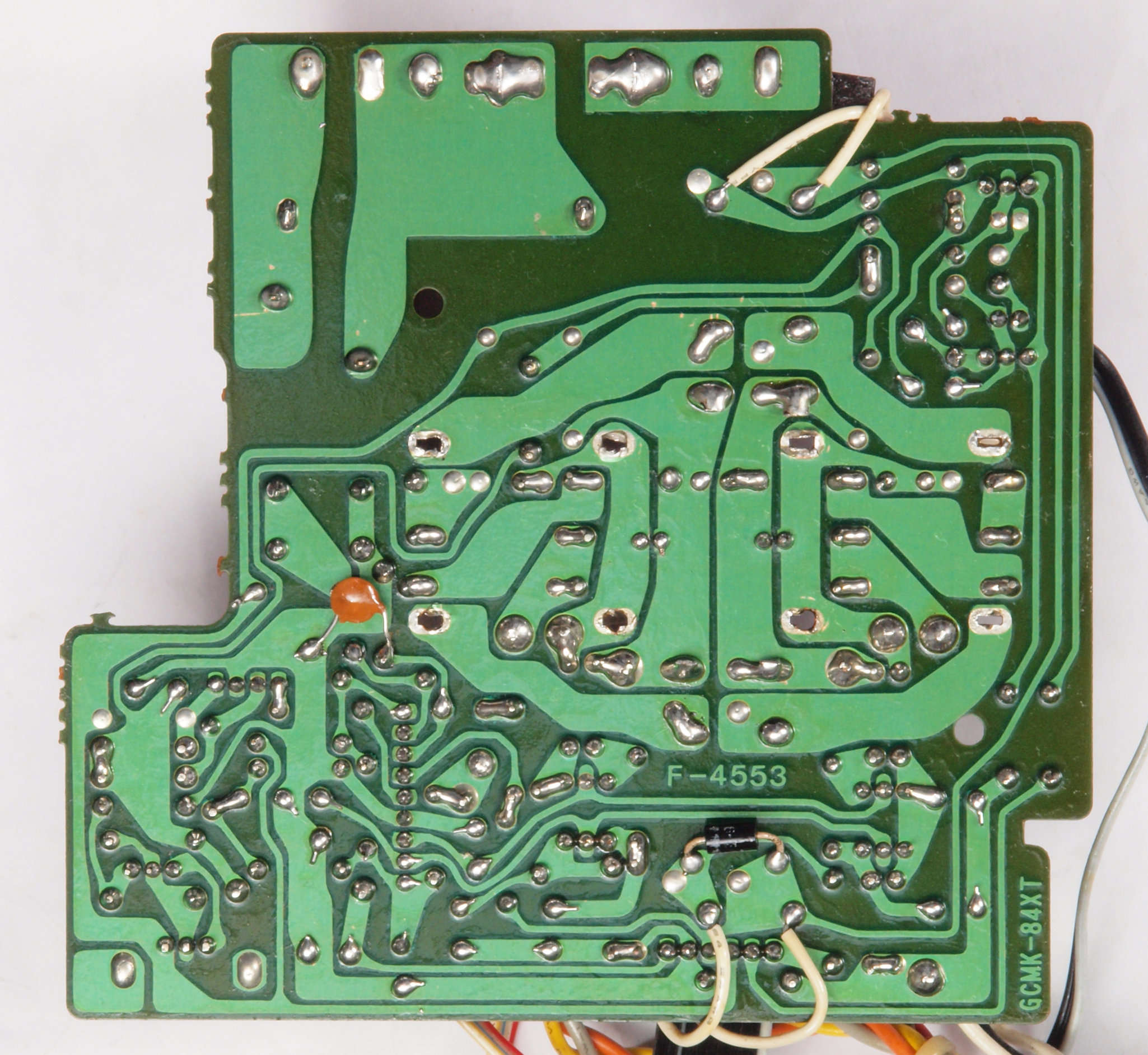 C34. 修理(半田補正)後 RLプロテクト基板裏。 半田を全部やり直す。