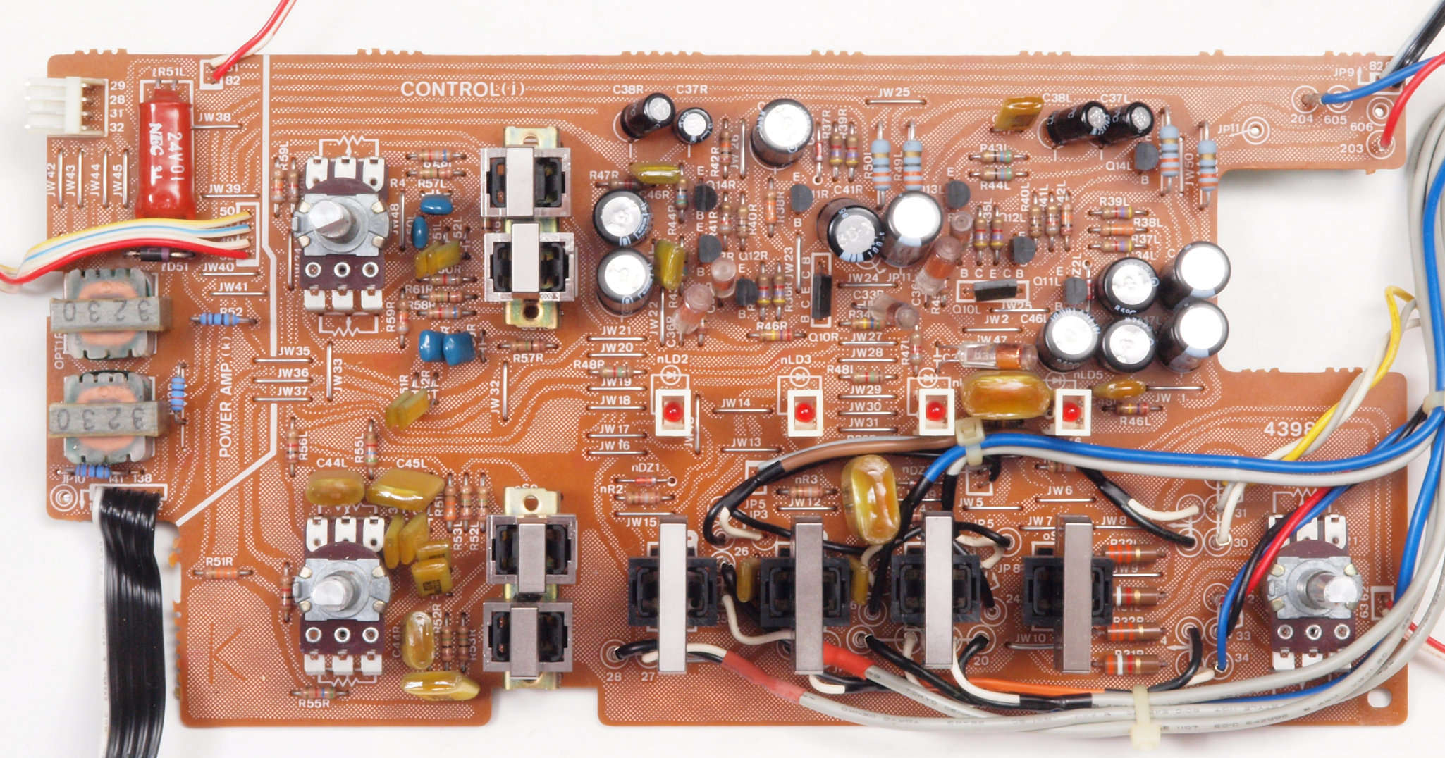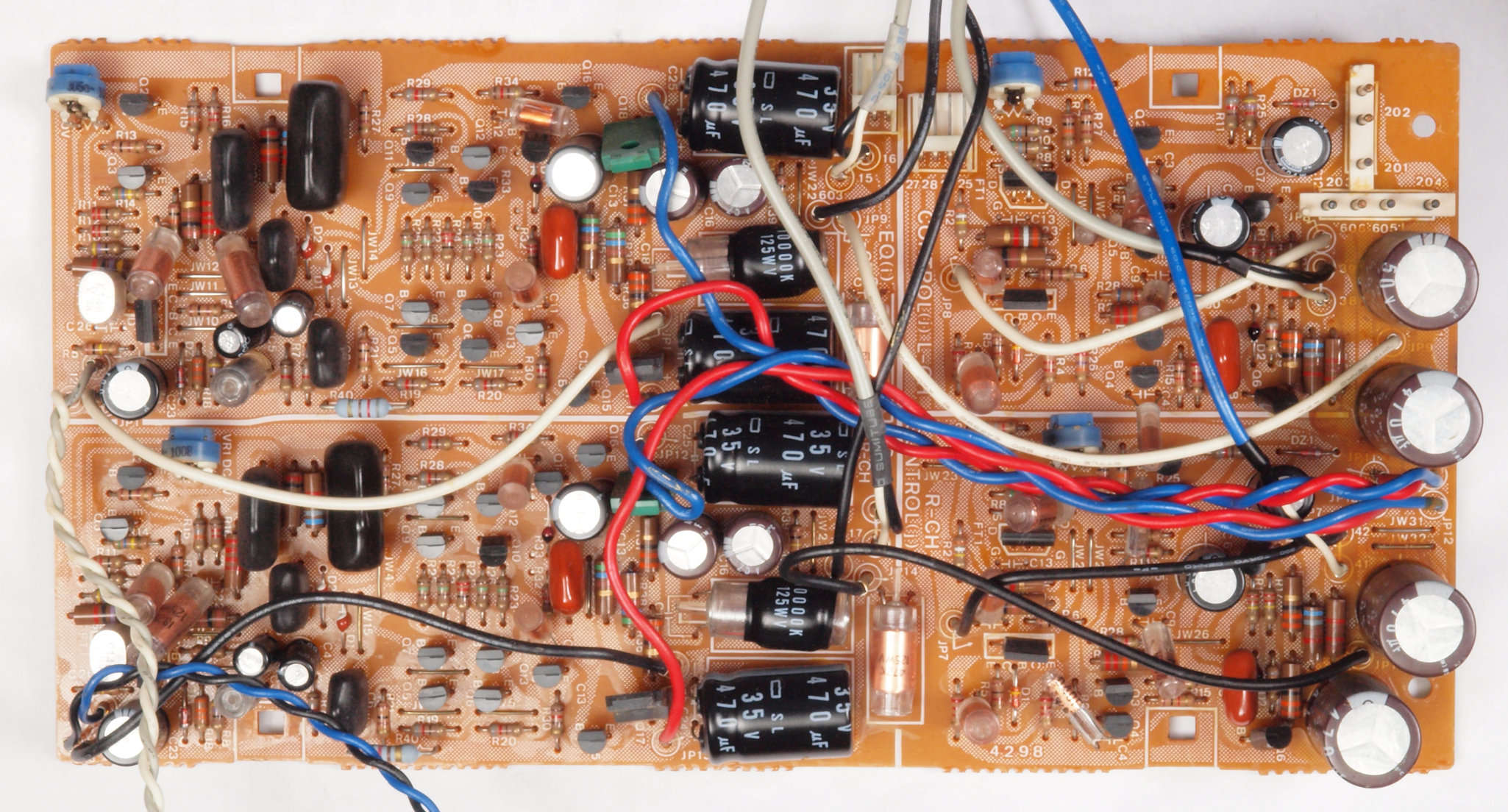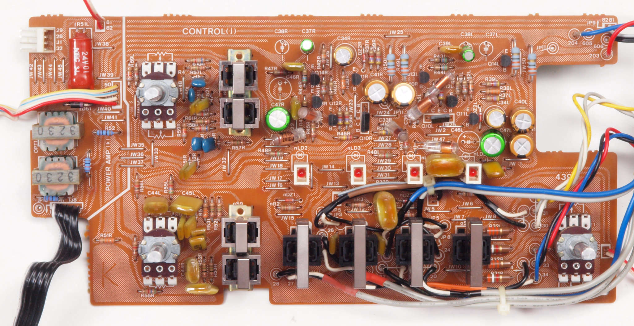 C42. 修理後 メイン・ドライブAMP基板 半固定VR4個、電解コンデンサー10個交換