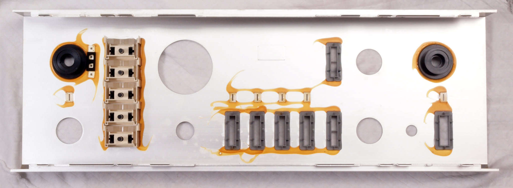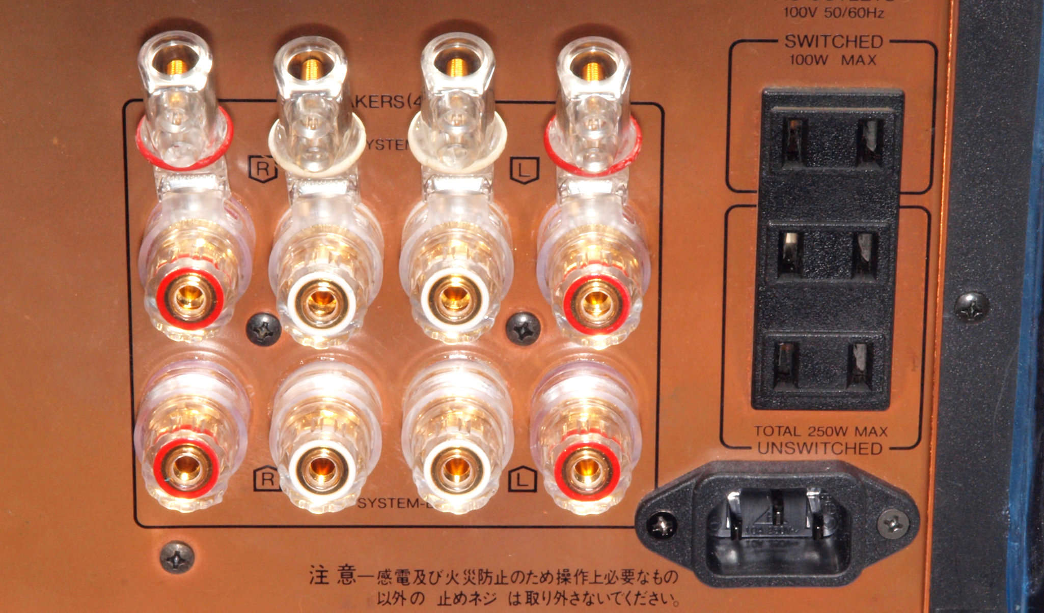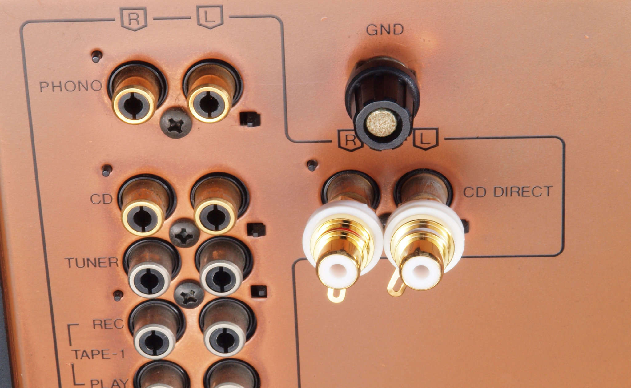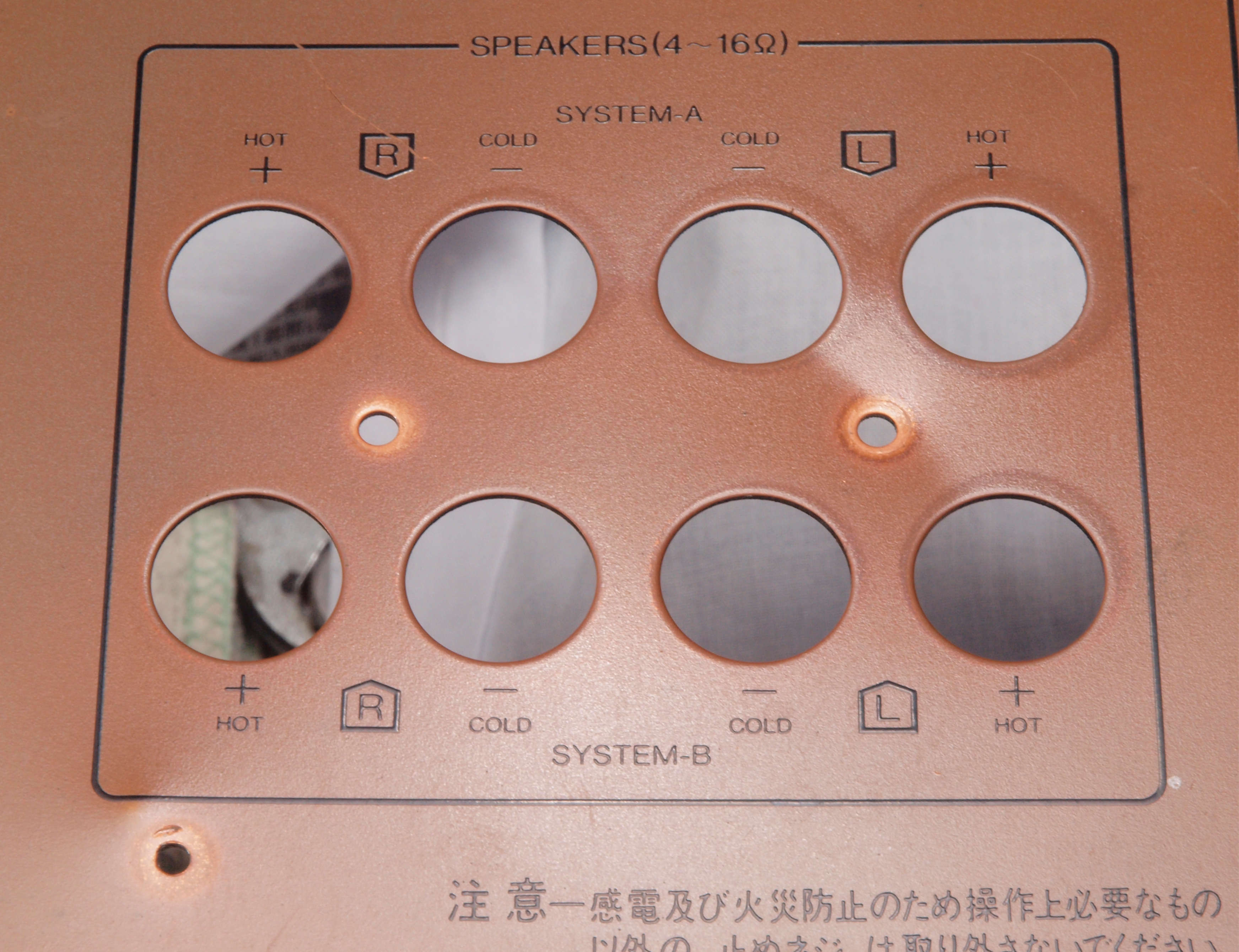 A19. 点検中 入出力RCA端子郡。 CD Direct、Phono、CD入力をテフロン絶縁RCA端子に交換。 WBT−0201は定価で工賃込みで交換可能。