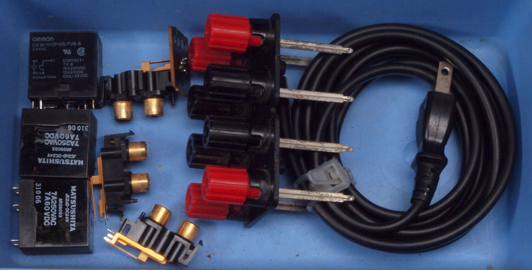 右=交換する接点容量10Aのリレー、8Ω出力だと800W定格