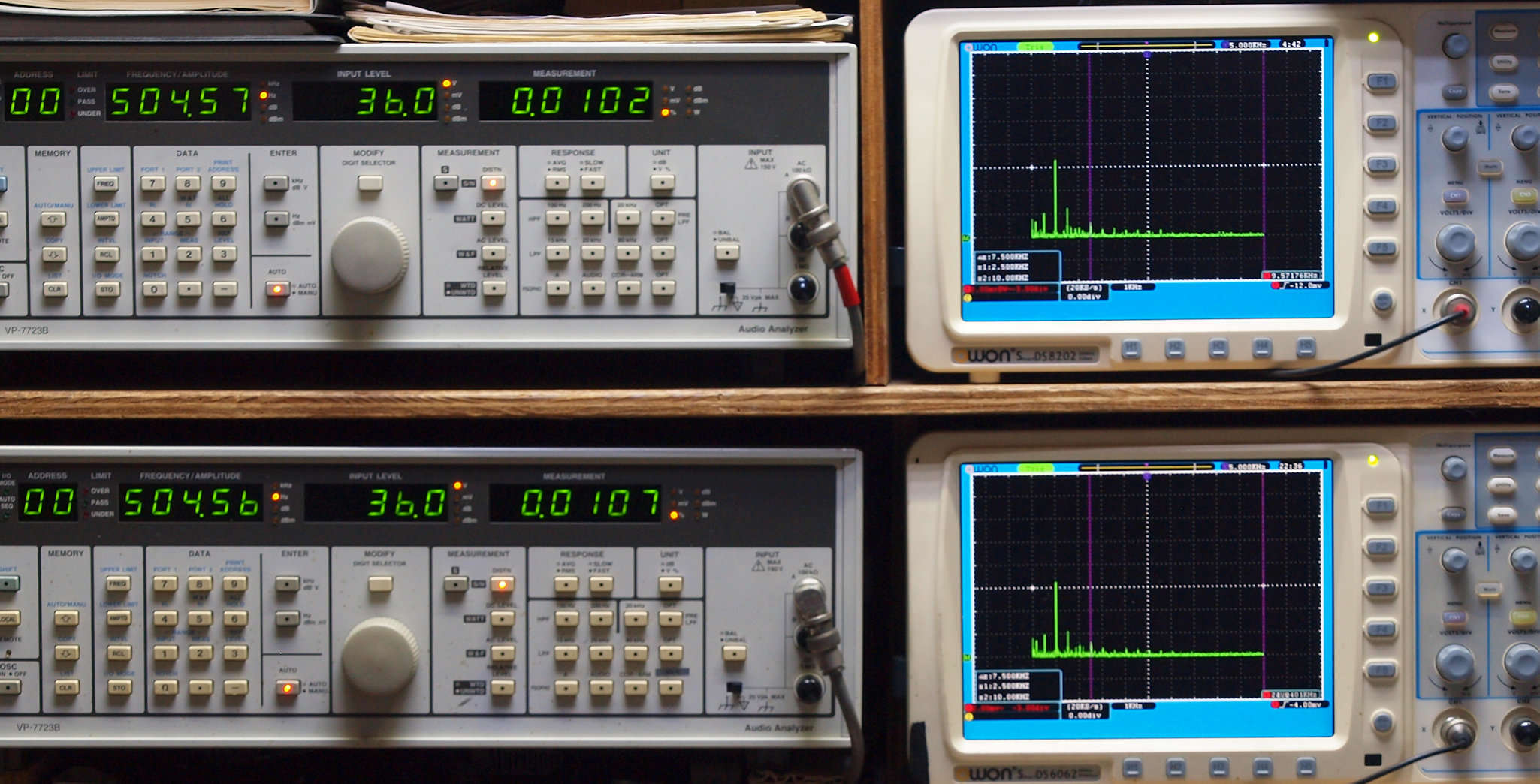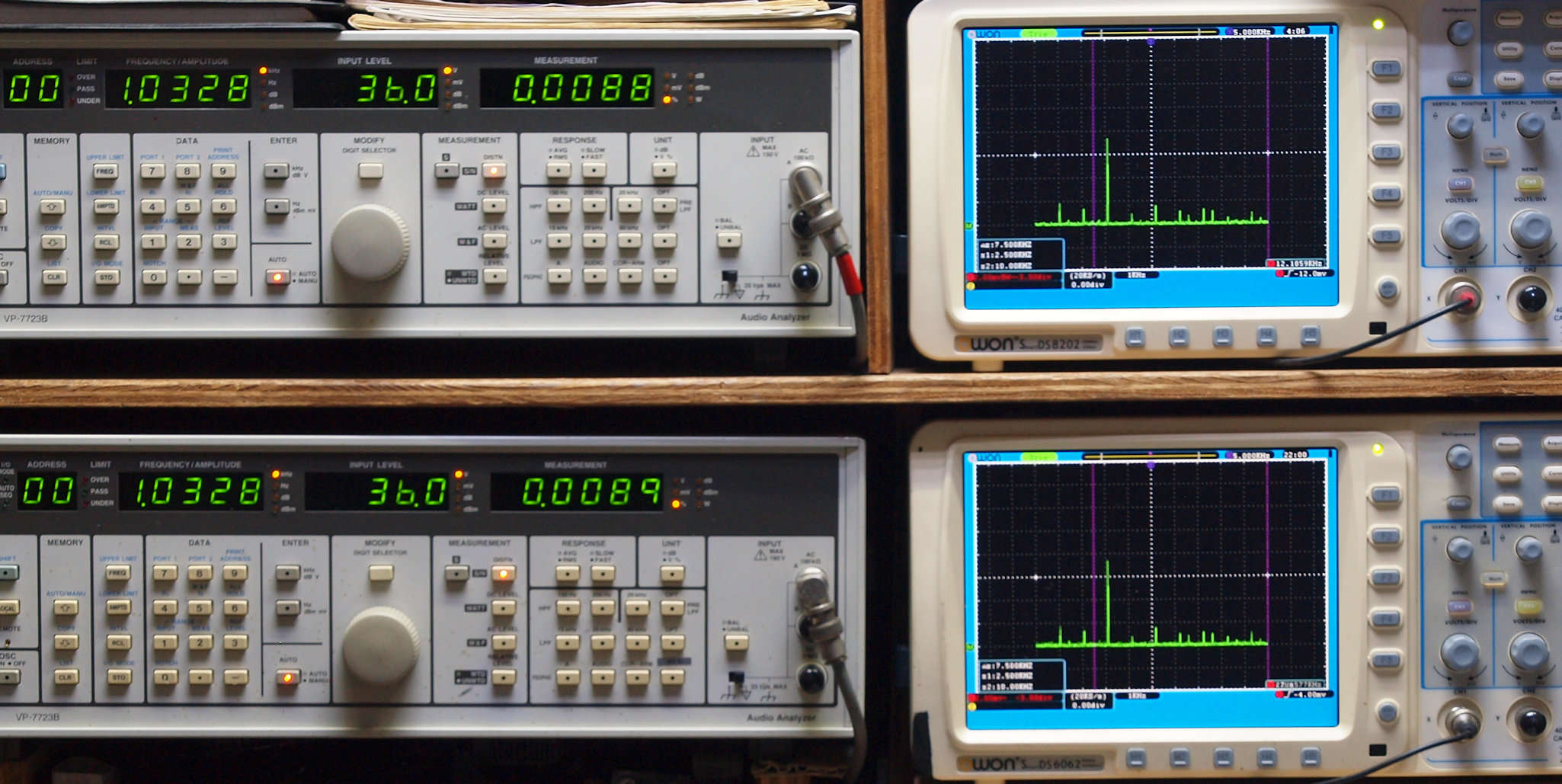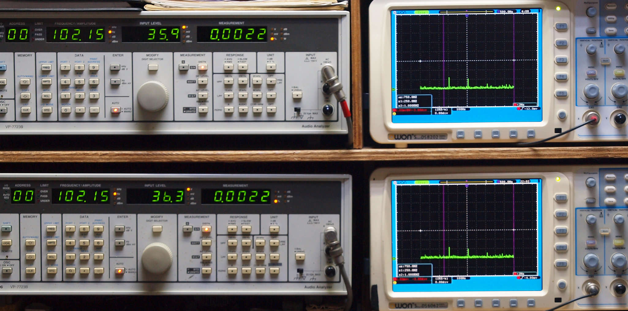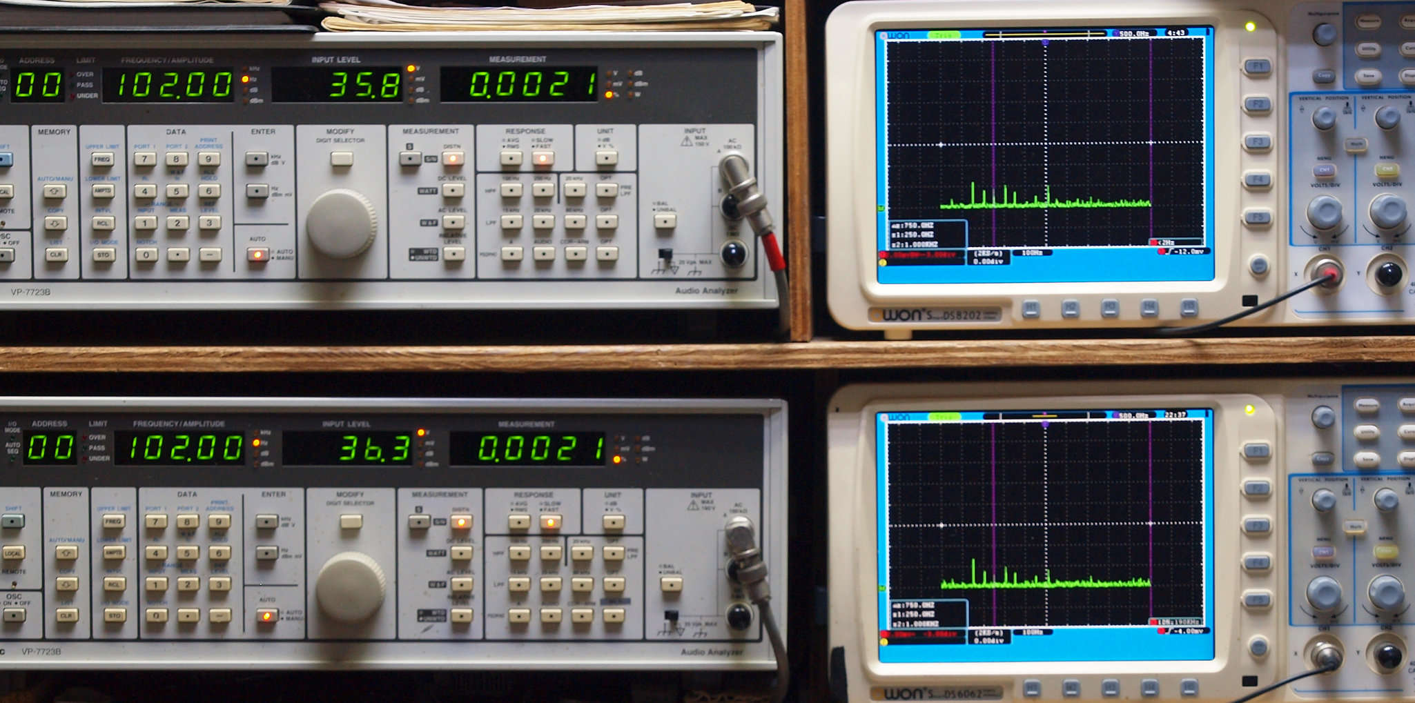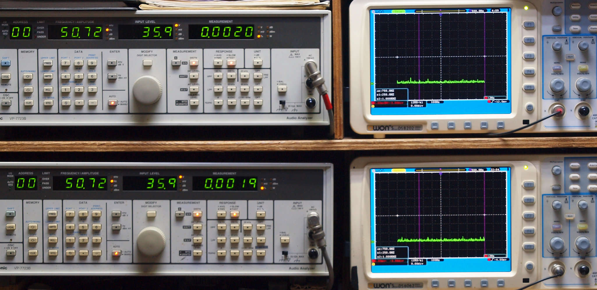 よって、ダイアル設定出力レベルより低くなります。測定機器の仕様や整備の様子はこちら、「VP−7723B」「VP−7201A」。 FFT画面の見方はこちら。