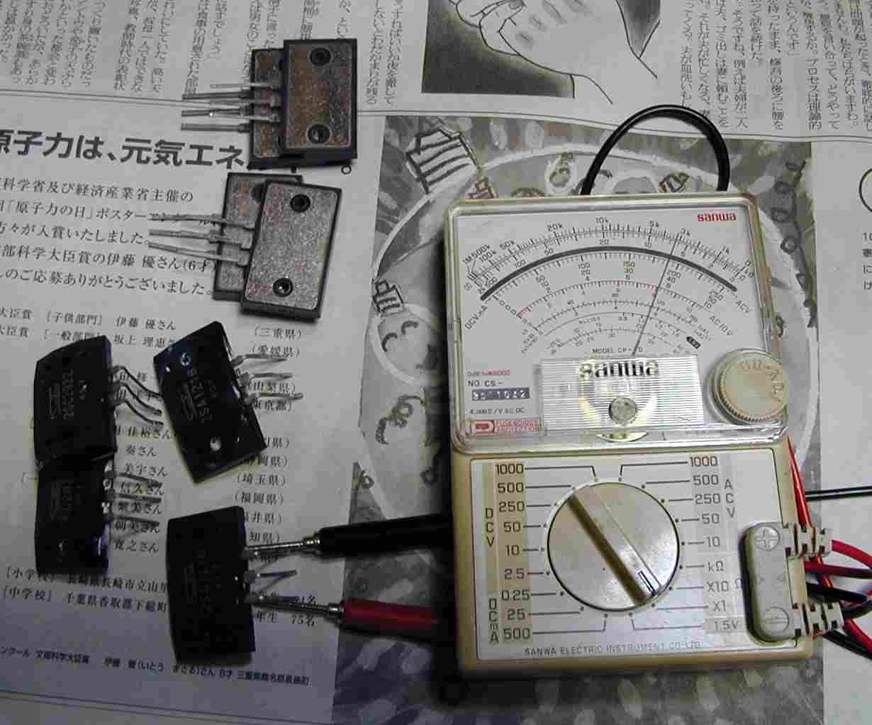 3. 終段TR(トランジスター)、上新品、下短絡したもの。