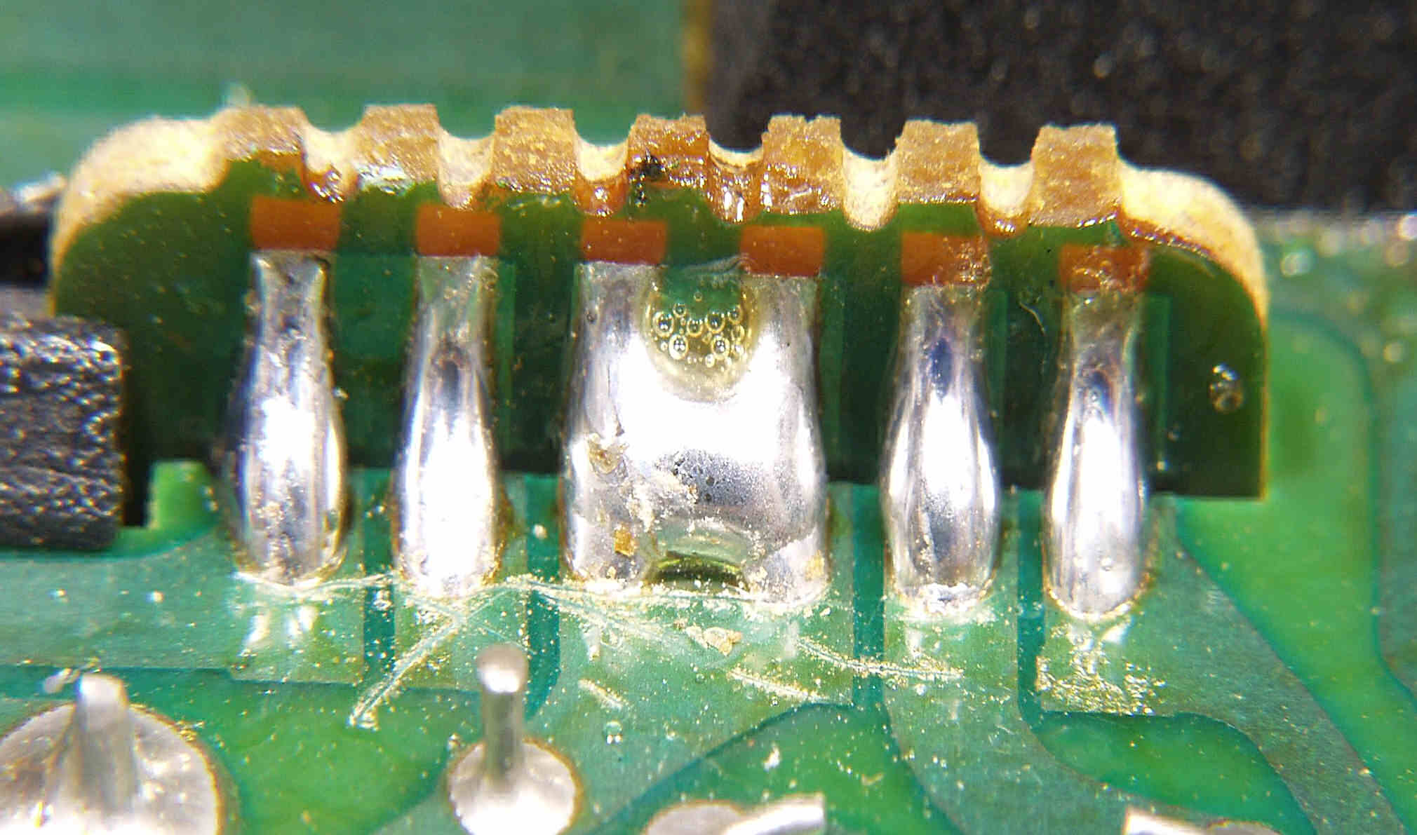 | C−2A. 修理前 L側 メインAMP基板半田不良ケ所、基板を押して、写真を撮っているので、こんなに空いていない | ||||||||||||||||||||||||||||||||||||||||||||||||||||||