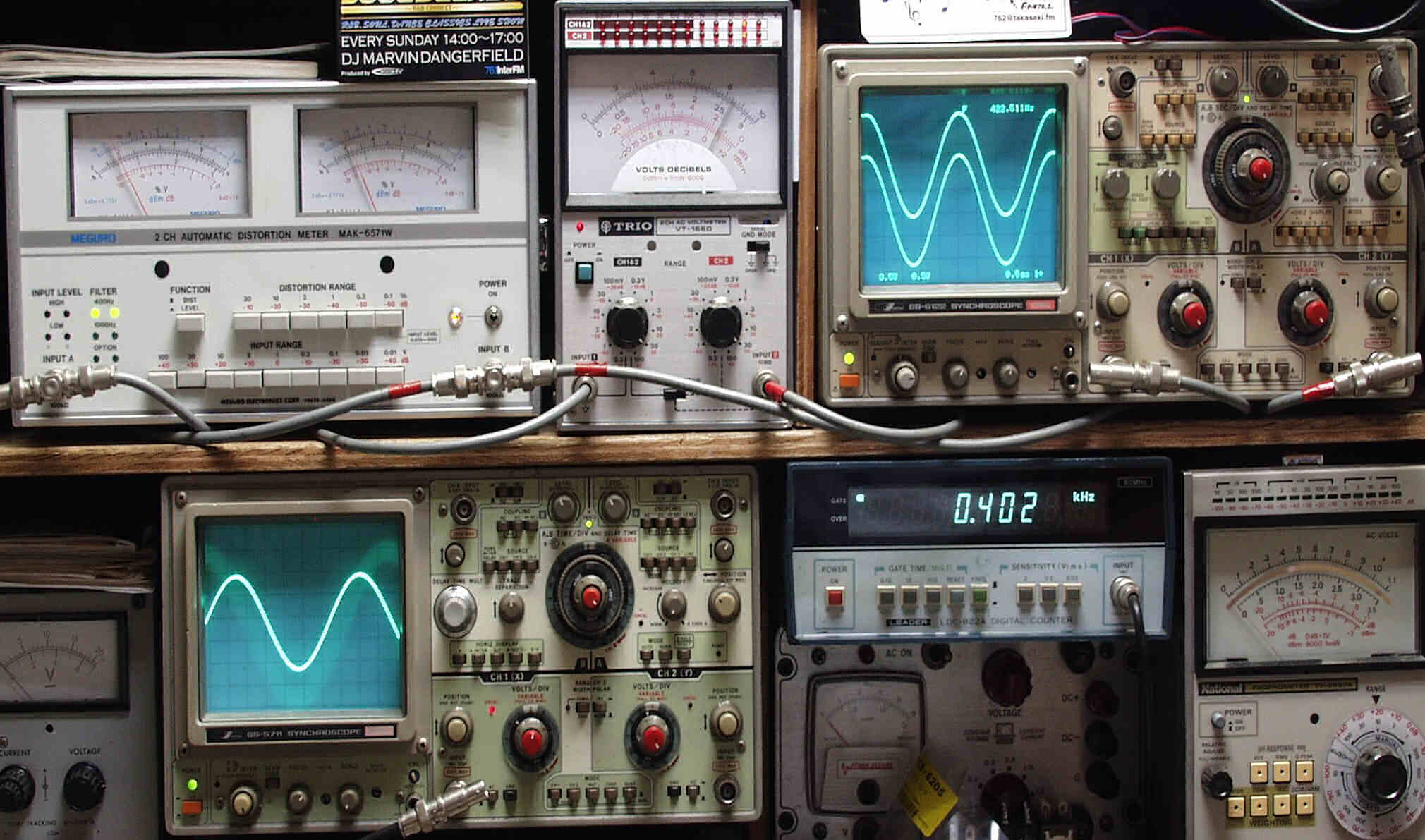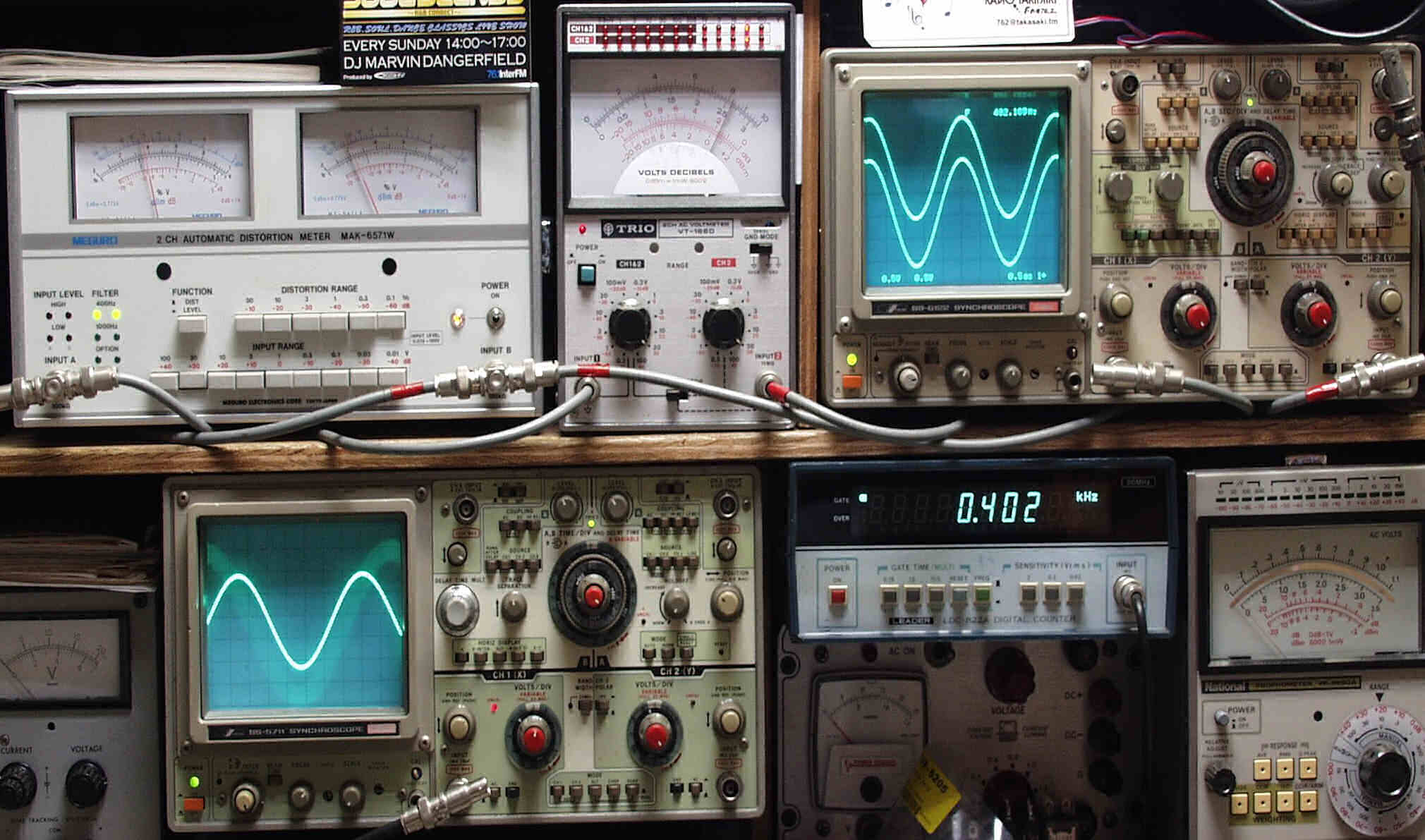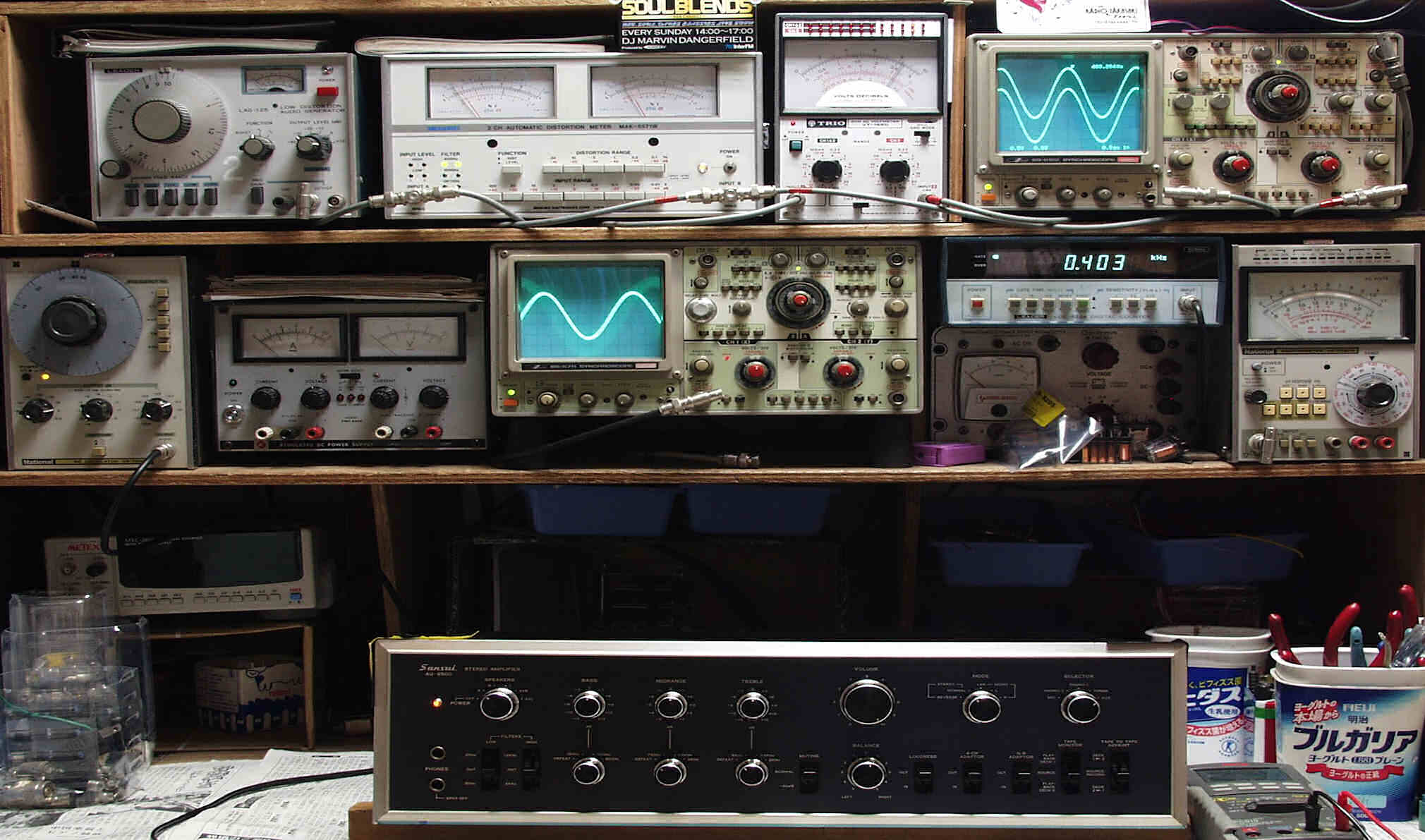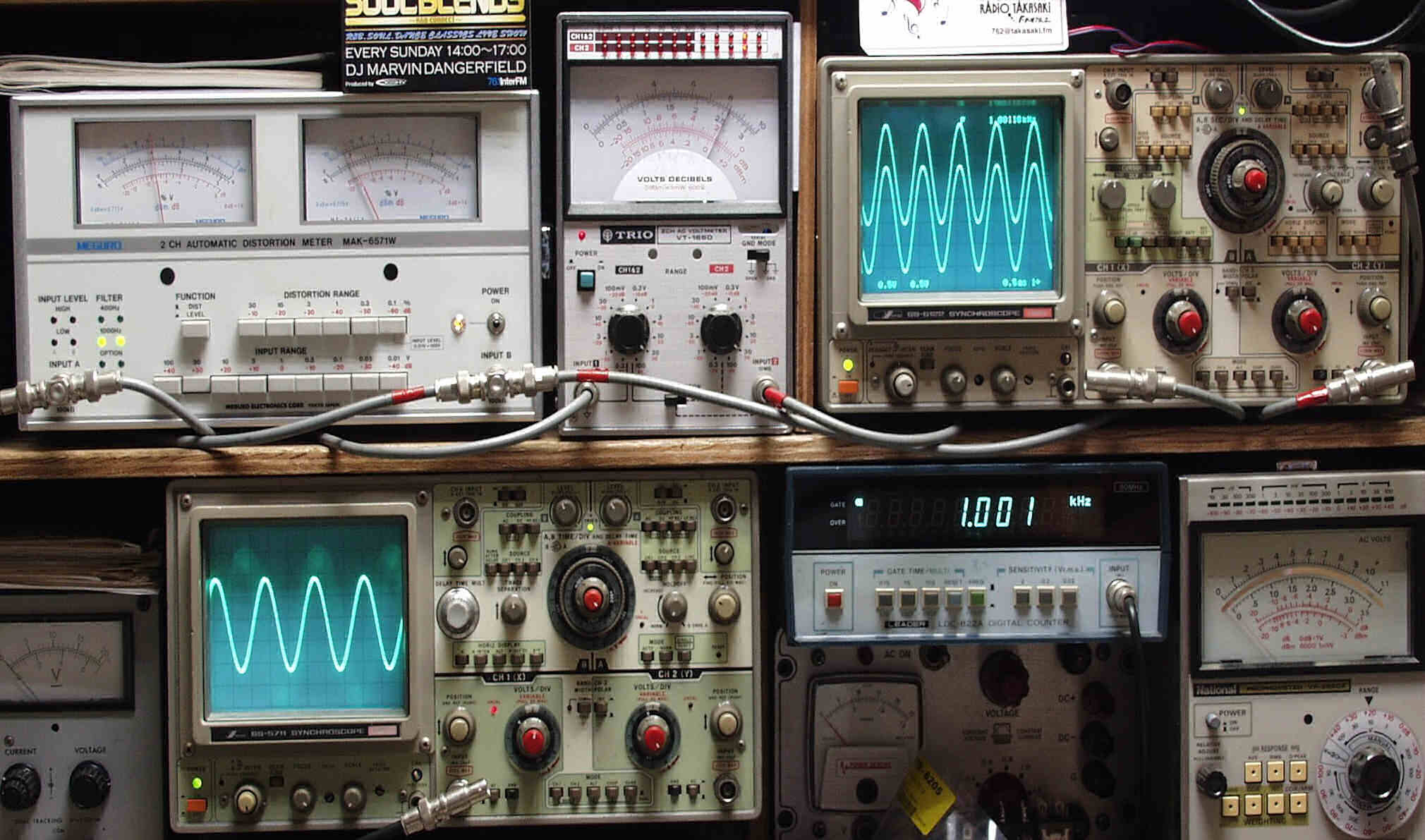 上左オーディオ発振器より400HZ・1KHZの信号を出す(歪み率=約0.003%)