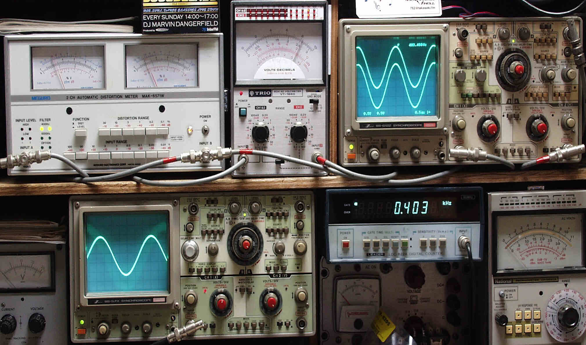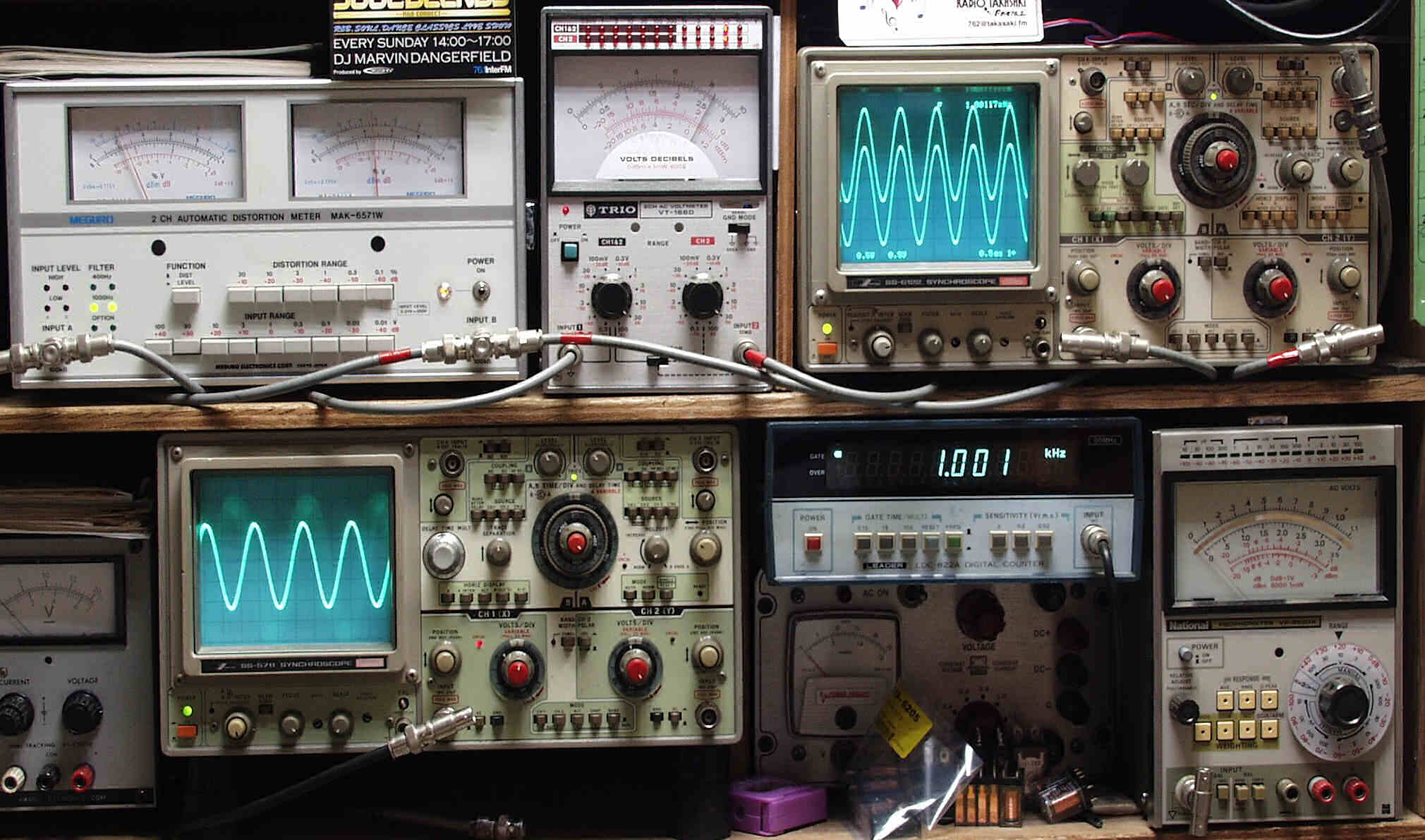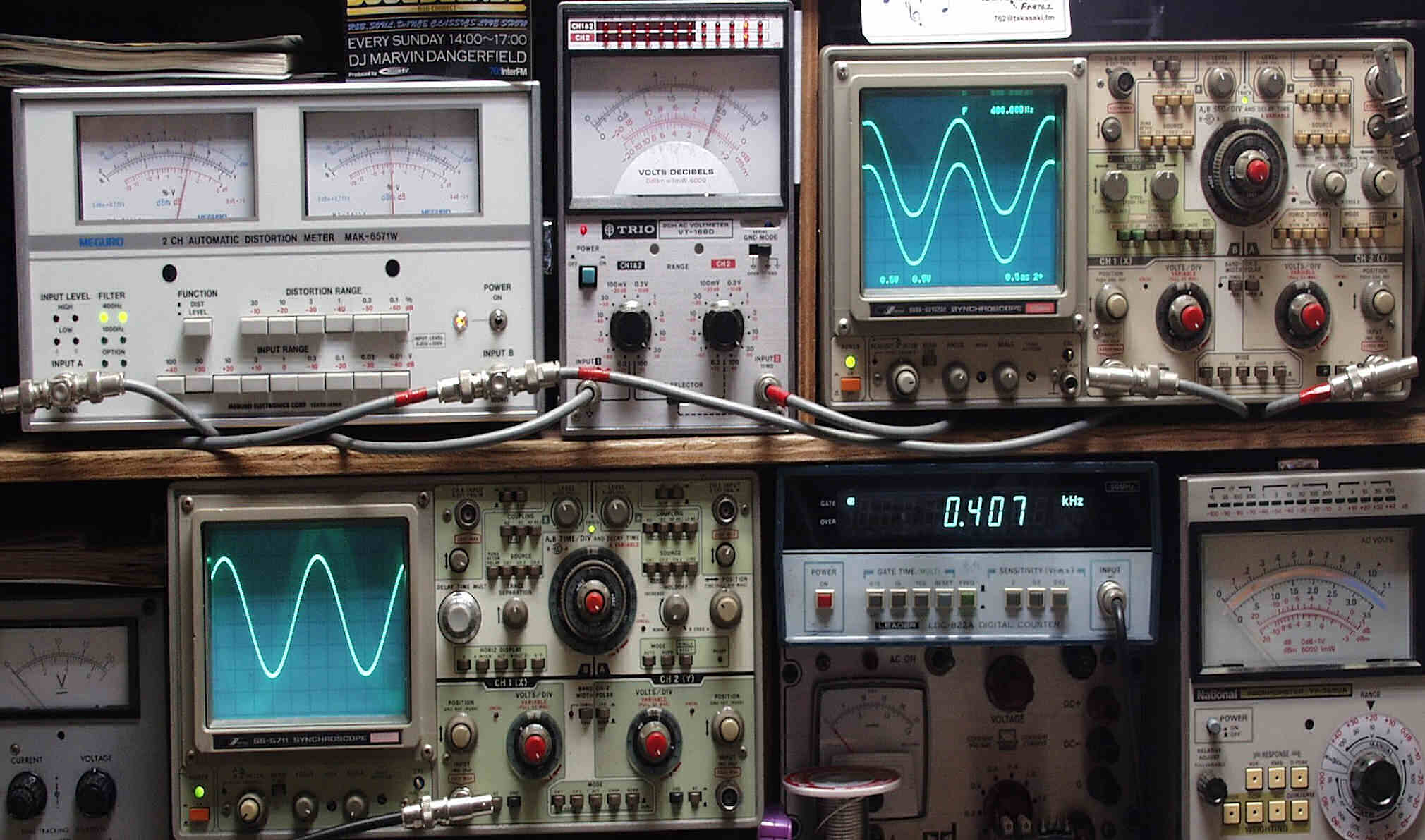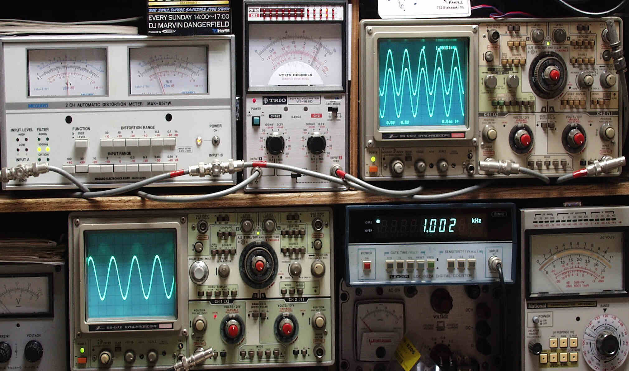 上左オーディオ発振器より400HZ・1KHZの信号を出す(歪み率=約0.003%)