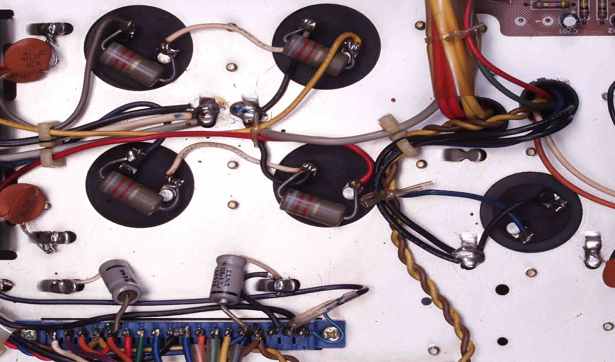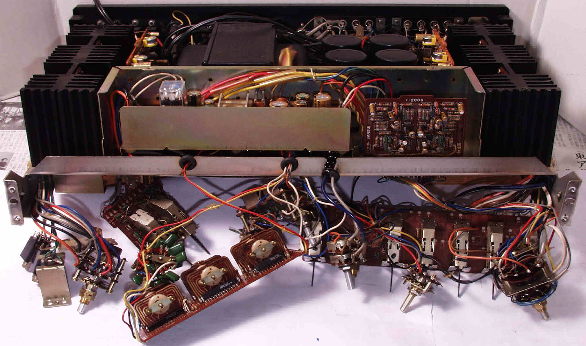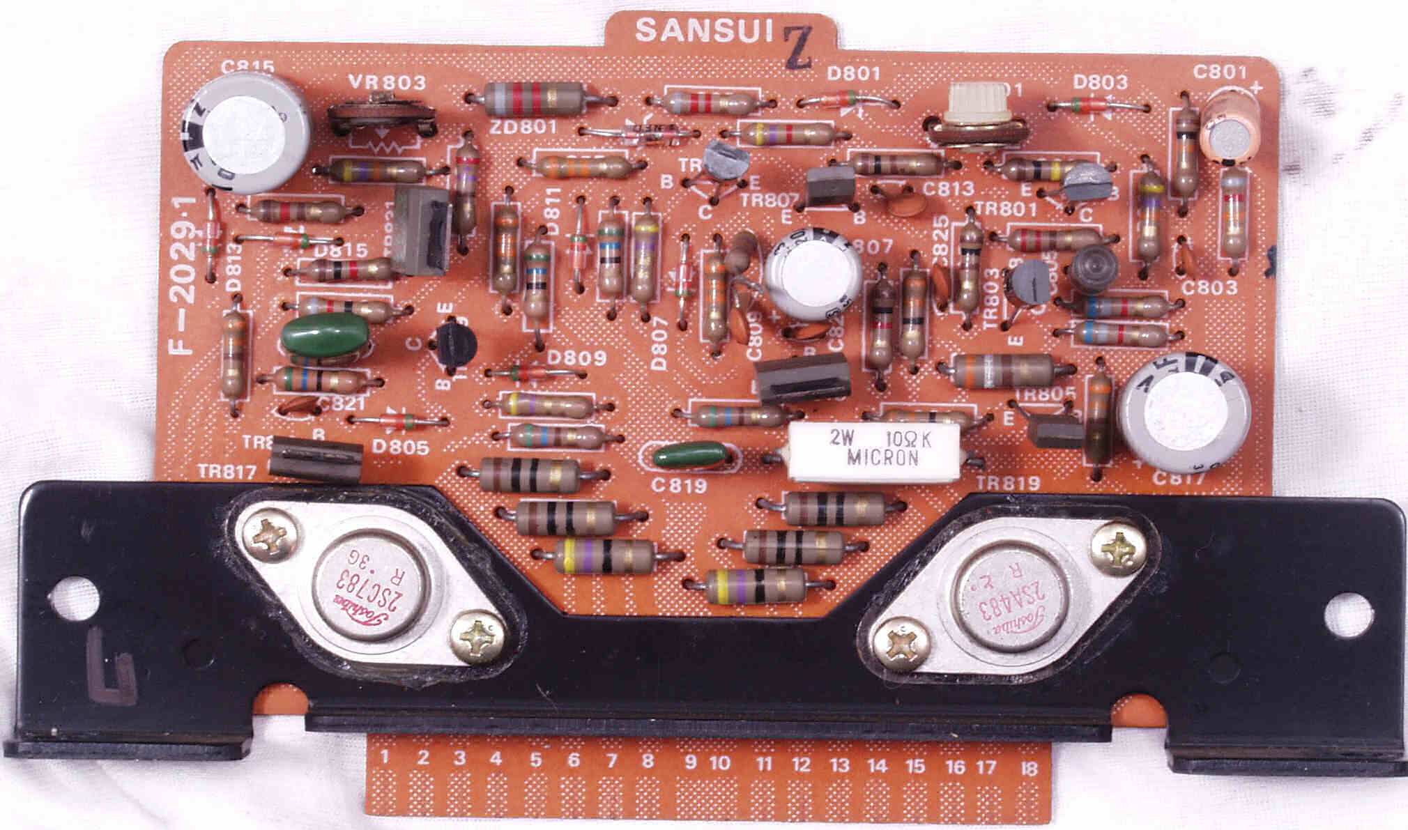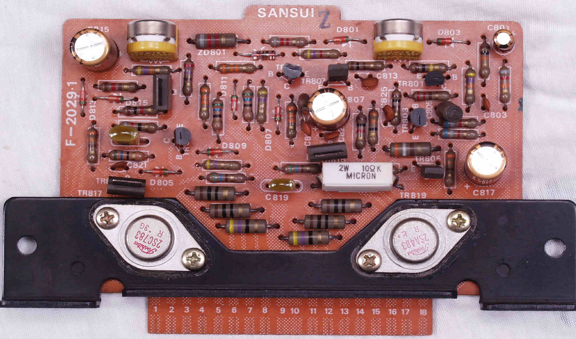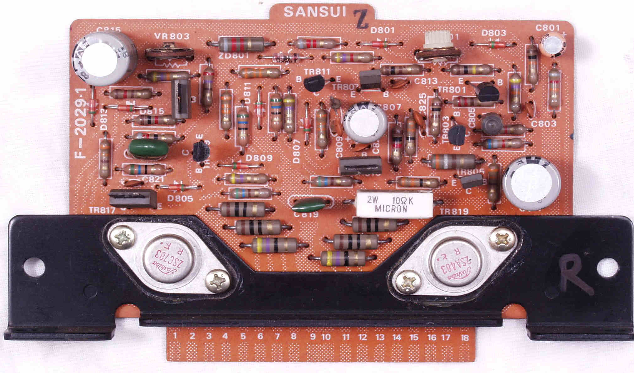 C−2B. 修理後 R側終段基板 TR(トランジスター)2個 半固定VR2個 電解コンデンサー4個 フイルムコンデンサー2個交換