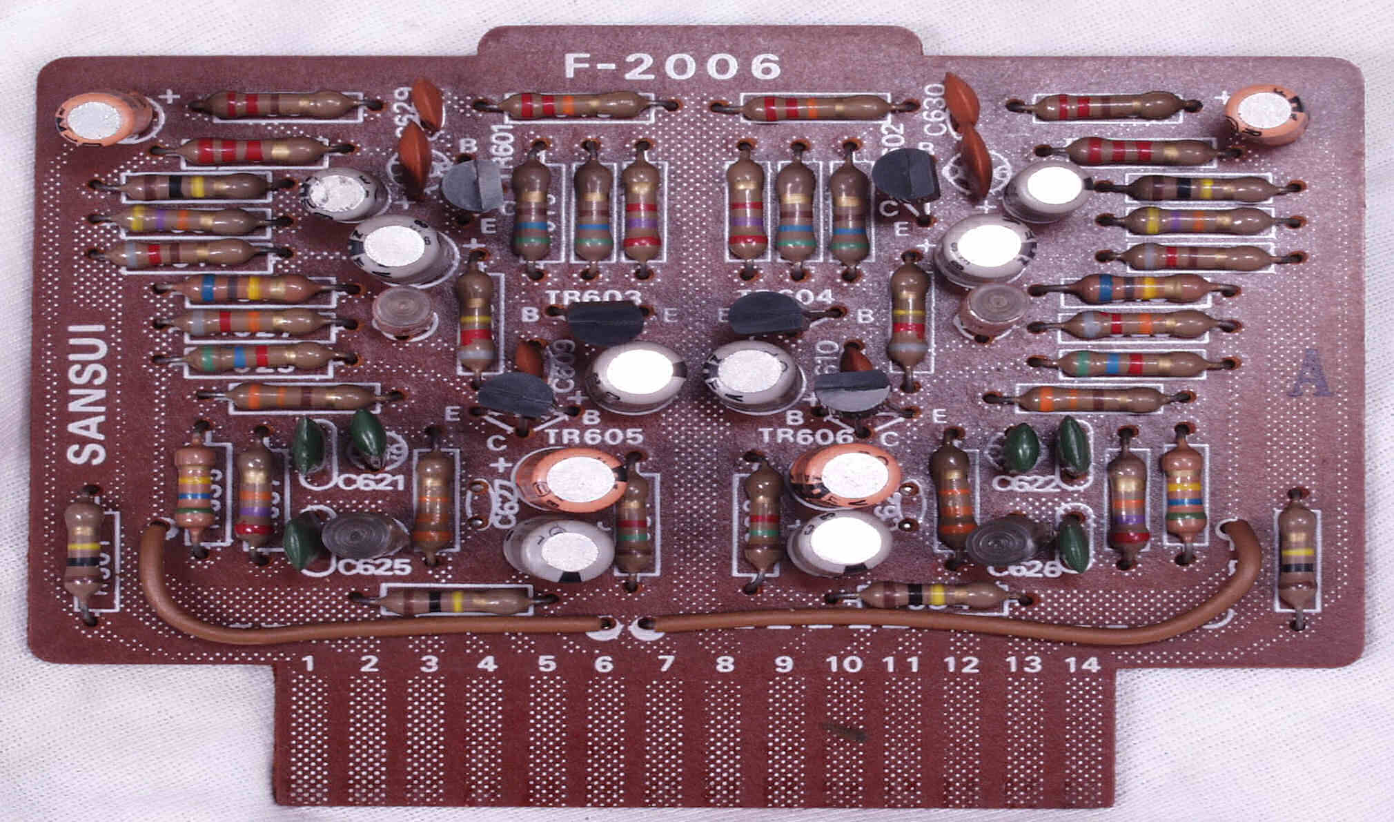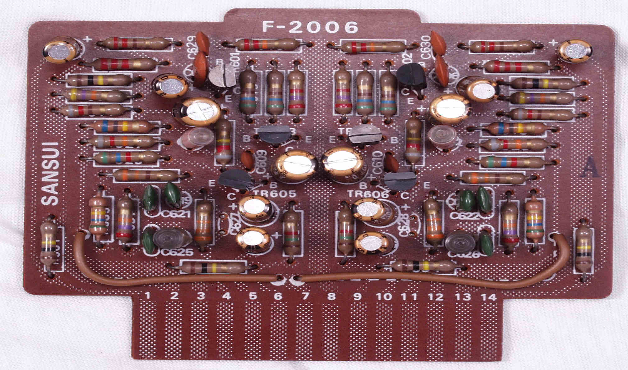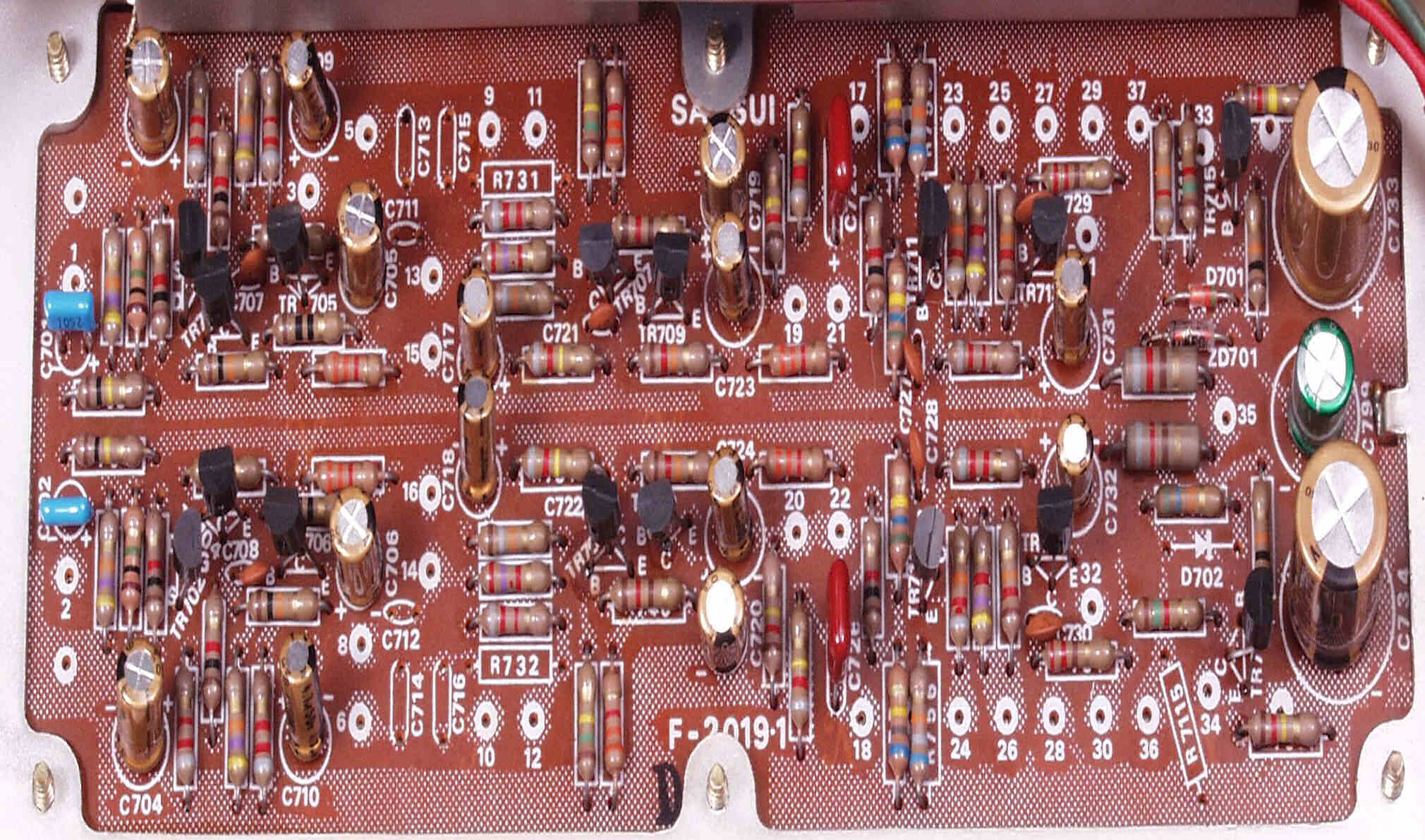 C6B. 修理後 EQ−AMP基板  TR(トランジスター)4個、電解コンデンサー12個交換
