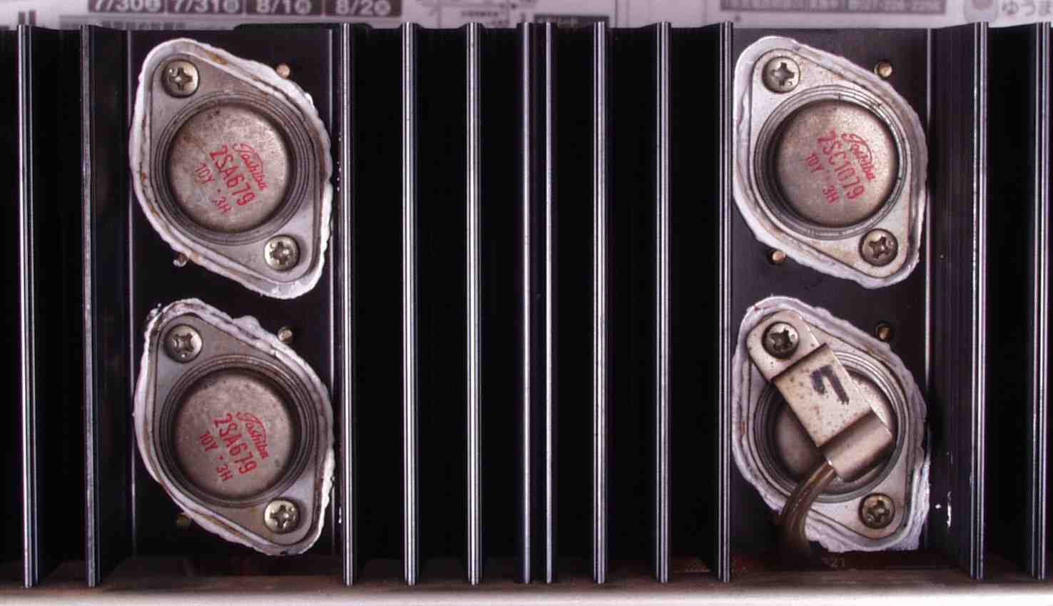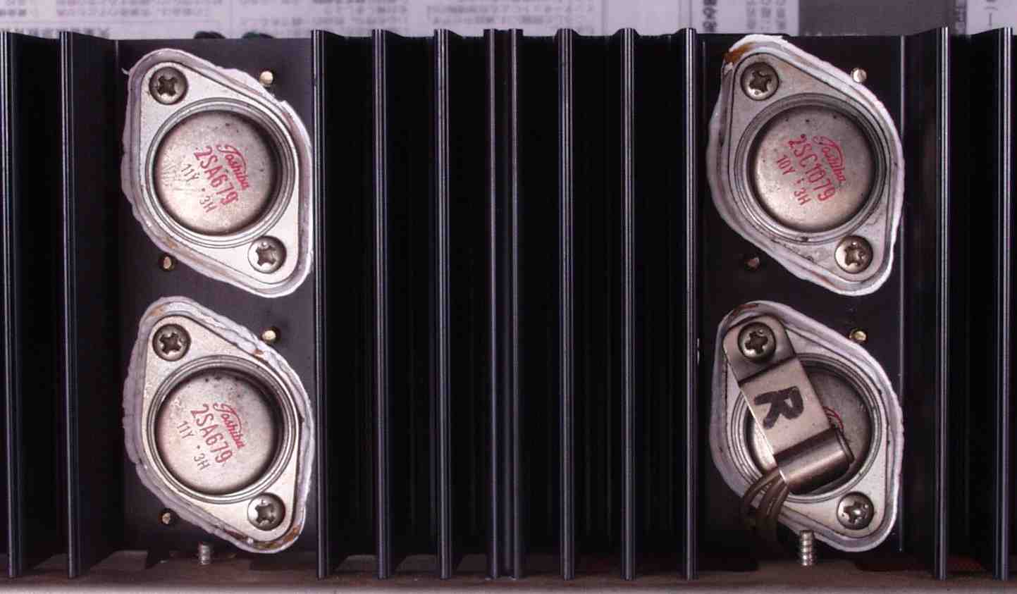 C1A. 修理前 R側 終段トランジスター 熱でシリコングリスが流れ出し殆ど無い