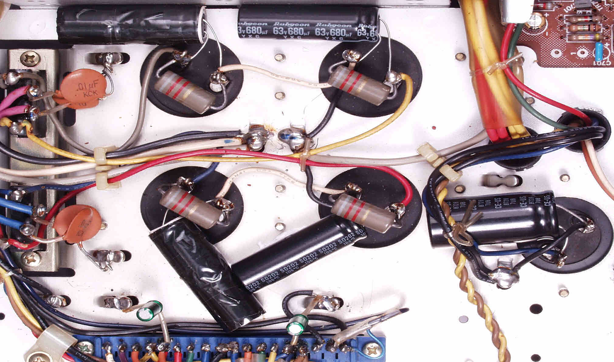 CDB. 修理後 電解コンデンサー周り 電解コンデンサー7個、経年変化を考慮して増強する