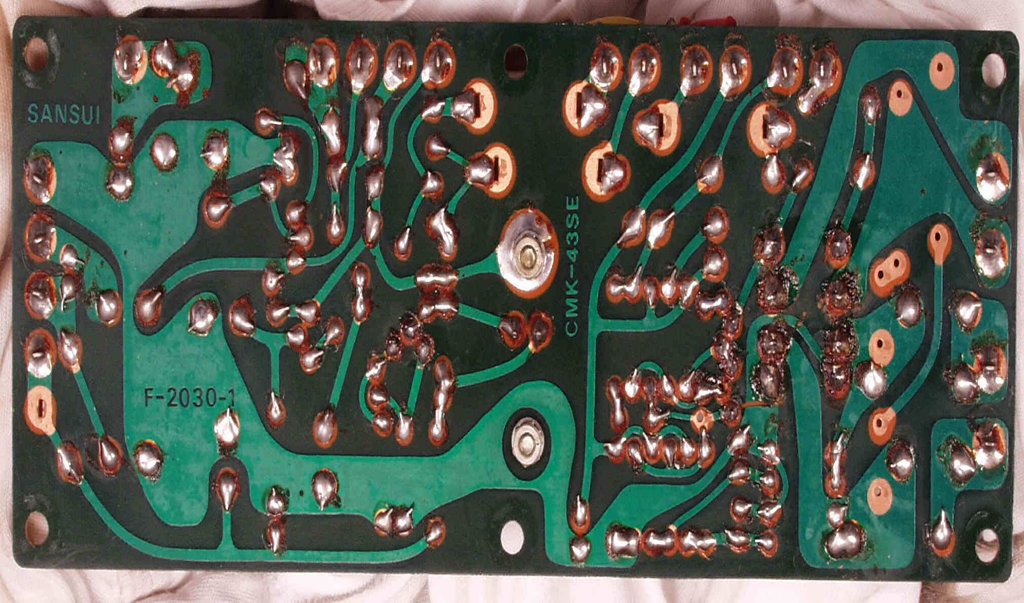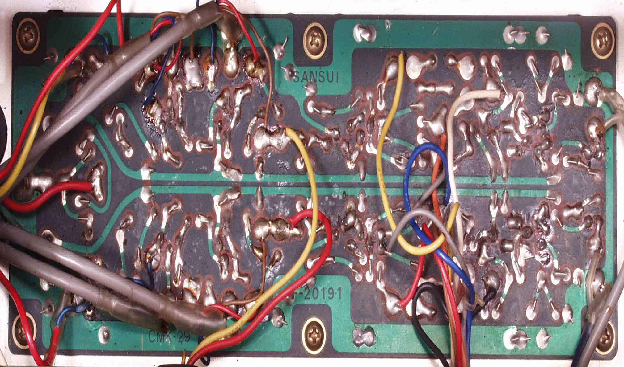 C6C−1. 修理前 EQ−AMP基板裏 銅箔剥離の跡