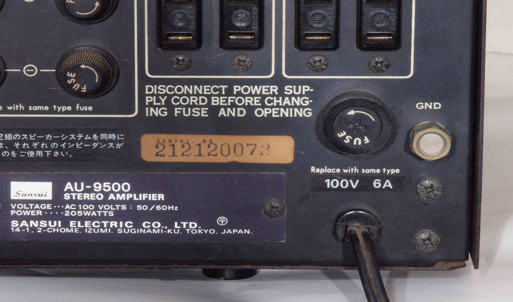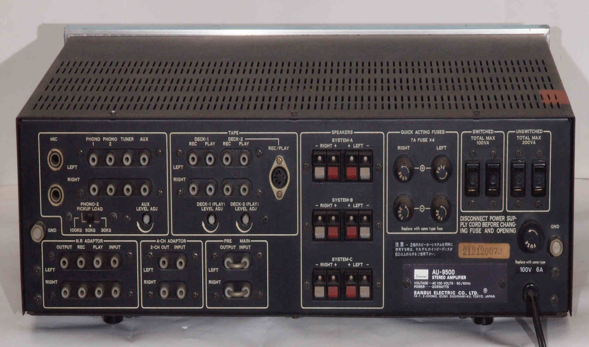 E. 調整・測定 F. 修理費 98,000円 オーバーホール修理。 S. SANSUI AU−9500 の仕様(マニアル・カタログより) |