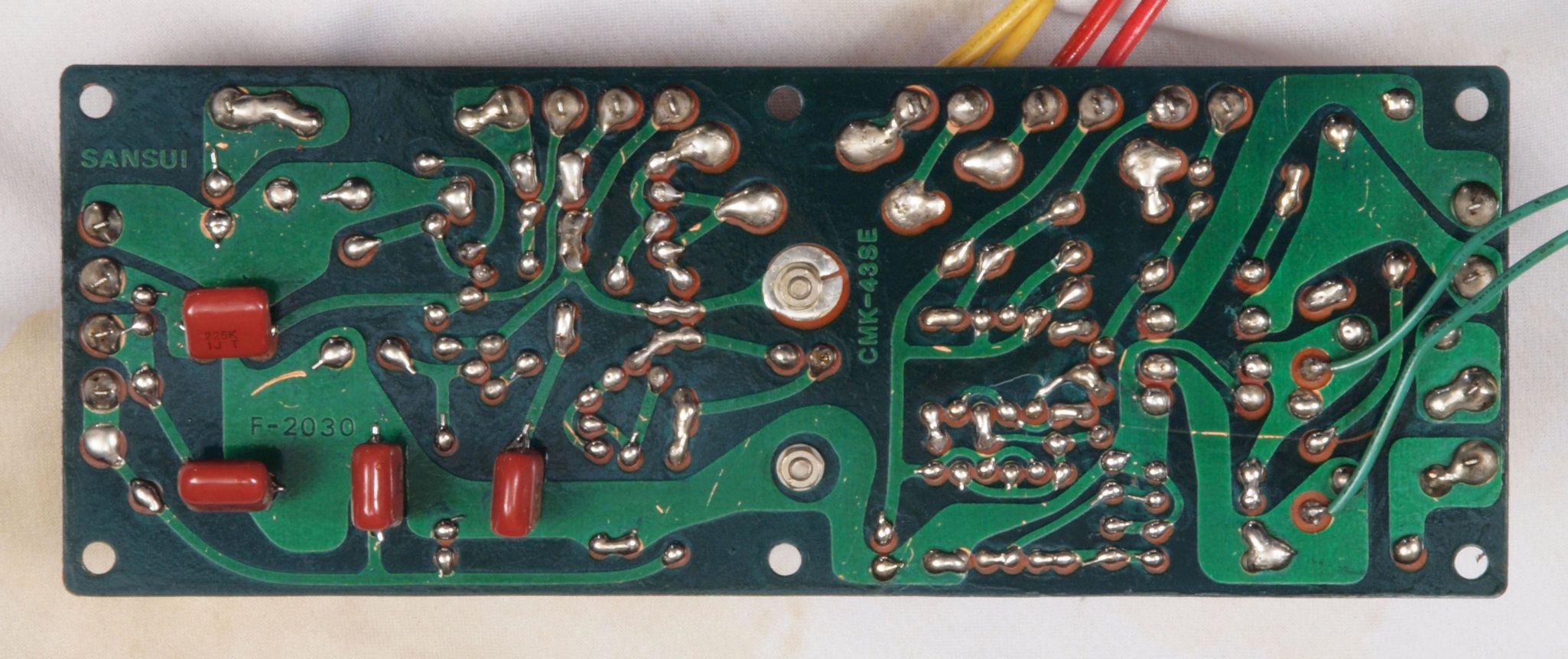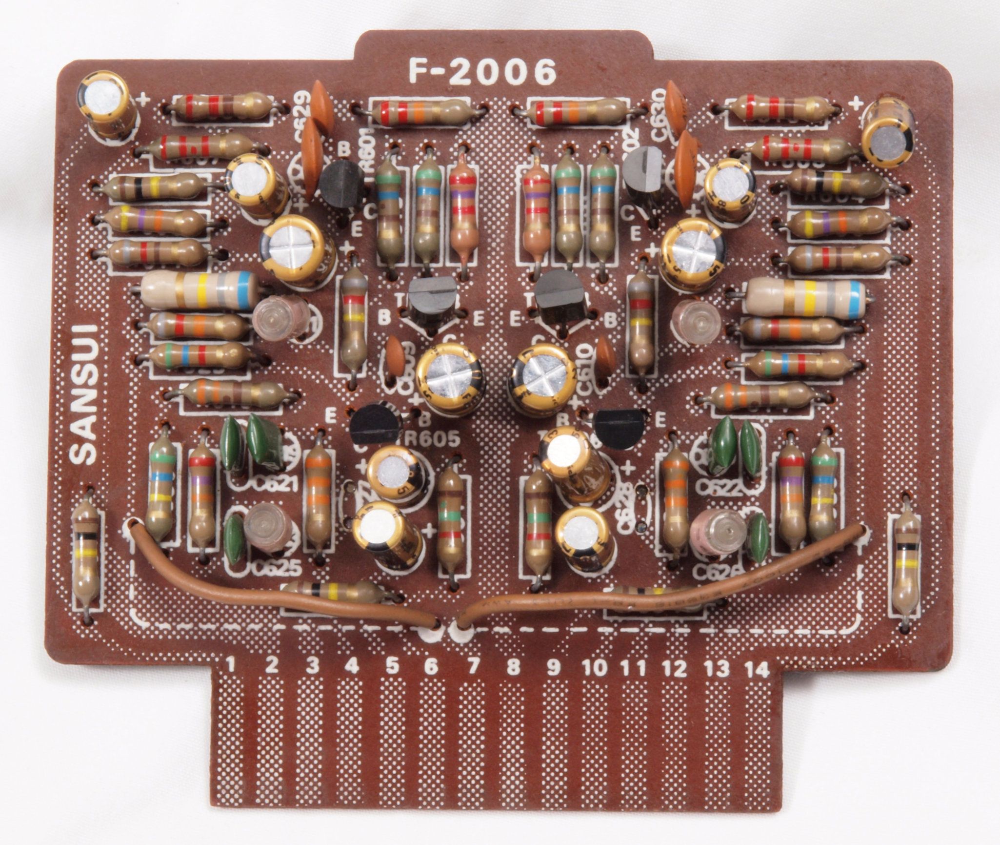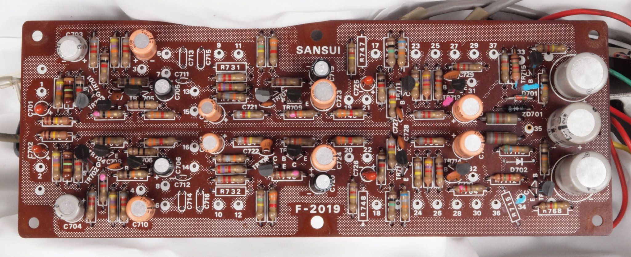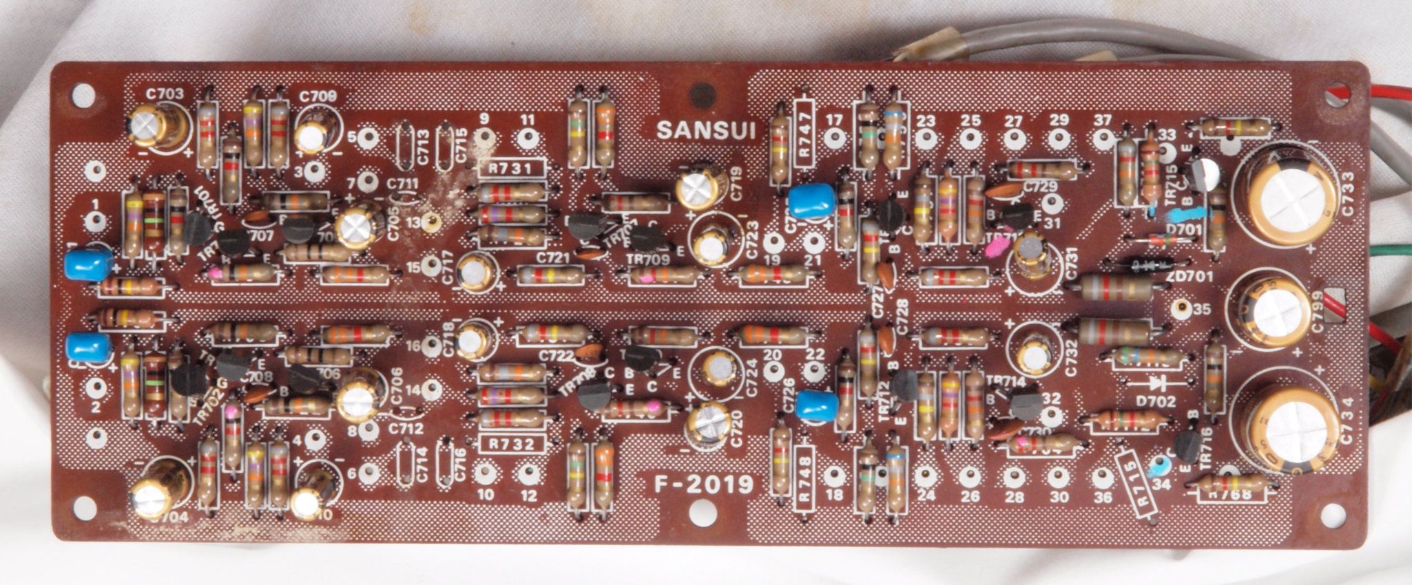 | C61. 修理前 EQ−AMP基板。 TR(トランジスター)が2個交換されている。 | ||||||||||||||||||||||||||||||||||||||||||