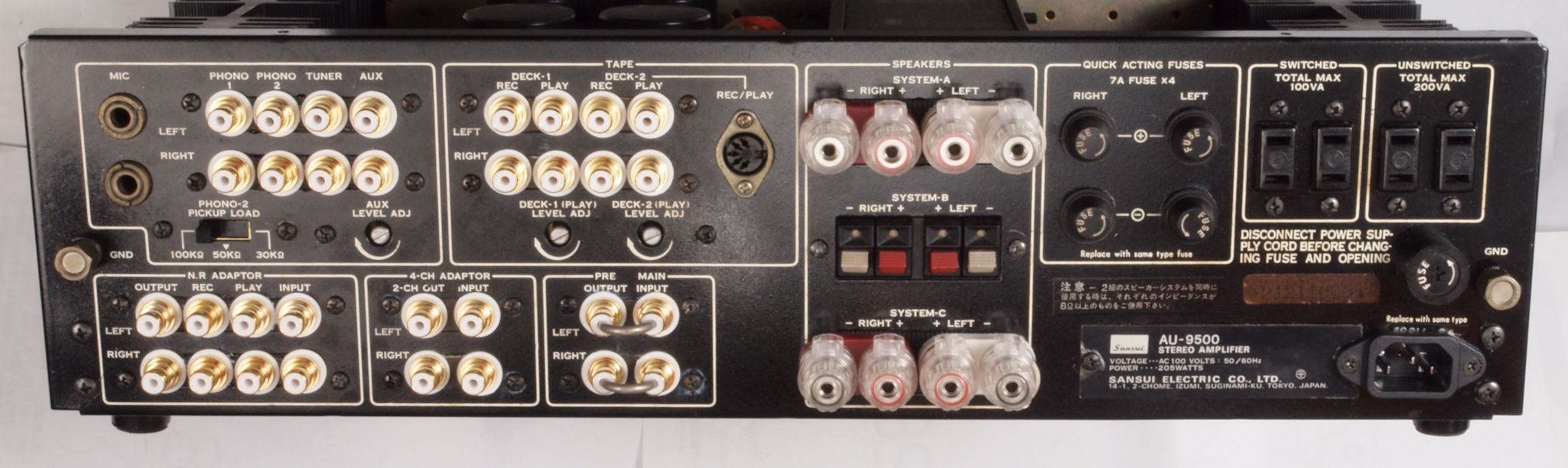 E. 調整・測定 F. 修理費 200,000円 オーバーホール修理。 Y. ユーザー宅の設置状況 S. SANSUI AU−9500 の仕様(マニアル・カタログより) |