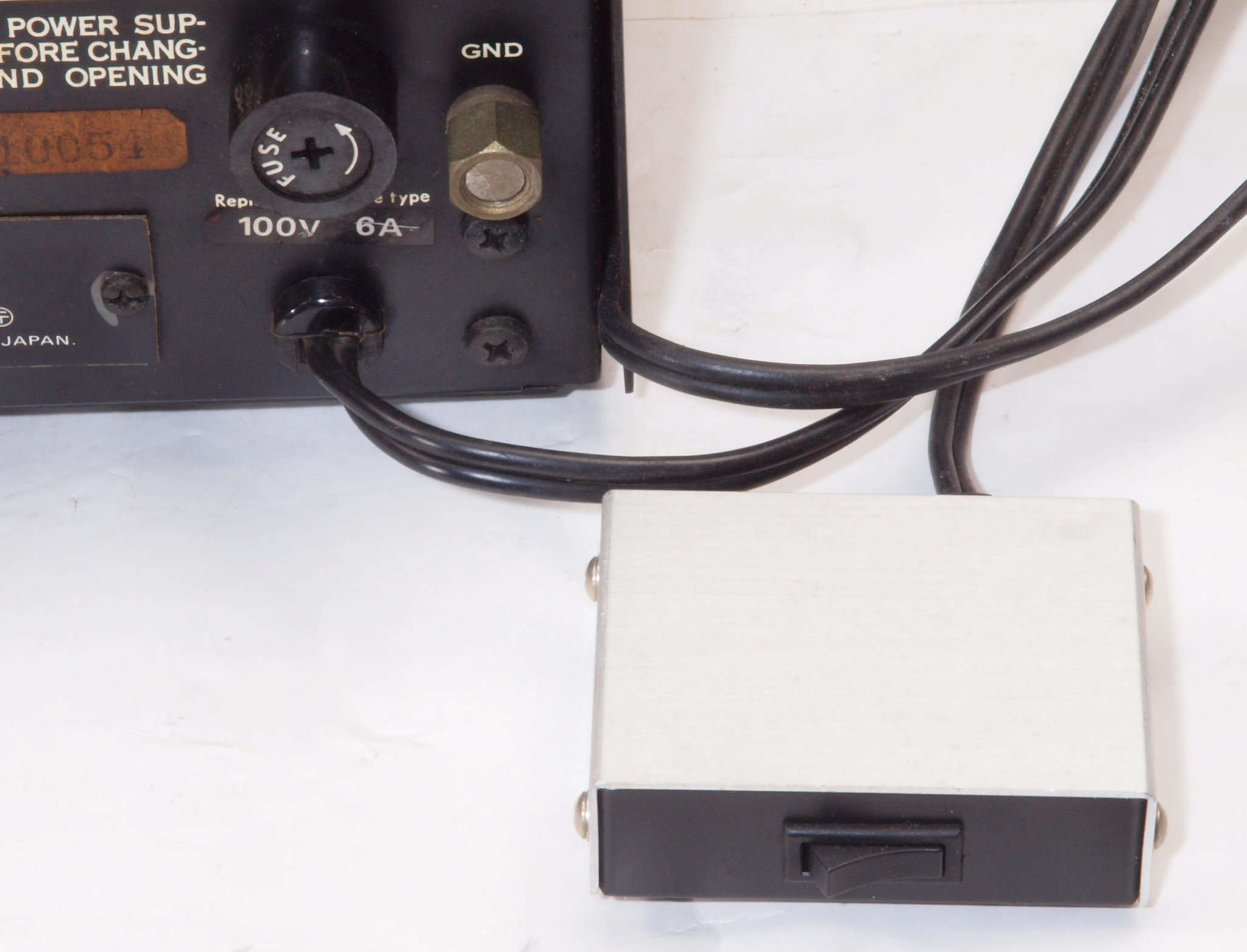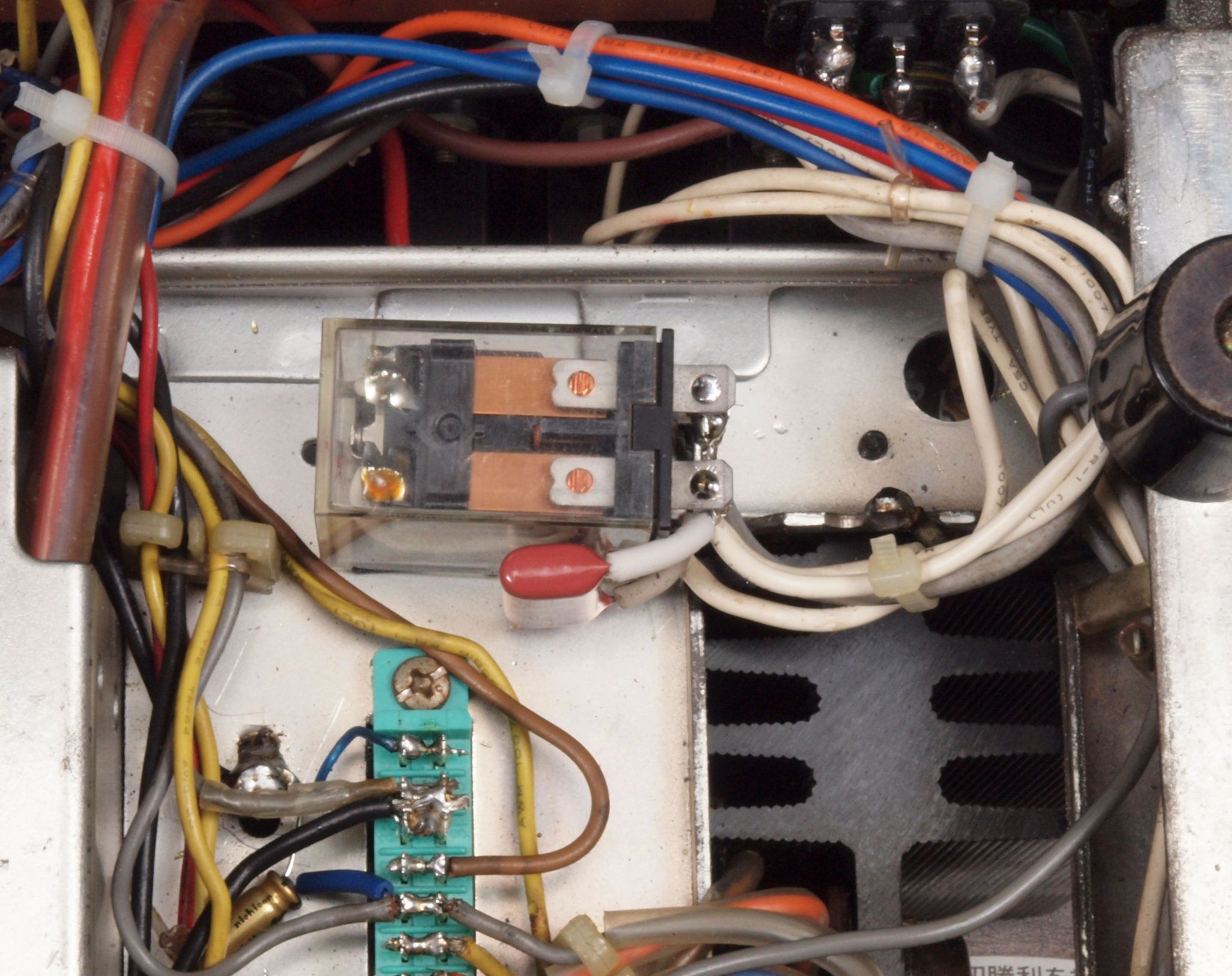 | CE6. 修理後 SP切り替えSW+電源SW。 電源投入リレー組み込み、接点容量は10A×2回路。 右下にリレー用の0.5Aのヒューズホルダー増設。 |