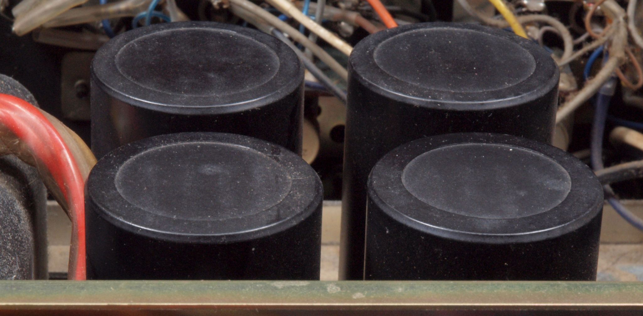 | CH1. 修理前 R側終段基板コネクタ下電解コンデンサー。 | ||||||||||||||||||||||||||||||||||||||||||