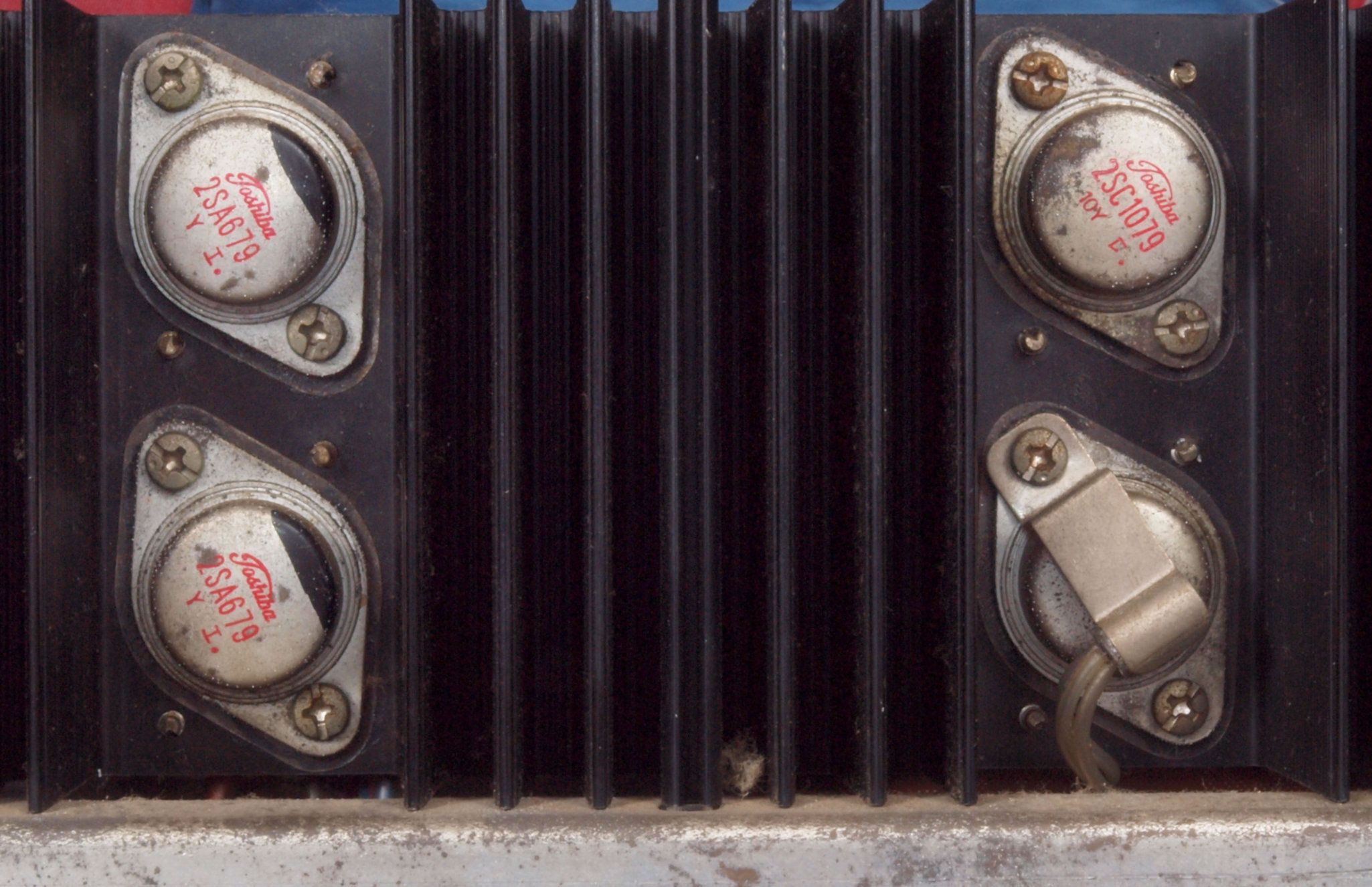 | C12. 修理中 R側 終段トランジスター。 熱でシリコングリスが流れ出し殆ど無い、テフロンシートに交換する。 | ||||||||||||||||||||||||||||||||||||||||||