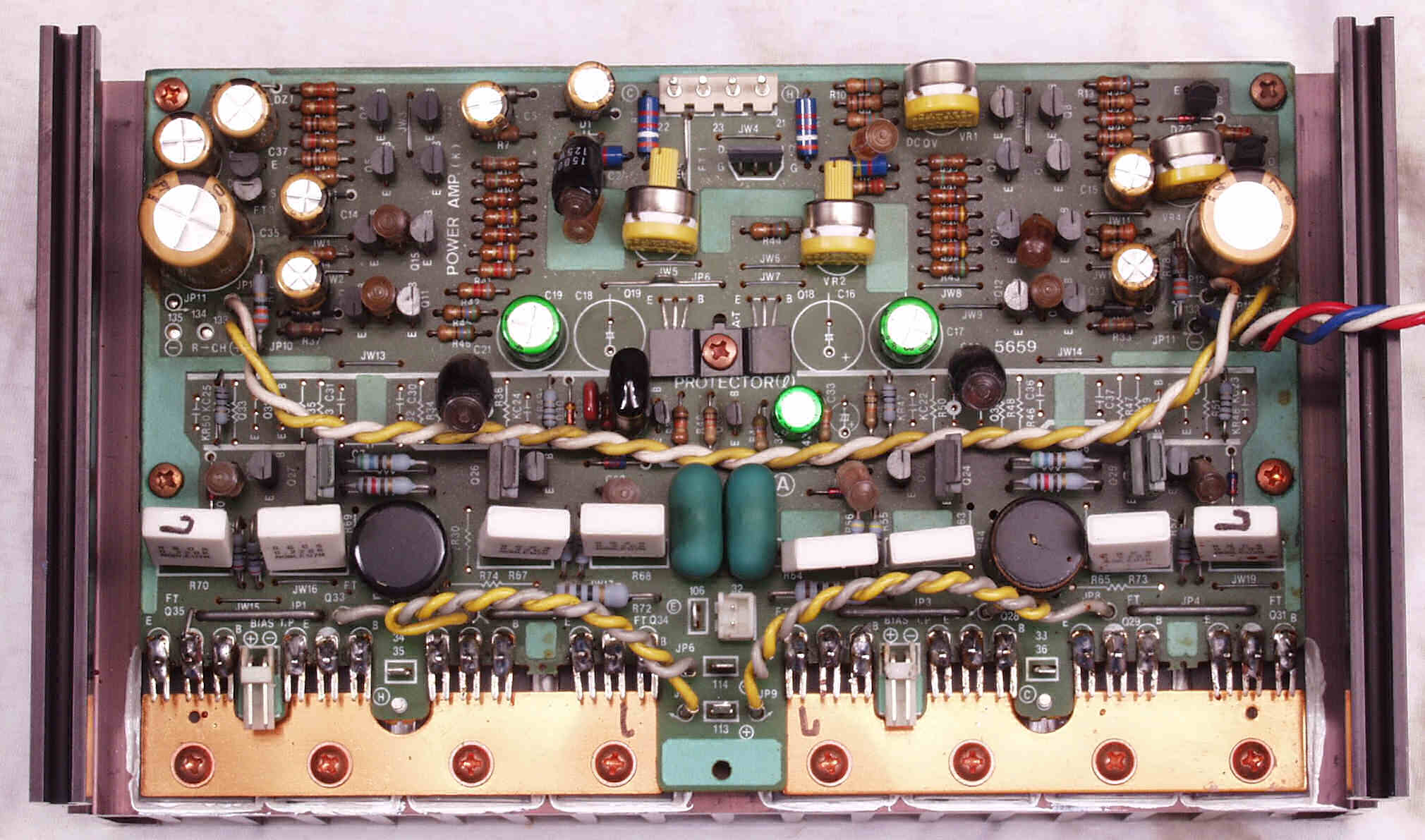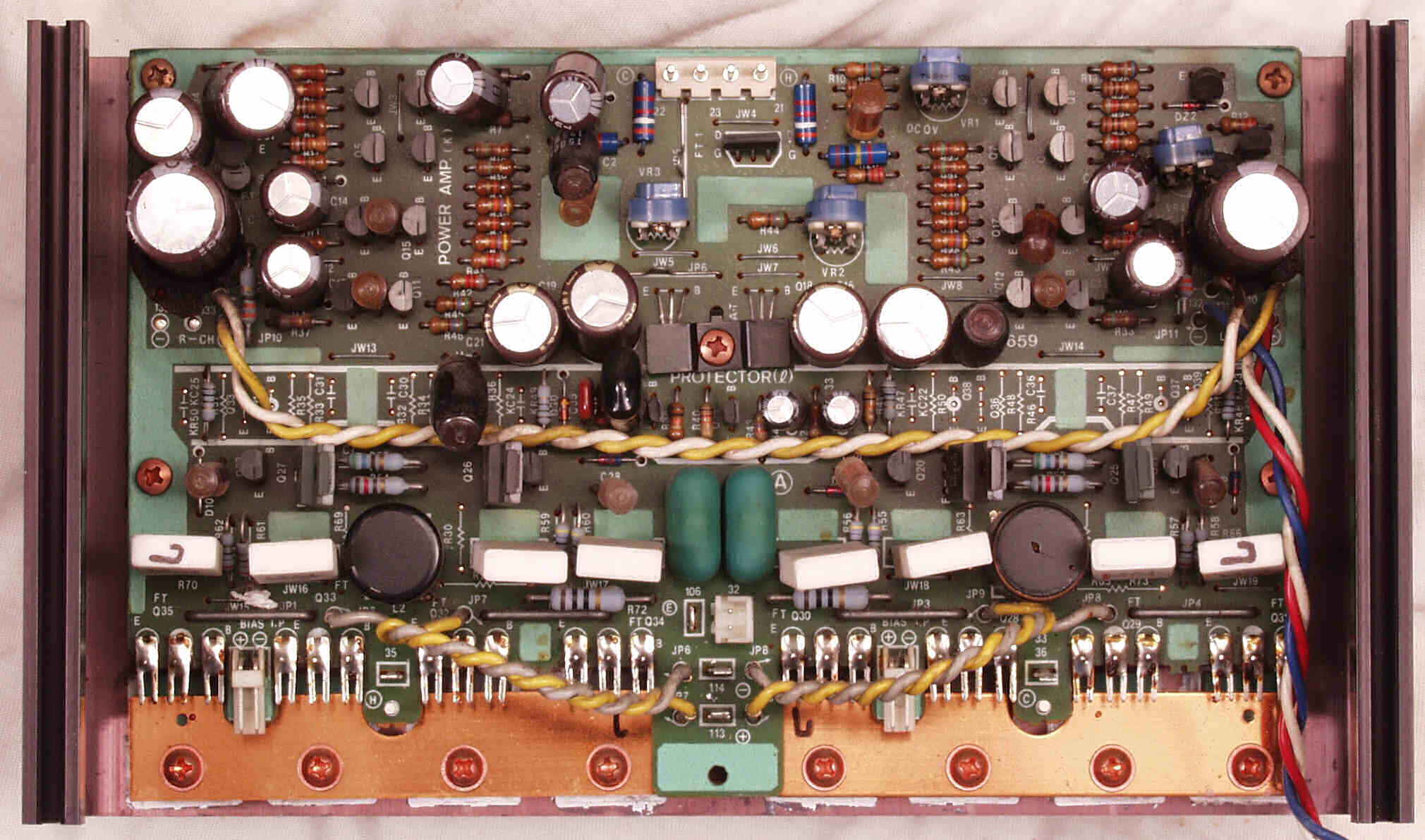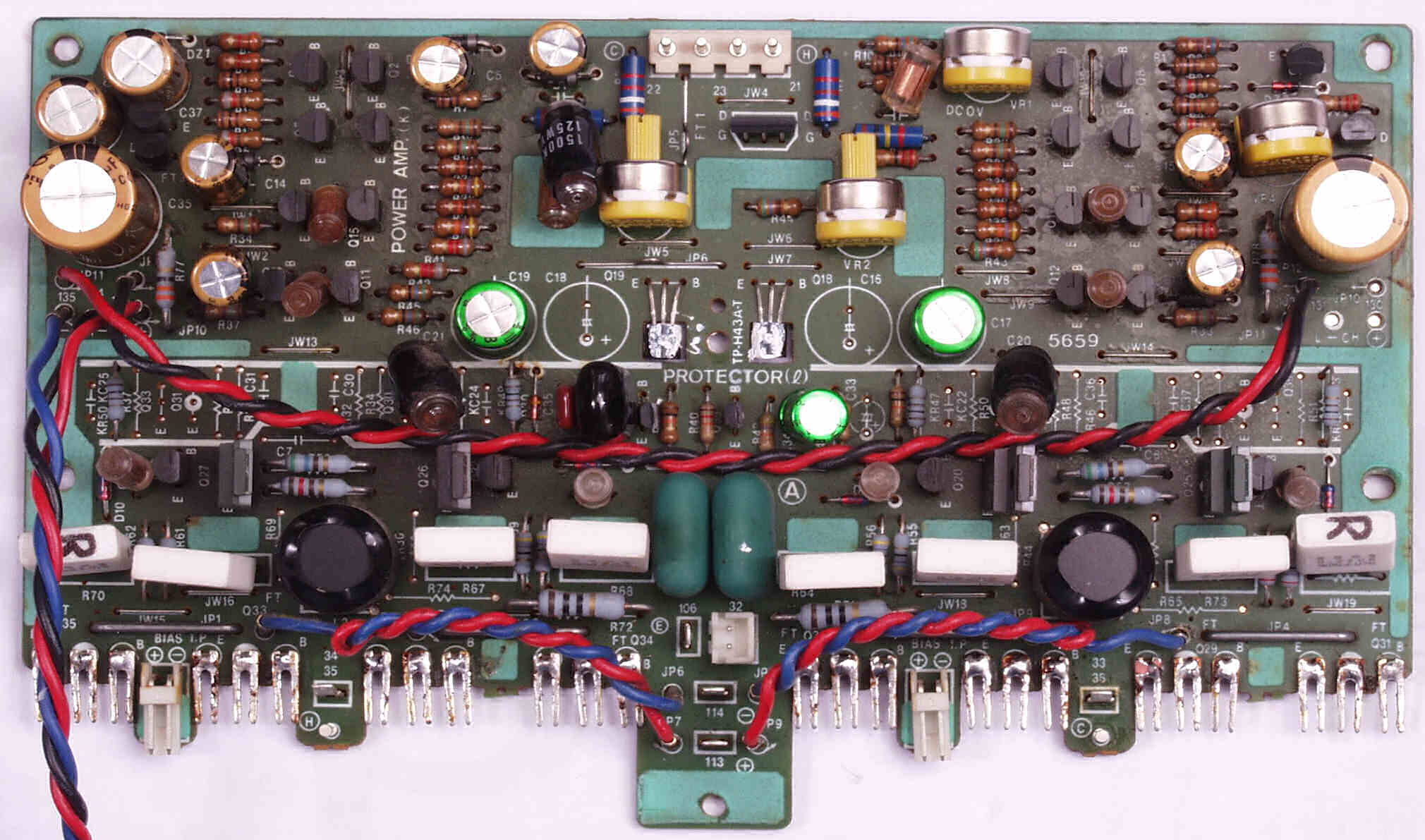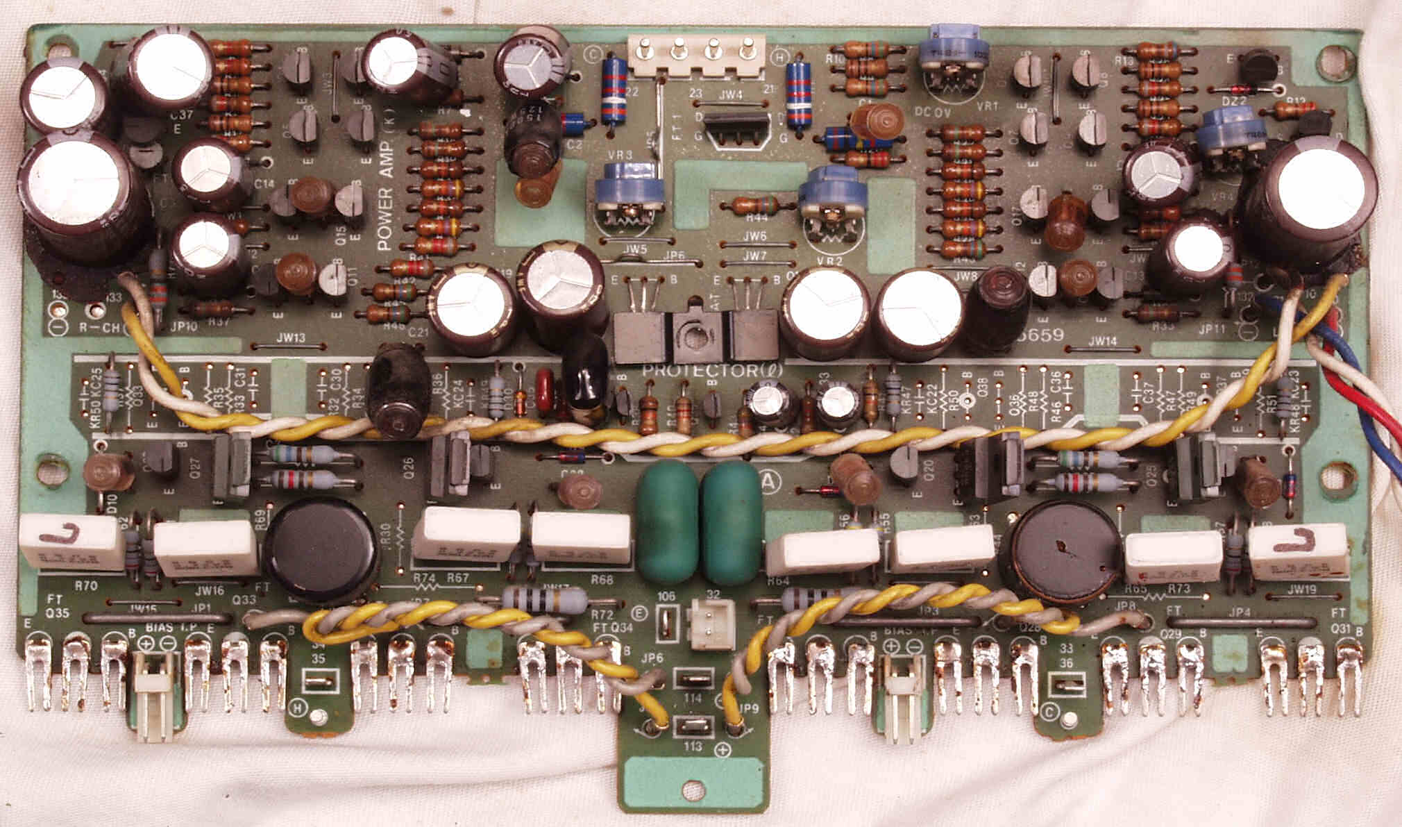 CF4. 修理後 L側終段基板 半固定VR4個、初段FET(電界効果トランジスター)、電解コンデンサ−16個交換