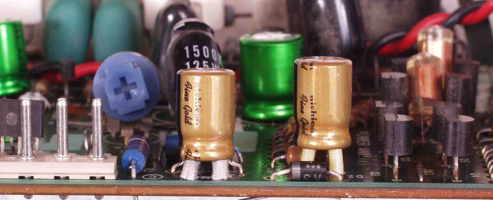 電解コンデンサー14個、FET(電界効果トランジスター)4個、半固定VR4個交換