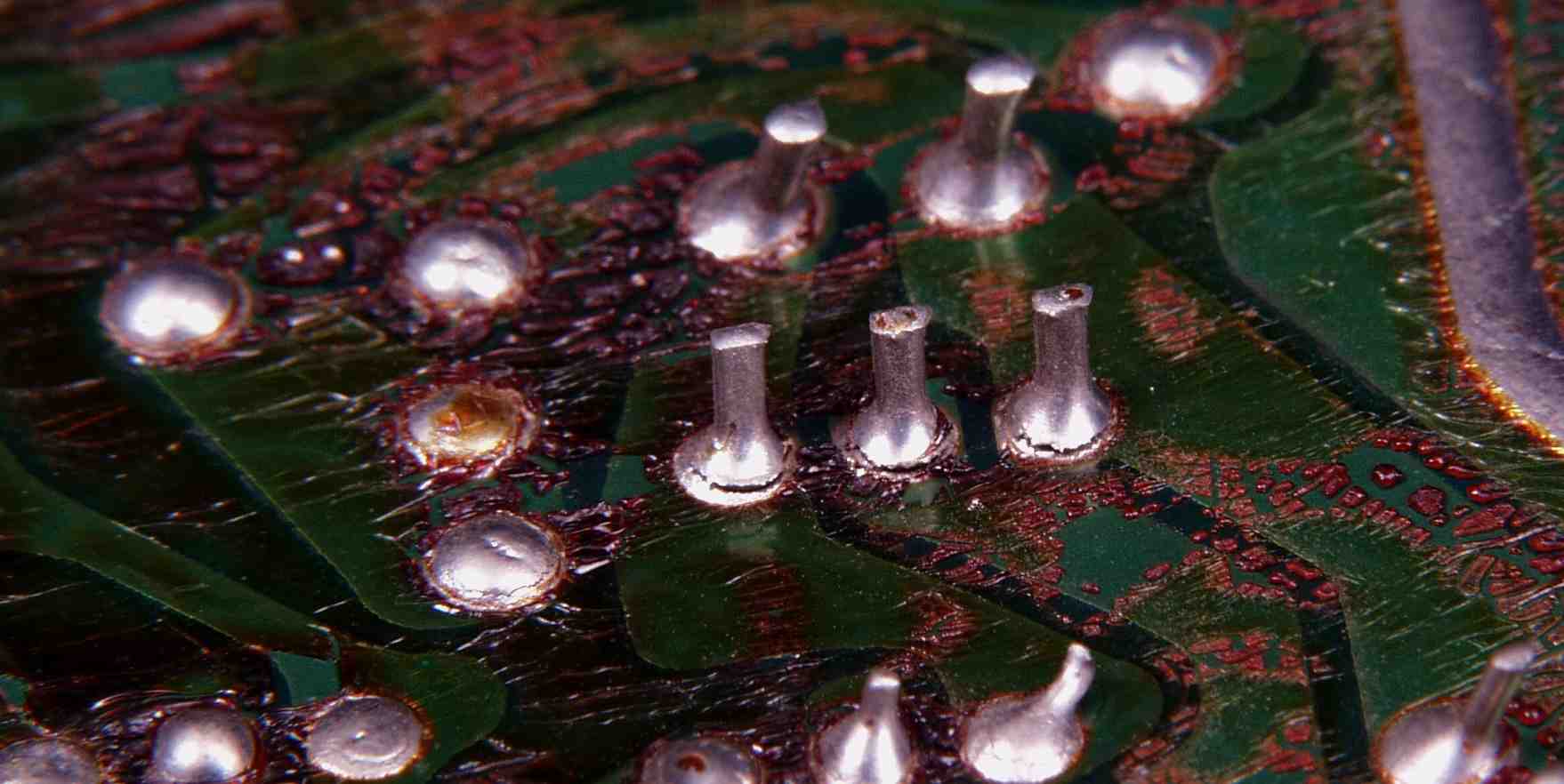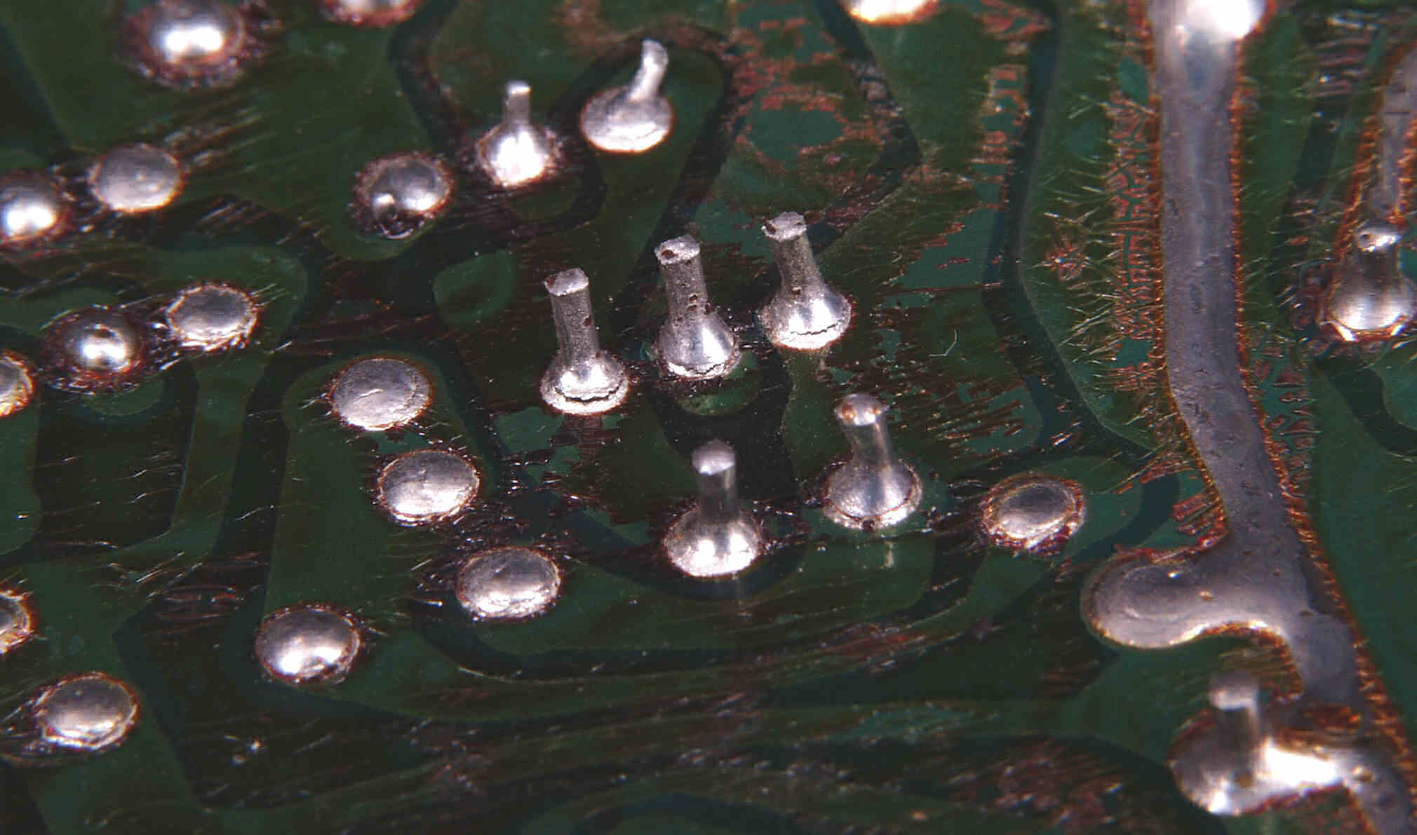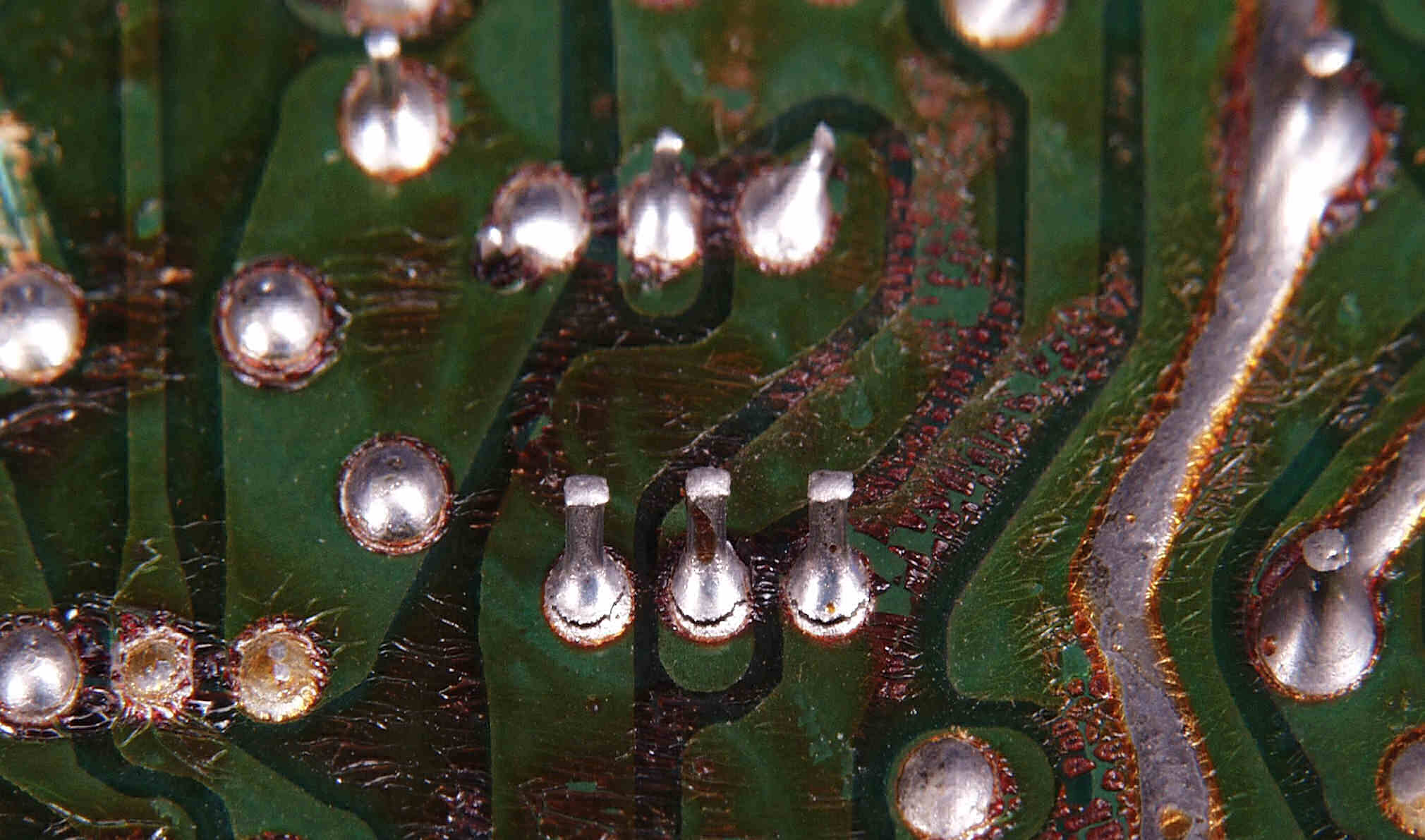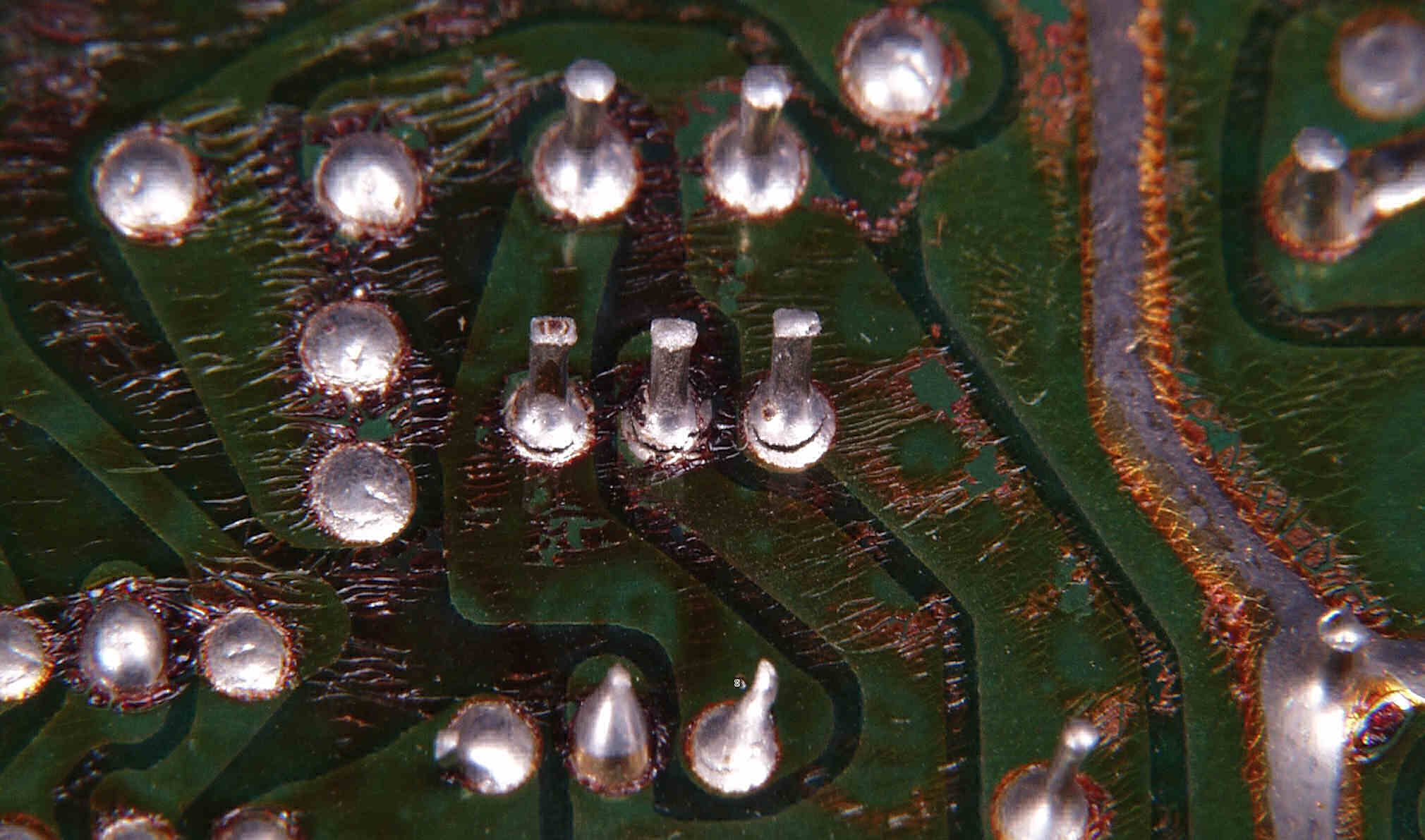 CG4. 修理後(ハンダ補正) 電源基板裏  全ての半田をやり修す、写真では5ヶ所残っているが、この跡補正