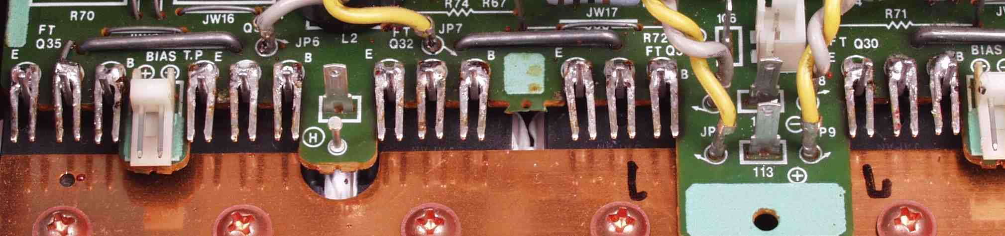 CE53. 修理後 R側終段基板裏 半田面積を広げる