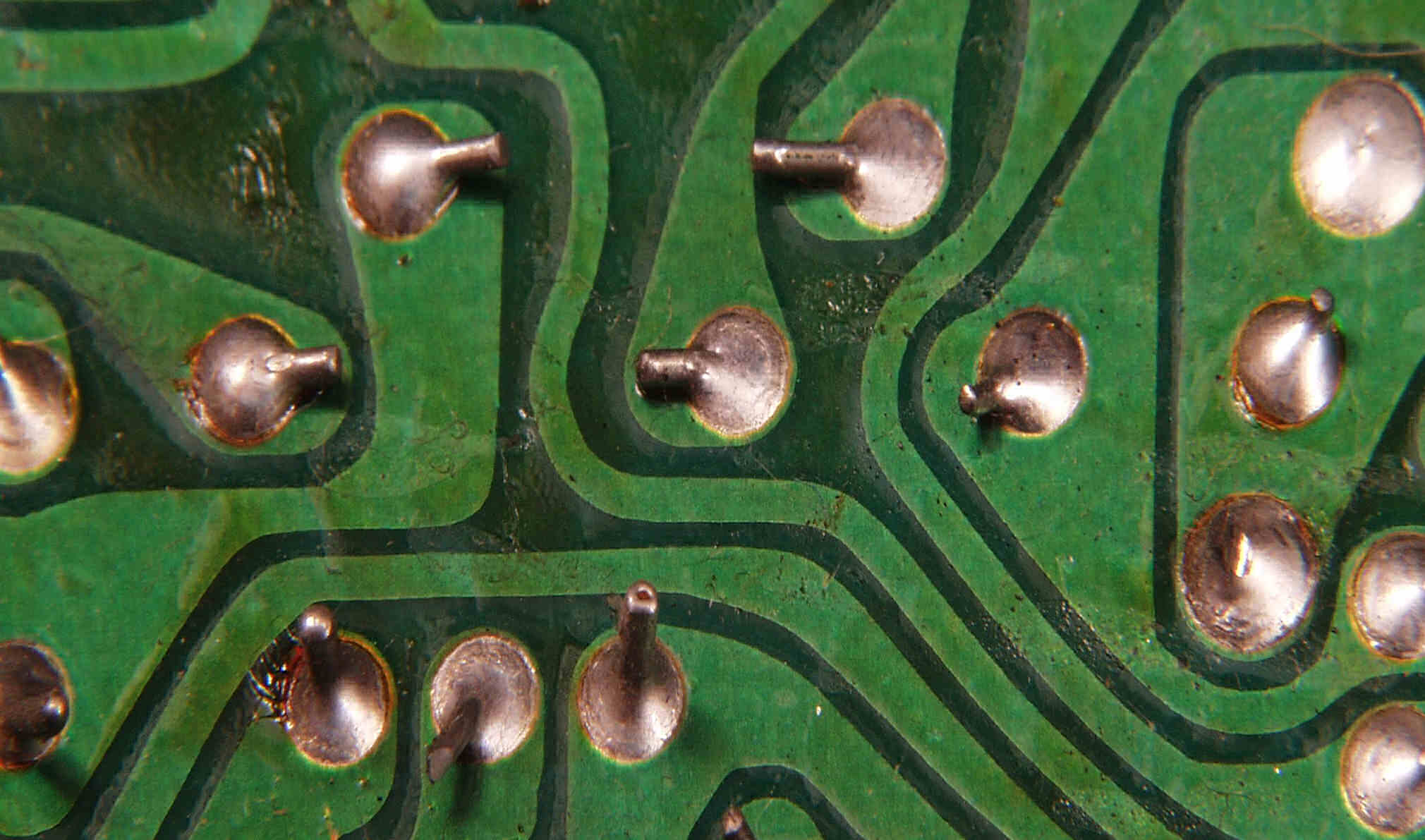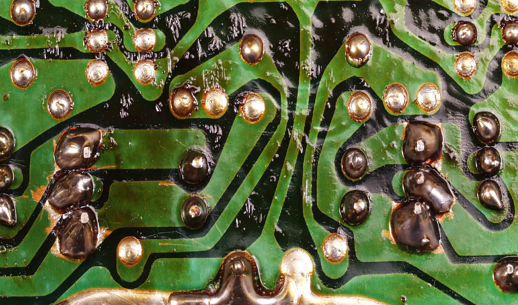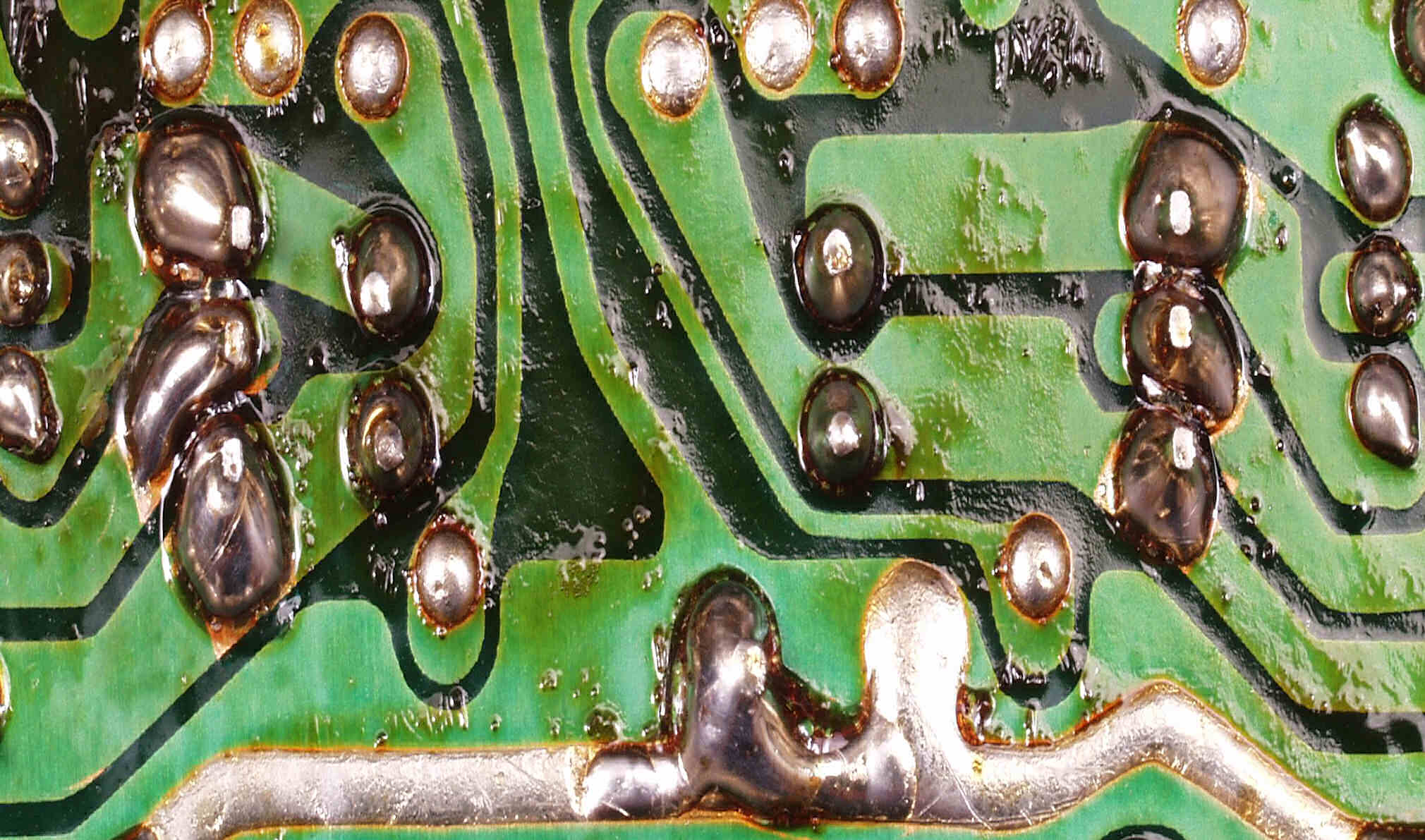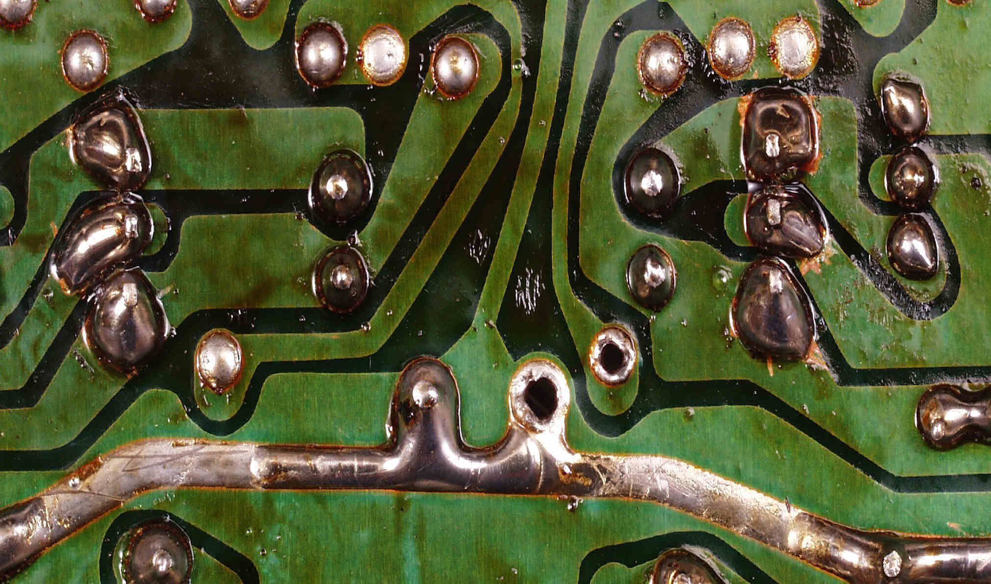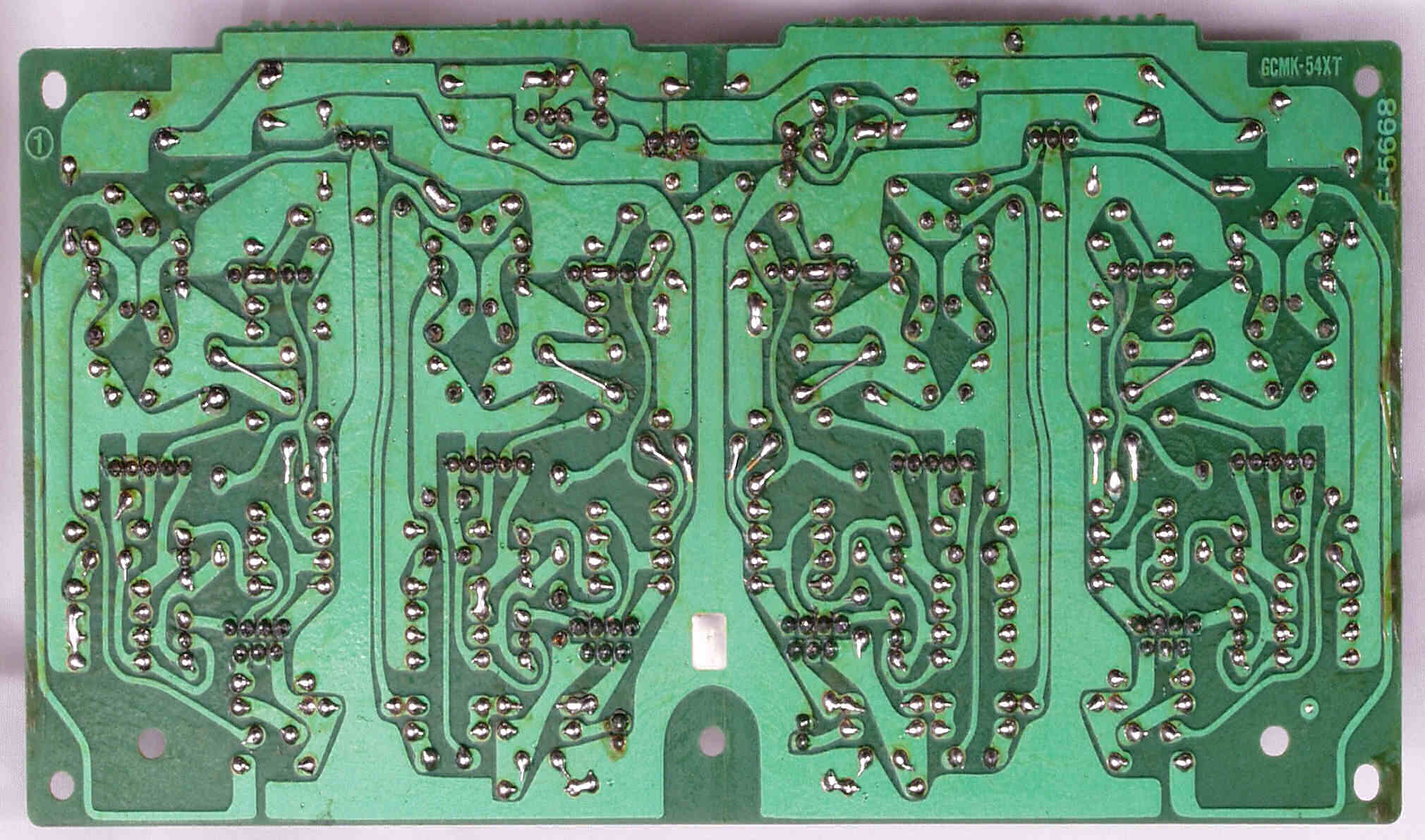 CE6. 修理(半田補正)後 R側終段基板裏  全ての半田をやり修す